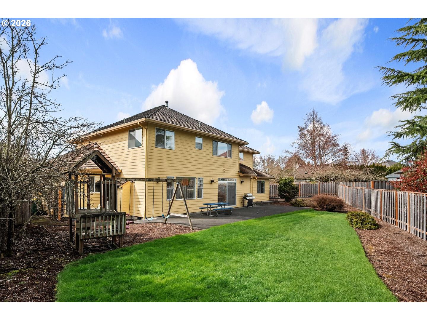 Nestled on a quiet cul-de-sac in the sought-after Stonegate at Waterhouse neighborhood, this spacious traditional home offers comfort, flexibility, and an ideal layout for everyday living. With 5 bedrooms and 3 full bathrooms across 3,166 square feet, the home features a highly desirable main level bedroom and full bath, perfect for guests or multi-generational living. Light-filled living and family rooms, both with fireplaces, create inviting gathering spaces, while the kitchen offers ample storage, a gas cook island, a wet bar, and an eating area. Upstairs, the generous primary suite includes a jetted tub, double sinks, and a walk-in closet. New carpet on stairs and upper level. Original finishes ready for your updating. Set on a large, level lot with a fenced yard, patio, and 3-car garage, this home blends function and livability in a prime Beaverton location with easy access to shopping, restaurants, and commuting.
