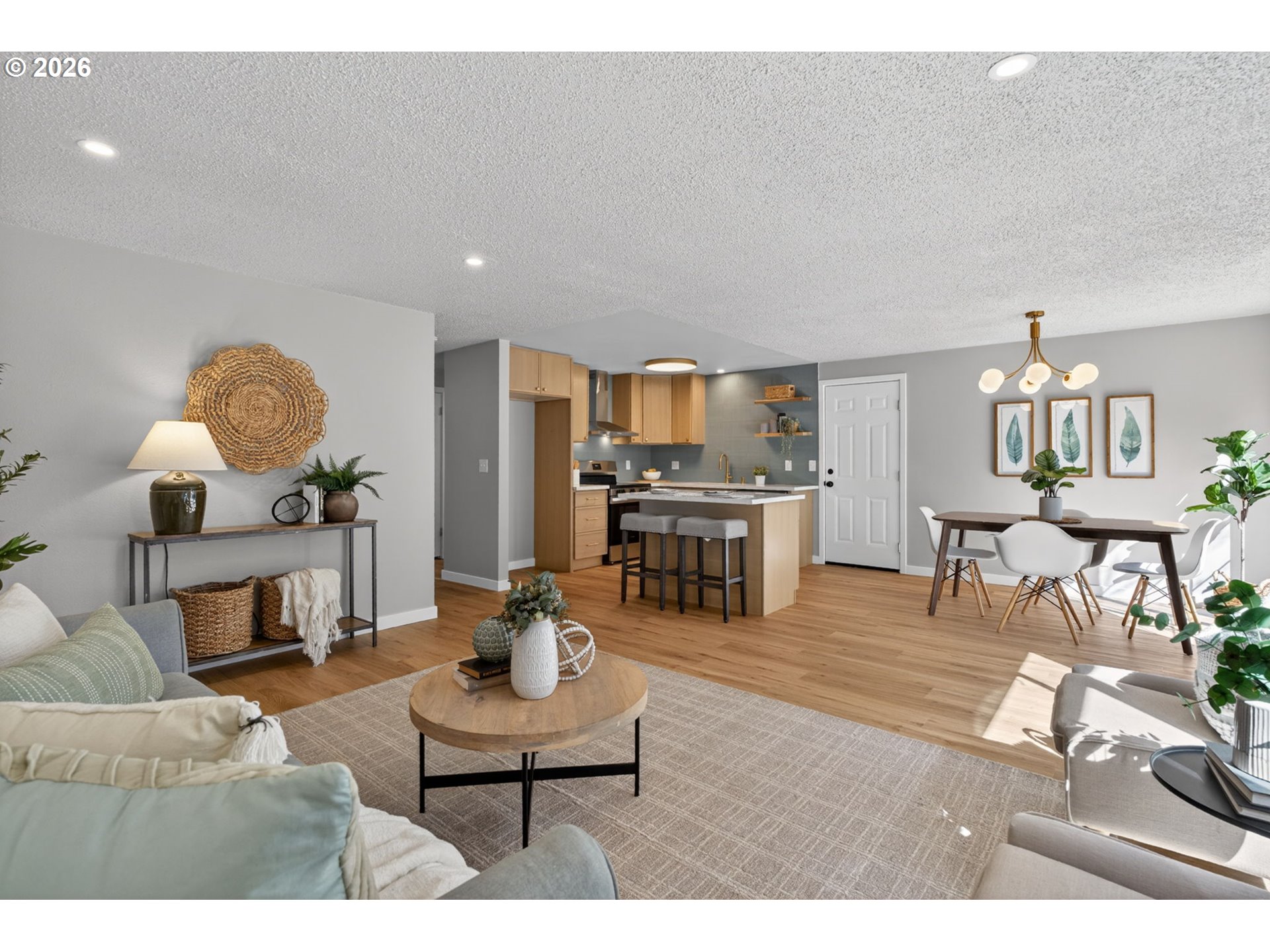 Recently renovated and thoughtfully updated, this single-level home offers a clean, functional layout with modern finishes throughout. The interior features new flooring, carpet, and fresh paint, creating a cohesive and move-in ready space. The kitchen has been fully redone with a brand new layout including a large island and opens directly into the family and dining areas for easy everyday living. The full bathroom has also been updated with a simple, modern design. Home features a brand new roof and water heater adding peace of mind. The backyard is fully fenced and backs to green space, offering a bit of privacy and room to enjoy the outdoors.