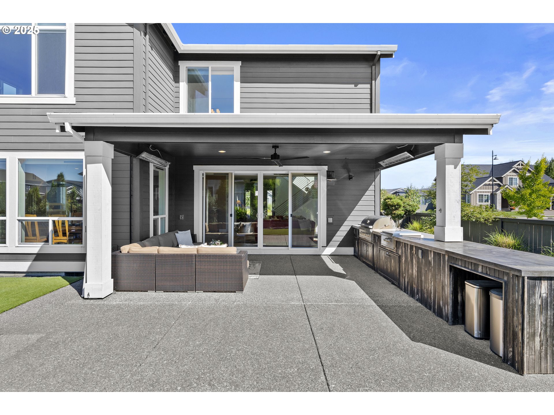 Coveted 5-bedroom gem in Vendage at The Reserve, site of the 2018 Street of Dreams! This thoughtfully designed 3,373 sq. ft. home offers sophistication, functionality, and comfort. The open-concept layout features a light-filled great room with vaulted ceilings, cozy gas fireplace, and show stopping chef’s kitchen with an oversized island, quartz countertops, 48” gas Dacor range, double ovens and walk-in pantry—perfect for today’s busy lifestyle and ideal for entertaining. The main-level bedroom and full bath offers flexibility for guests, teens, or a home office. The open-concept main level connects effortlessly to the covered patio, with gourmet outdoor kitchen, heaters, ceiling fan, and roll-down shades—ideal for morning coffee, evening wine or year round outdoor entertaining. The beautifully landscaped and meticulously maintained backyard offers turf, raised garden beds, a drip irrigation system, landscape lighting and fire pit. There’s ample storage or plenty of space for a workshop in the extra deep, 3 car garage. Upstairs, the light-drenched primary suite offers a fireplace, spa-like bath with soaking tub, walk-in shower, dual vanities, and large walk-in closet. The second level media room is pre-wired for sound, perfect for movie nights or game days. Direct access to The Reserve golf course makes sneaking in a quick round effortless, and the deluxe HOA amenities include pool, hot tub, fitness center, splash pad, walking trails and more. Just 1.5 miles from Reed’s Crossing Town Center, Market of Choice, restaurants, and minutes to wine country, this home blends luxury, comfort, and convenience.