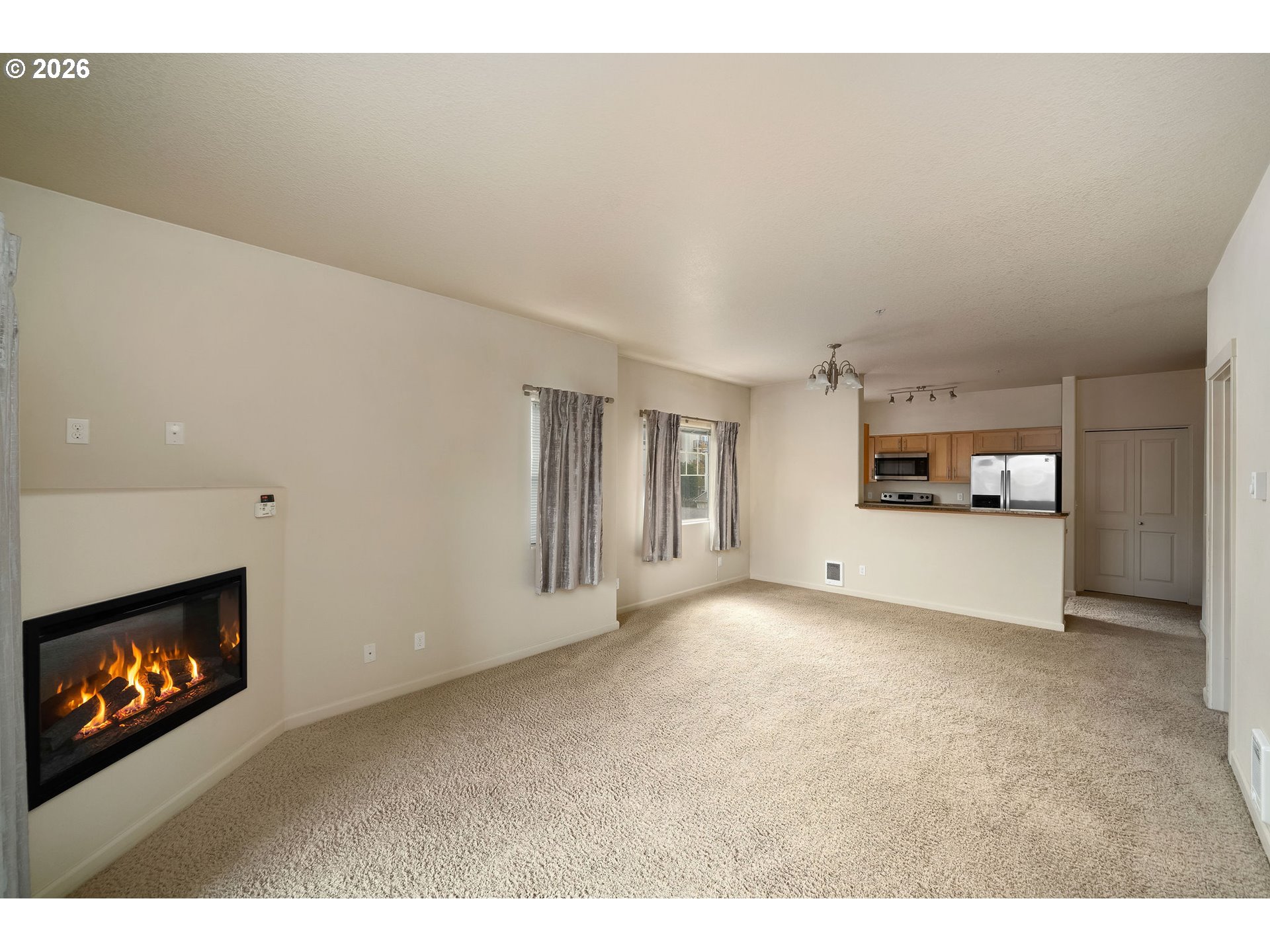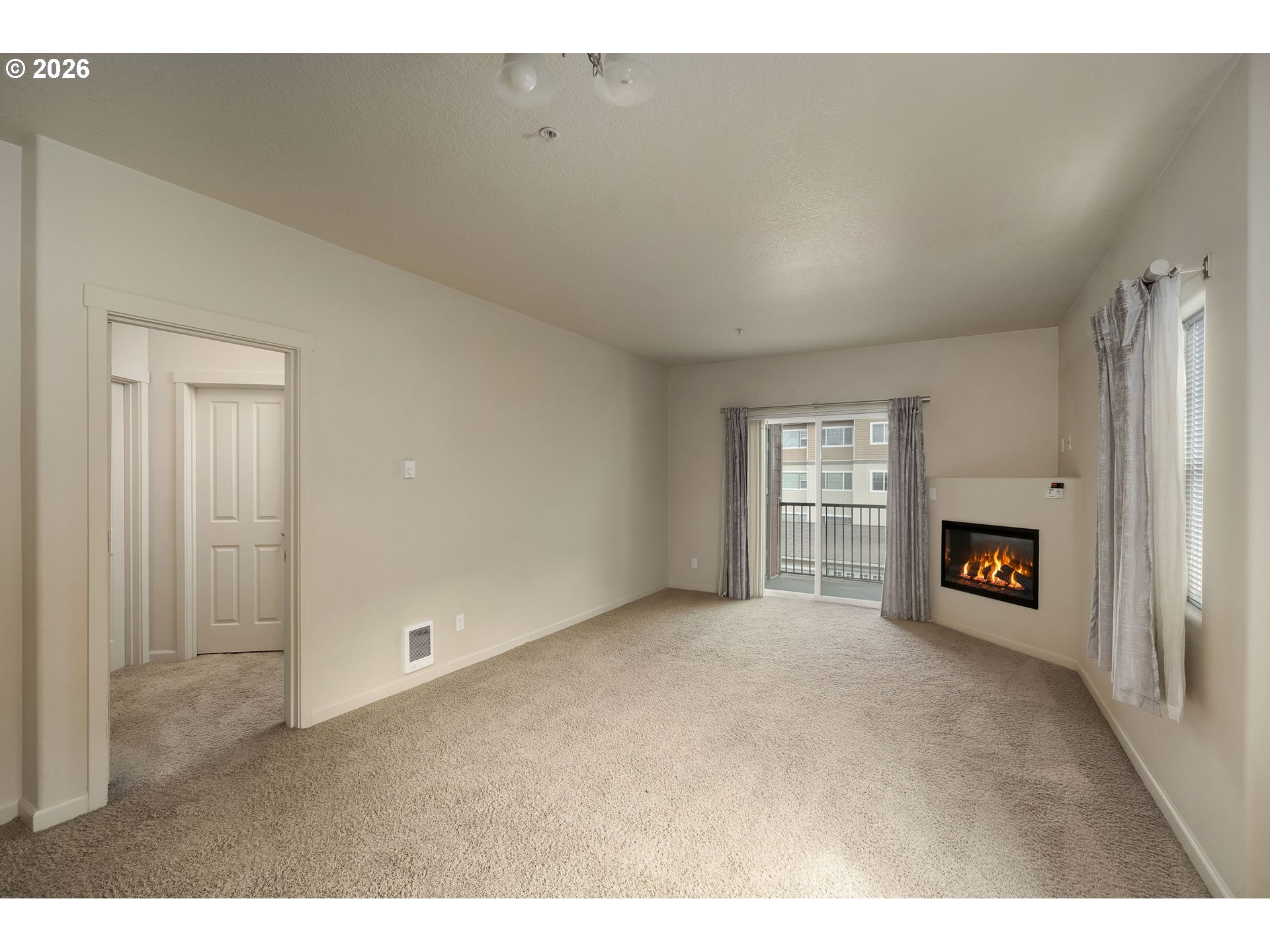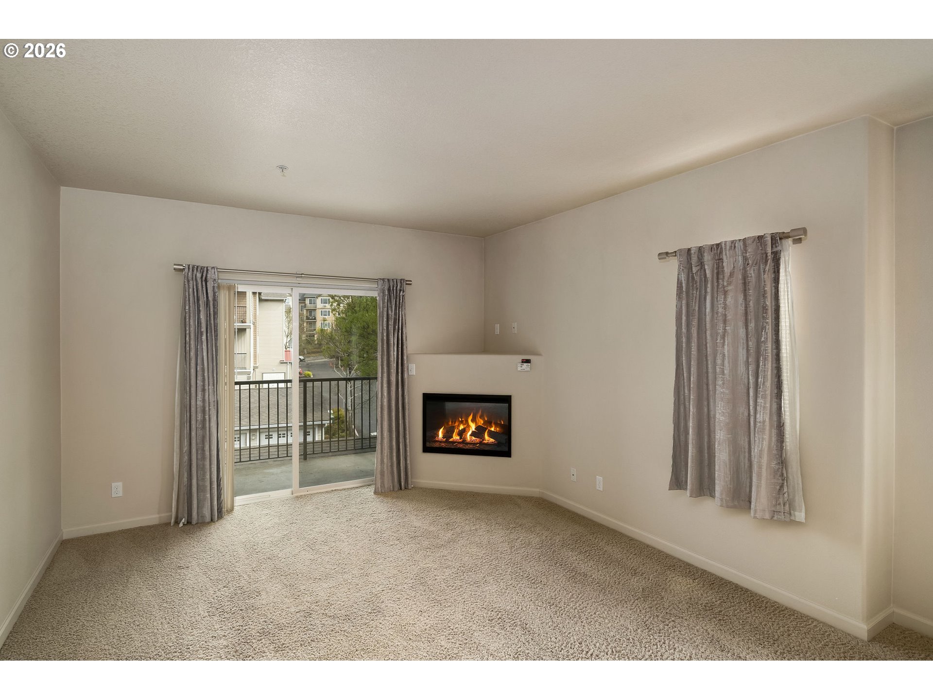 Top floor unit with a tiled entry and a convenient in unit laundry room. The kitchen includes a pantry, hard surface countertops, stainless steel appliances, and a built-in microwave hood. The primary suite features a spacious walk-in closet, while the open concept dining and living area offers a cozy corner fireplace and sliding doors that lead to a private deck with an adjacent storage room. Ideally located with easy access to shopping, dining, Nike, Intel, Downtown Portland, and Highway 26. An extra-large garage provides plenty of room for storage and equipment.