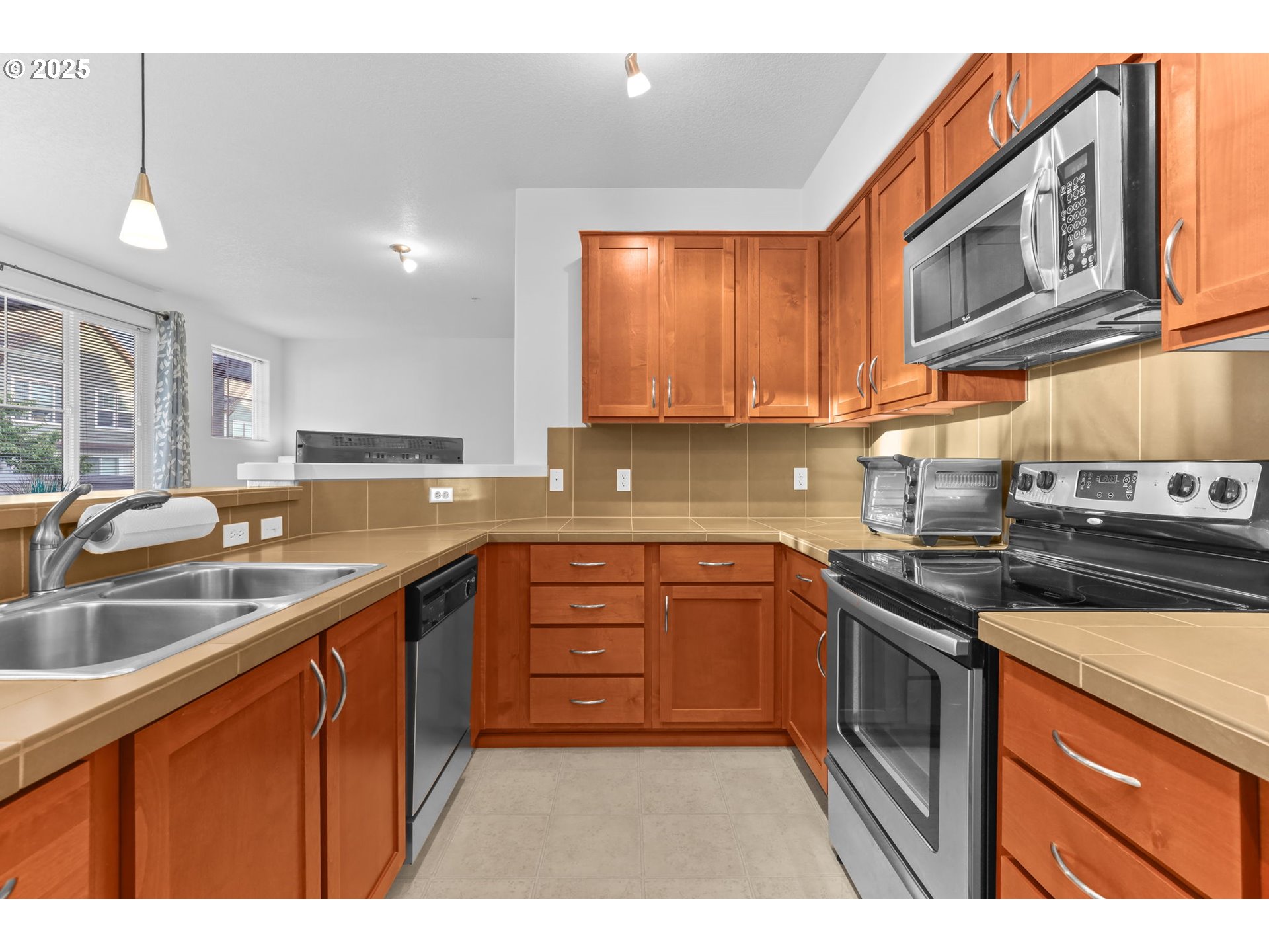 Dishwasher, FreeStandingRange, FreeStandingRefrigerator, Island, Microwave, PlumbedForIceMaker, Tile