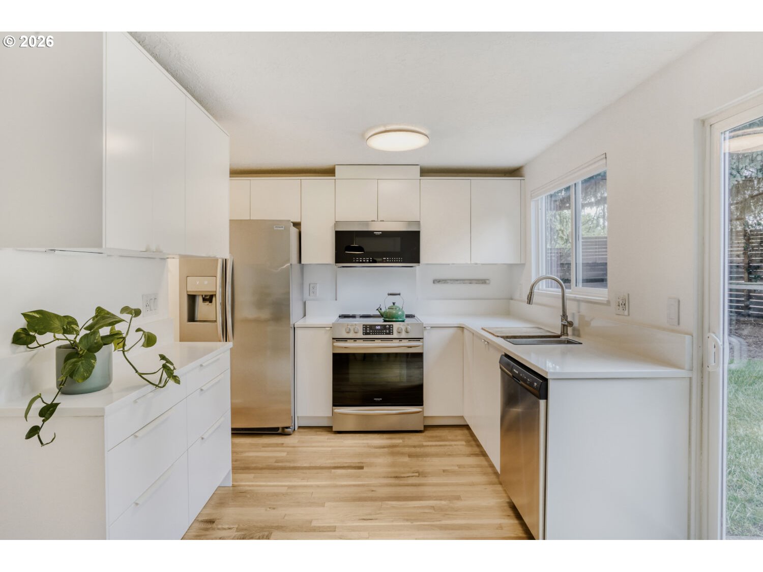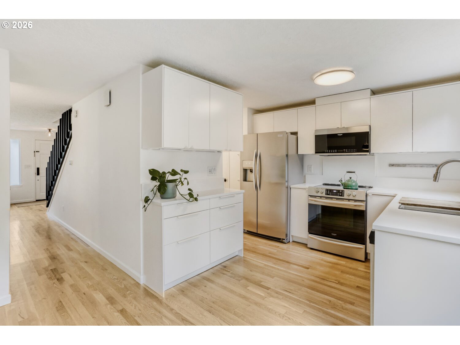 The Rock Creek remodel you've been waiting for! With an open layout and generous window space, natural light abounds in this turn-key traditional. Meticulously maintained and thoughtfully updated, the home features recent white oak hardwood floors throughout the main level, white doors and millwork, Milgard vinyl windows, updated bathrooms, new fixtures, and a full kitchen remodel with new cabinets, quartz countertops, stainless steel appliances, and a spacious pantry. The home boasts three bedrooms plus a massive bonus room and two and a half bathrooms. Deluxe primary suite offers a large walk-in closet, ceiling fan, and attached bathroom with skylight, LVP flooring, and upgraded vanity with new countertops. High-quality construction with large room sizes, bay windows, open railings, and oversized garage. Outstanding cul-de-sac lot with fully fenced backyard featuring expansive patio, raised beds, tool shed, and excellent privacy. Great location, just steps from Landing Park and Lenox Elementary. Easy access to Hwy 26, Rock Creek Country Club, THPRD parks and trails, and local employers!