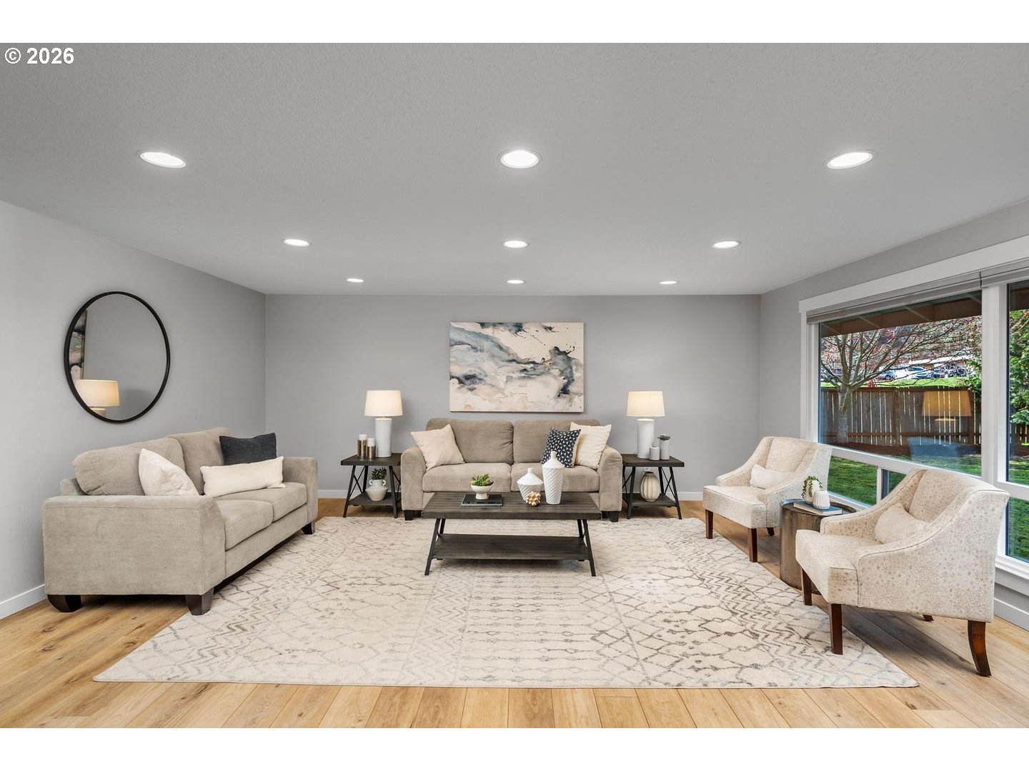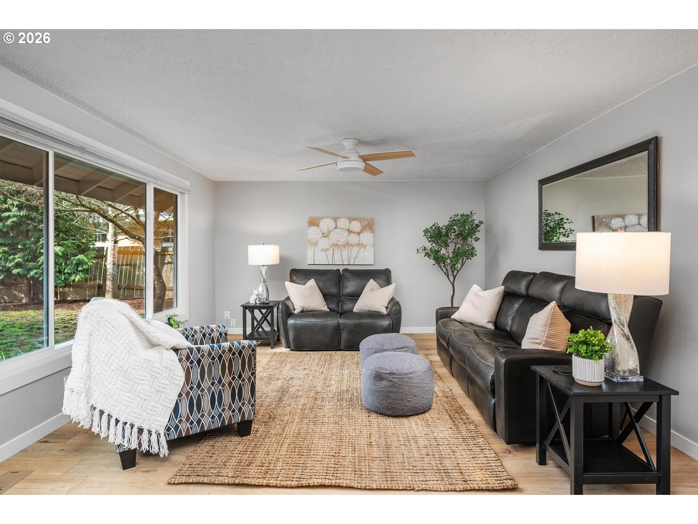 OPEN HOUSE SAT 3/14 & SUN 3/15 1-3 PM! Thoughtfully designed one-level ranch home offering approximately 1,757 square feet with four bedrooms and three full bathrooms in a comfortable, functional layout. The bright kitchen features quartz countertops, under-cabinet lighting, gas cooking, and stainless steel appliances. The dining room with built-in buffet adjoins the kitchen and family room, creating an easy flow for everyday living and entertaining, while a separate formal living room provides additional space for gatherings or quiet relaxation.The primary bedroom suite includes double closets and a private bathroom. Central air conditioning provides year-round comfort. A permitted remodel completed in 2021 offers modern updates, including the main plumbing line under the house, and the 50-year Presidential roof installed in 2015 adds long-term peace of mind.Situated on a 7,841 square foot lot, the large fully fenced backyard offers plenty of space to garden, play, or design your ideal outdoor living area. The property also includes a spacious two-car garage.Conveniently located near Nike Headquarters, transportation, shopping, and excellent schools, the home also enjoys a neighborhood path next door providing easy walk access to the elementary school. Community amenities include a pool, spa/hot tub, recreation room, and common areas. HOA includes insurance and professional management. Taxes are $7,639.14 with annual HOA dues of $714.