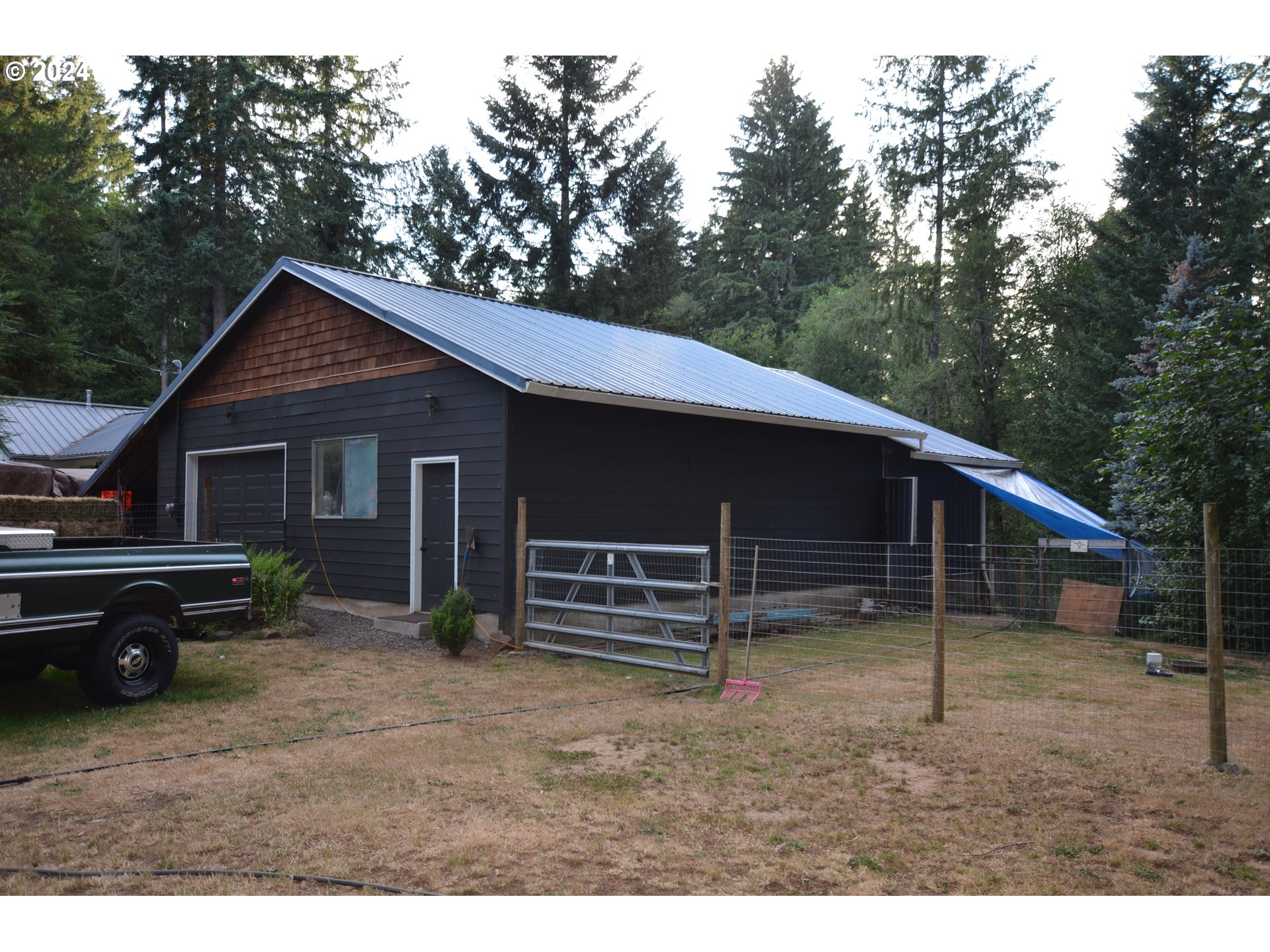 This is a beautiful spacious home on a large lot with an interesting story. The house has 3 bedrooms, 2 baths and a large upstairs loft area. Enjoy just over half an acre of space with a large garage, gazebo, shed, metal shelter and 3 livestock stalls. The house was originally built as a church (see attached PDF article) and later remodeled into a residence resulting in a truly unique experience with high ceilings and an open floorpan. The house has all three bedrooms and bathrooms on the main level with an upstairs loft that is a large open flexible space. The master bathroom has been recently updated with a Jacuzzi soaking tub and a walk in shower. The house is close to the Nehalem river with a view of it from the back yard. The garage is 30 x 34 on the inside with an additional build out in the rear where it functions like a barn with 3 separate livestock stalls and a 8x10 feed room. The Garage has a separate 200 Amp Electric Panel and is finished out nice with electric outlets and great overhead lighting. Other included structures are a 11x18 metal shelter a 14x14 Gazebo and a custom built 8x8 shed with large overhangs. The yard is mostly flat and lined with beautiful landscaping and raised beds. This is a house like no other in a private country setting. There is a large attic area in the house that allows access to the steeple that is accessed through the loft area that is currently being used for storage. The house is connected to Ziply fiber high speed internet.