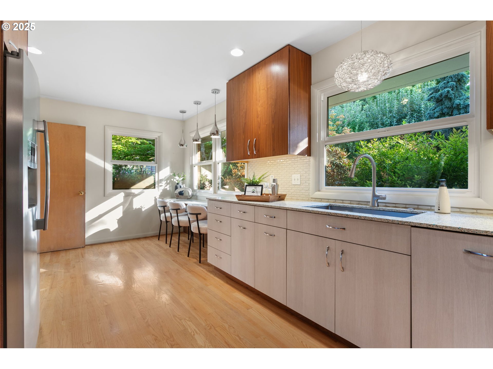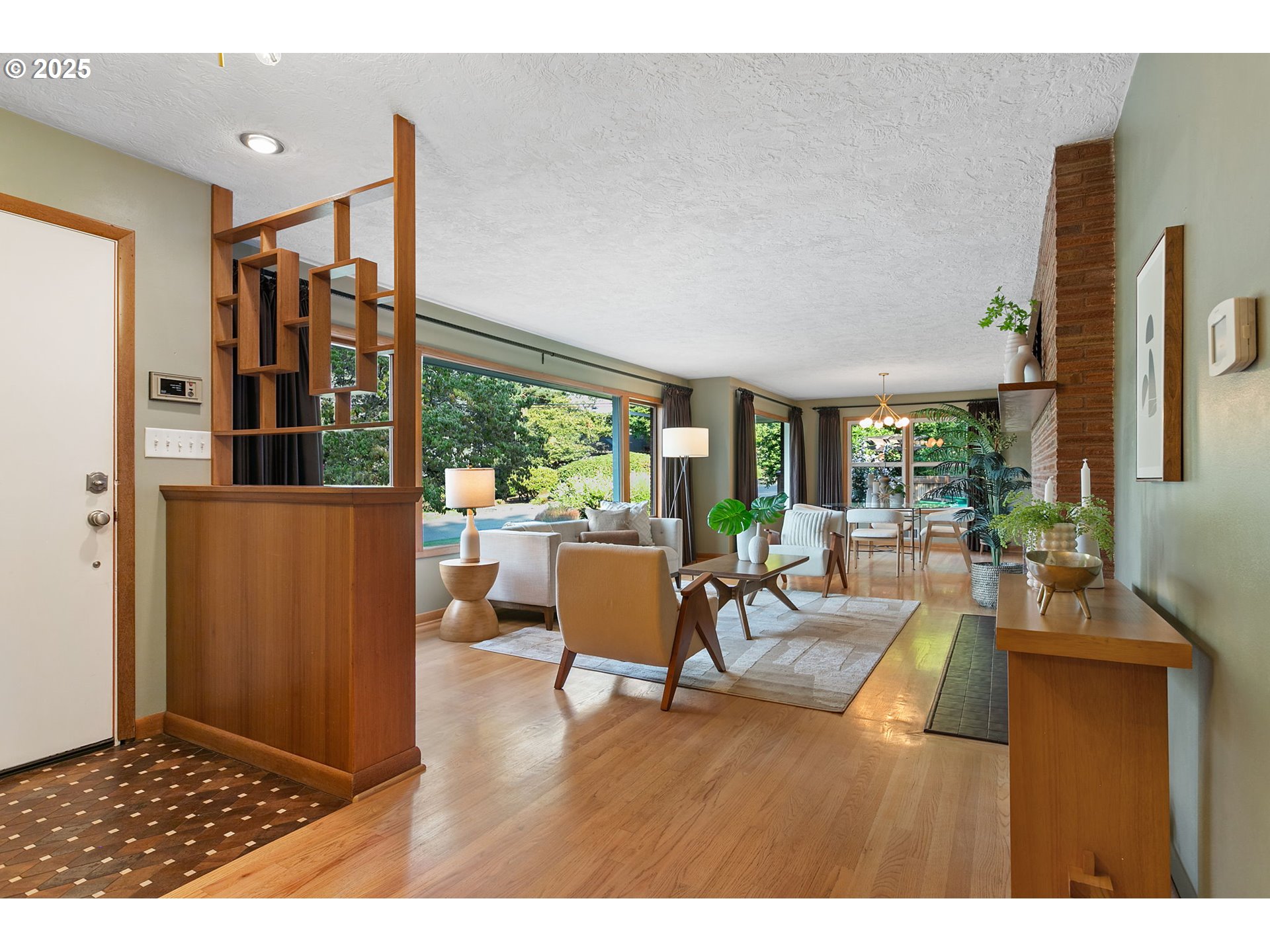 (503) 893-8874Signature mid-century style meets modern comfort on a generous Raleigh Hills lot. Step inside and the front living & adjacent dining spaces make an immediate impression with a dramatic stacked-brick fireplace, built-in shelving with geometric detail, and walls of windows surrounding you w/ views of lush, manicured landscaping. Hardwood floors throughout the main lead to the remodeled kitchen, where dual-tone cabinetry, stainless appliances, an eating bar, and sleek pendant lights create a vibrant hub for everyday living. An adjacent sitting area w/ its own fireplace & oversized slider opens to a covered pavered patio with wood ceiling, lighting & classic pillar posts—a perfect extension of the home for outdoor dining & year-round entertaining. On the main level, the primary suite + two additional bedrooms offer comfort & style, all with warm wood floors. A refreshed hall bath further accentuates this home's appeal. And don't miss the hallway’s storage closets w/ shelving—storage so cool it feels like part of the décor. The lower level provides even more flexibility w/ a spacious bonus/family room anchored by a third fireplace, full bath, 4th bedroom (non-conforming), and unfinished laundry/storage (included in the SF) ideal for hobbies, collections, or future possibilities. Outside, the property shines as a true retreat: large raised stone garden beds, a tranquil water feature, and stone pathways weaving through vibrant plantings & mature trees. Rolling lawns in both front & back invite croquet, picnics, or play, while the lighted sport court keeps the fun going into the evening. Recent updates—including a new roof & new water service—provide peace of mind while preserving the home’s iconic character. 6075 SW Arrow Wood Lane. Big lot. Big style. And plenty of room to host, connect, and make memories-whether it's book club, backyard games, or simply soaking in the moment.