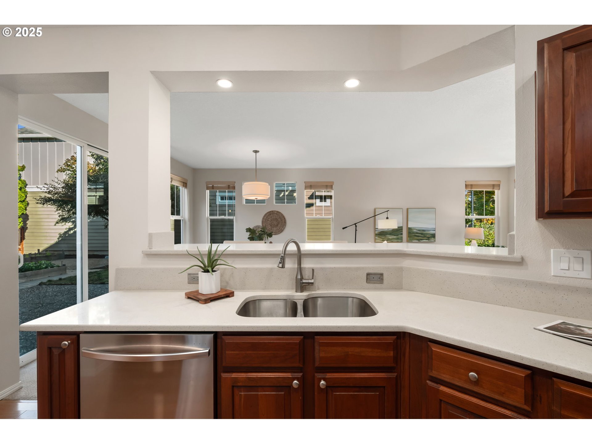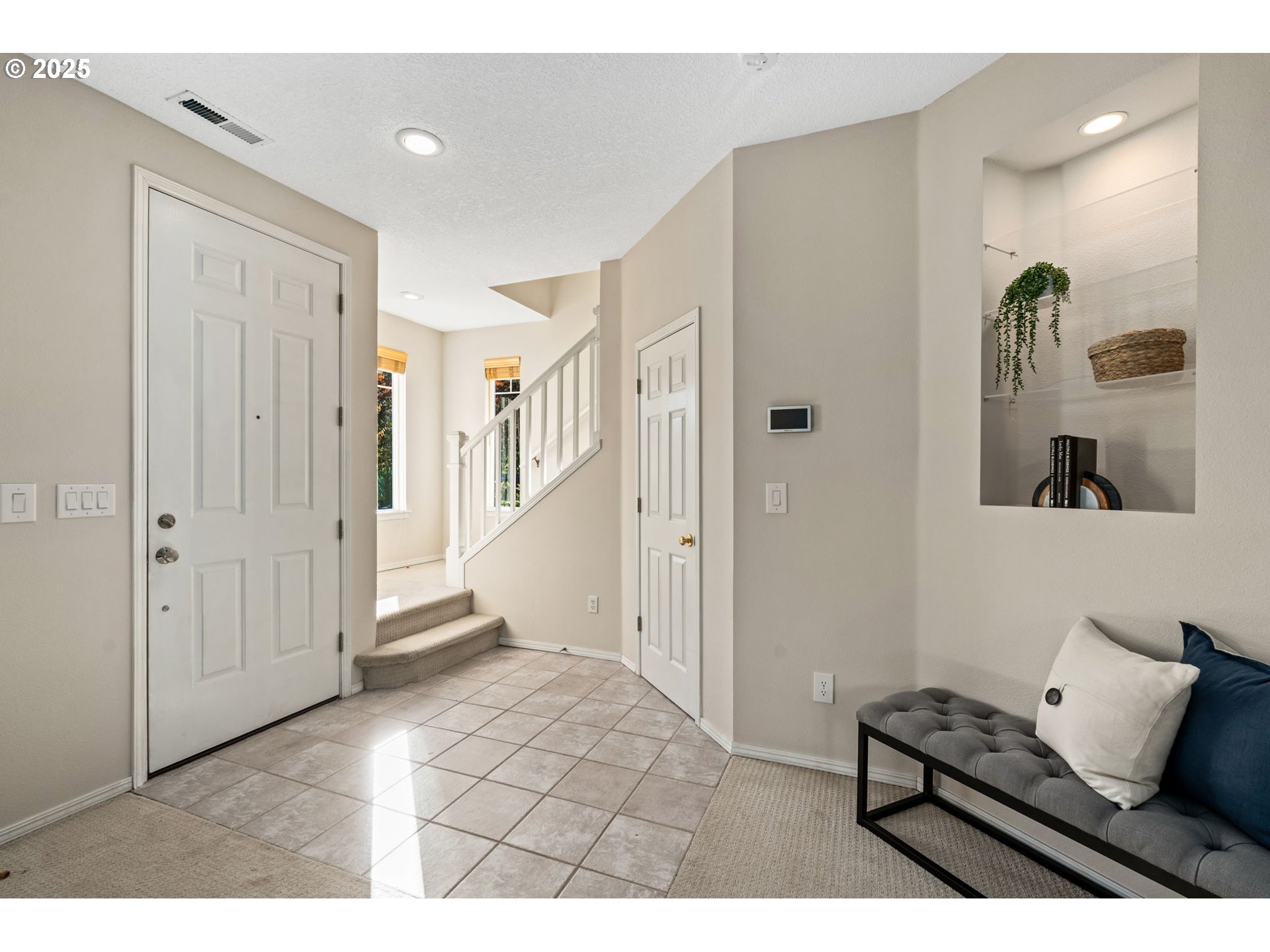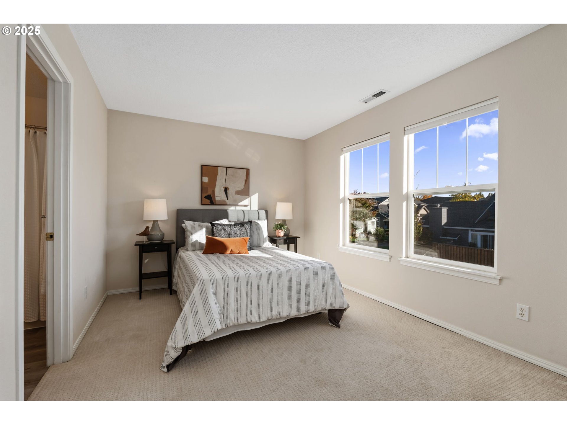 This beautifully maintained Hillsboro home offers modern comfort and thoughtful updates throughout. A brand new roof, 4-year-old water heater, and quiet 3-year-old heat pump and A/C provide peace of mind and comfort for work-from-home living. The open main level features a gas fireplace, dining area with slider to the backyard patio, and an updated kitchen with quartz counters, breakfast bar, and stainless steel appliances. Upstairs, the vaulted primary suite offers a walk-in closet and bathroom with quartz counters, skylight, and walk-in shower. A second bedroom suite, loft office, main-level laundry, and half bath add flexibility. Outside, enjoy a fenced yard with patio, raised garden beds, sprinkler system, and 1.5-car garage. Located in Orenco Station near Intel with MAX access to Portland, the neighborhood offers a pool, tennis court, and community room. With a Bike Score of 89, the home is also close to New Seasons Market, restaurants, and the seasonal farmers market. This move-in ready home delivers modern updates and effortless living in a prime location.