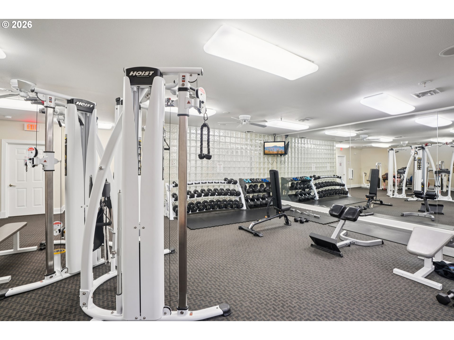Charming, light-filled condo in the heart of Orenco Station! This inviting home features an open living/dining/kitchen floorplan with vaulted ceilings, large windows, and a cozy fireplace—perfect for winter evenings. French oak hardwood floors and fresh paint add warmth and style throughout. The spacious loft offers a flexible space ideal for working from home or a reading nook. Enjoy abundant natural light and a private balcony with views of the nearby park. The primary suite includes an ensuite bath, and the home is very energy efficient. Recent upgrades since 2021 include hardwood floors, paint, custom shelving, and an EnergyStar Samsung washer/dryer with transferable warranty. Includes two deeded parking spaces—one on a private street and one in a secured covered garage. Located within the desirable Orenco Station Villages HOA, offering exceptional amenities: 2-story gym, pool, hot tub, tanning bed, business center, movie theater, racquetball court, carwash station, billiards, library, piano room, and volleyball court. Unbeatable transit-oriented location with easy access to restaurants, bars, parks, grocery store, Intel campuses, MAX light rail, and bus lines. HOA fee also includes all water, sewer, garbage/recycling, landscaping, exterior/building and common element maintenance.