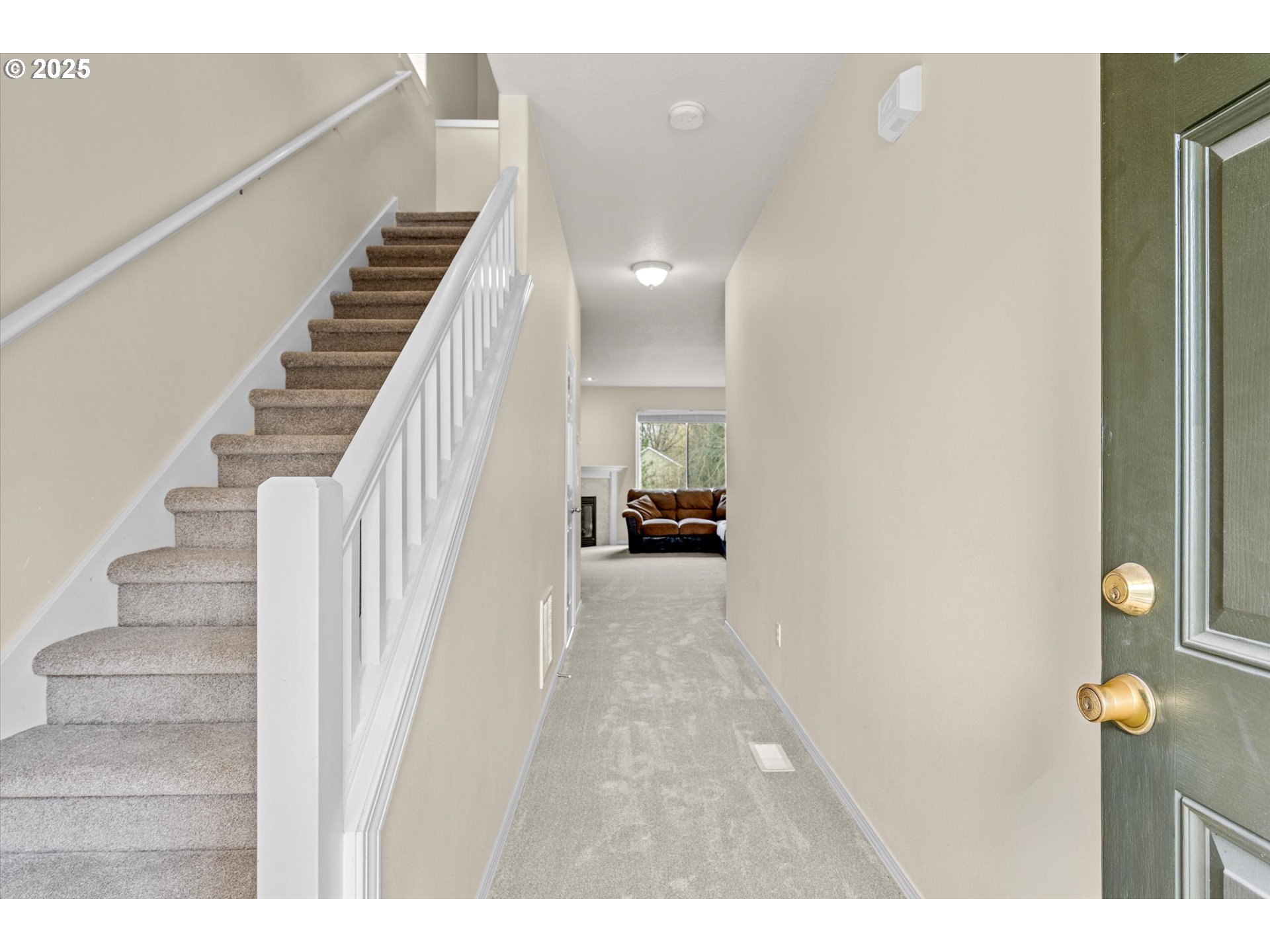 Move in Ready with Brand New Carpet and LVT in 2025. New Roof & Windows in 2022. Open floorplan - family room with a gas fireplace & open to the dining area & kitchen. Sliding door to the back deck. Kitchen with gas range, eat-at island, pantry, built-in microwave, & dishwasher. Upstairs, you’ll find three bedrooms, including a vaulted primary suite with a walk-in closet, two additional vaulted bedrooms, a bonus room, and a laundry room. A great location on a private street, a level corner lot with tree-lined views. All appliances included.