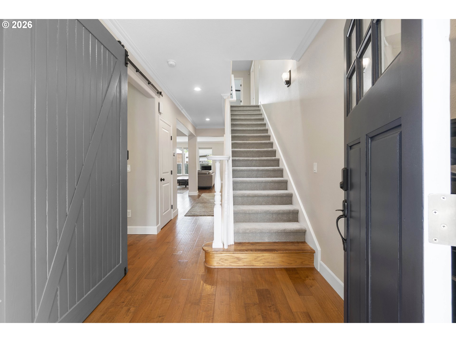 (503) 893-8874Beautifully maintained home in Orenco Station, set on a spacious and private lot. The gourmet kitchen includes stainless steel appliances, a gas range, quartz countertops, an island, and a breakfast nook. The inviting living room with a gas fireplace flows seamlessly into the dining area with sliding glass doors to the backyard. A versatile office or den on the main level features a Murphy bed and barn doors. Hardwood flooring extends throughout the main floor. Upstairs, the primary suite offers vaulted ceilings, spacious walk-in closet and a private ensuite bath. Three additional bedrooms and a generous bonus room, complete with its own balcony, provide flexible living space. Enjoy the private backyard with a deck, perfect for relaxing or entertaining. Furnace and a/c were updated in 2021, hot water heater in 2024. Paid off solar panels help with the electricity bill! Three car tandem garage. Ideally located near New Seasons, dining, shopping, parks, schools, and public transit, with easy access to all that Orenco Station has to offer.