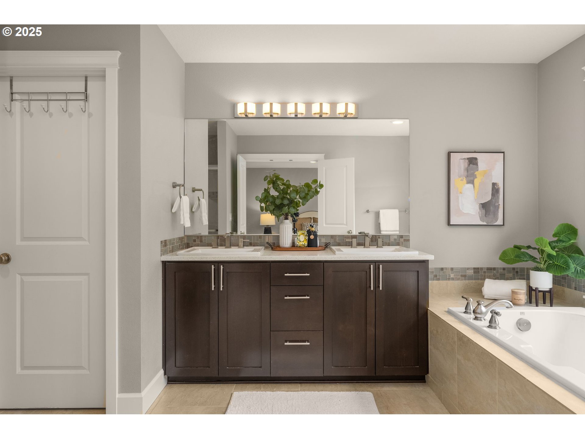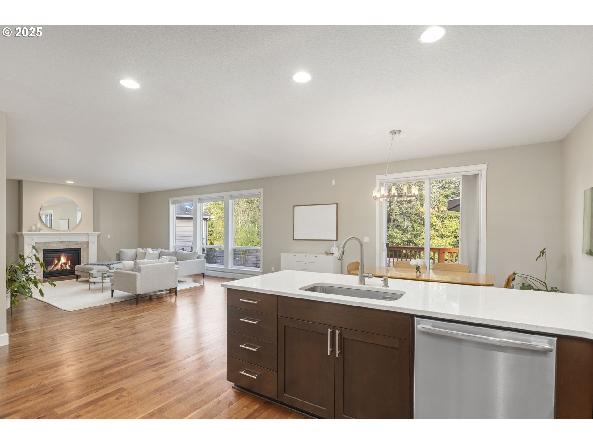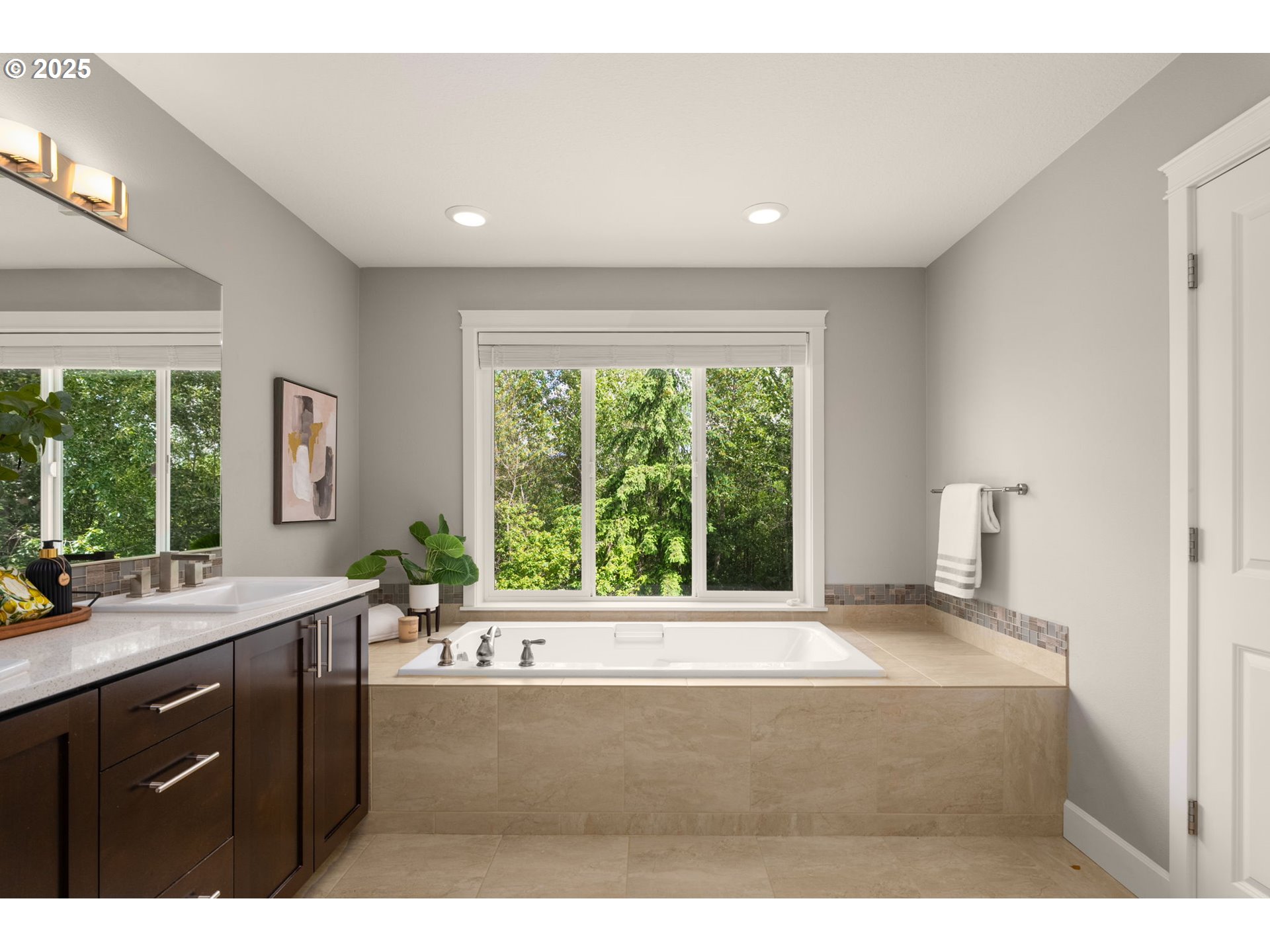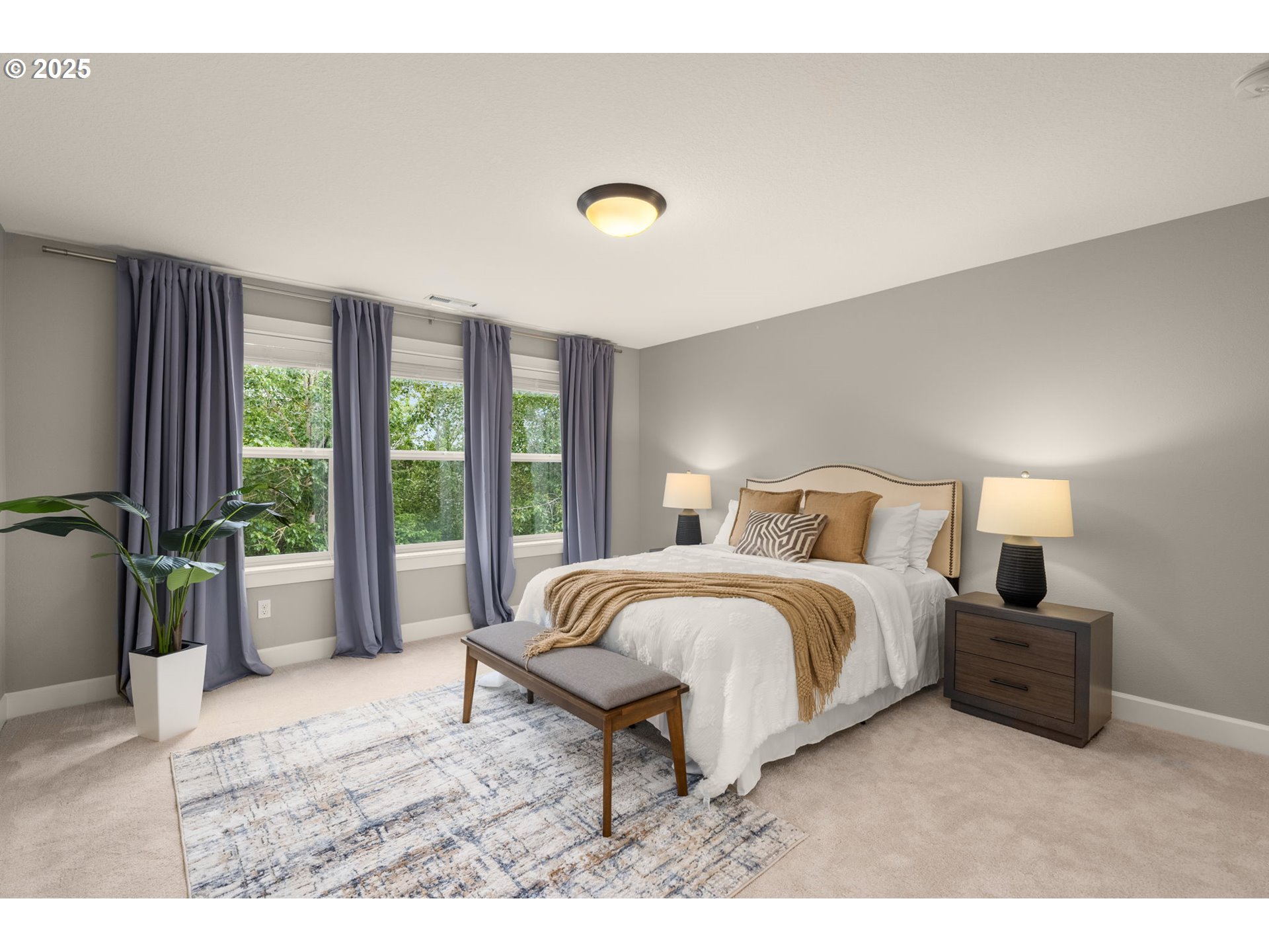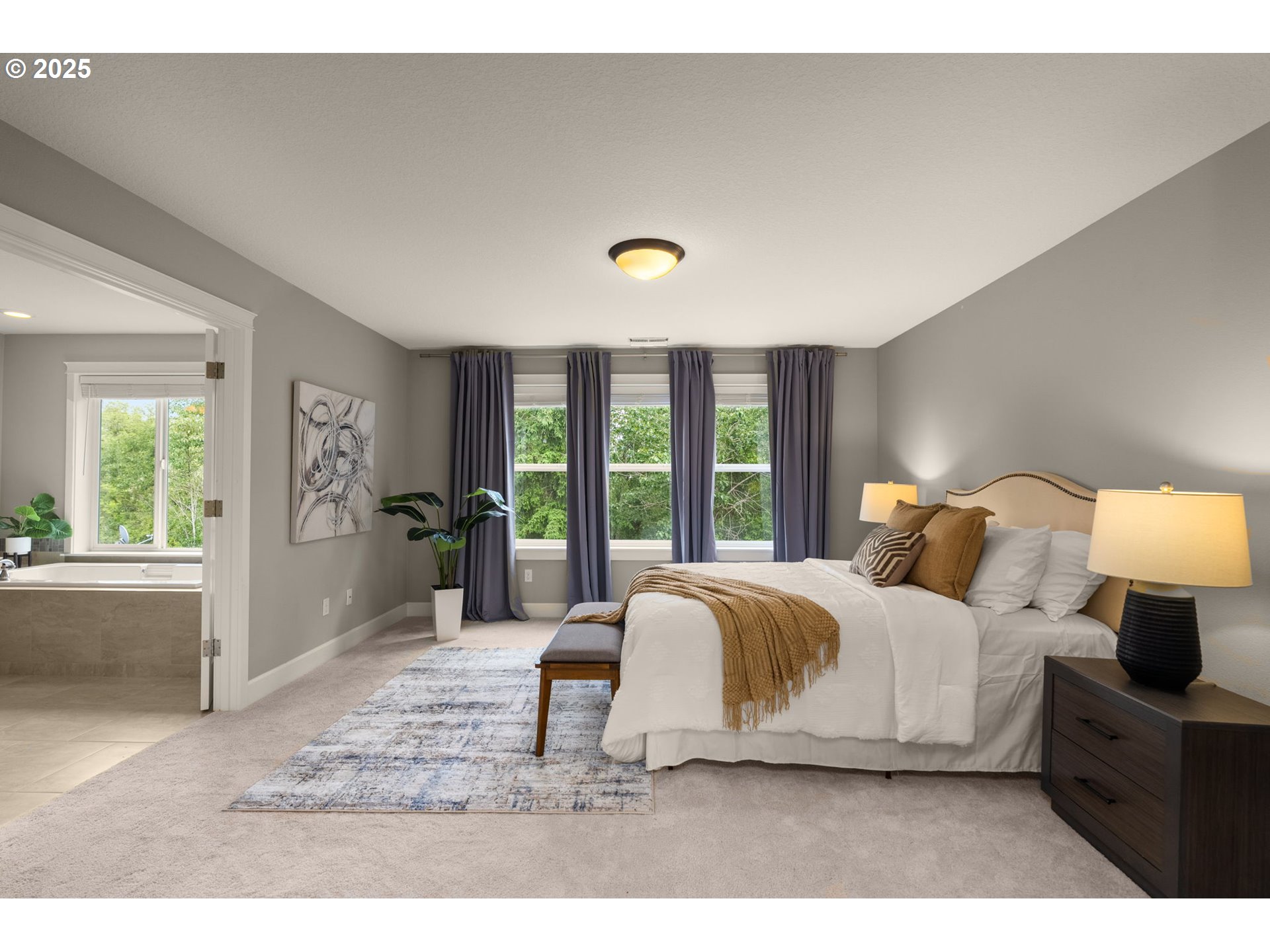 Beautiful and spacious cul-de-sac home minutes from Nike HQ & Costco! Main level features hardwood floors with an inviting entryway, den and open living space with a cozy gas fireplace. Kitchen with quartz counters, comes well equipped for a chef and is great for dinner parties with additional counter seating. Slider to back deck, patio and raised planter beds create a backyard oasis perfect for both relaxing and entertaining. A greenspace with trees behind home offers extra privacy along with a nice view! Upstairs, brand new carpet and French doors leading into the primary bedroom with luxurious bathroom featuring a huge soaking tub, separate shower and walk-in closet. Three additional bedrooms are all generously sized; closets come with custom organizers. Laundry room located on upper level for added convenience. Superb location near Fred Meyer, THPRD Rec Center and easy access to Hwy 26. Also centrally located to elementary, middle and high school!