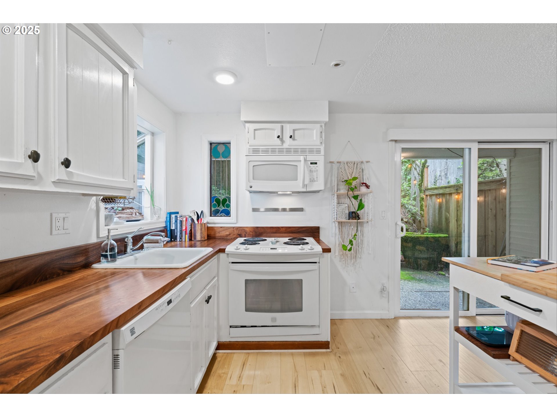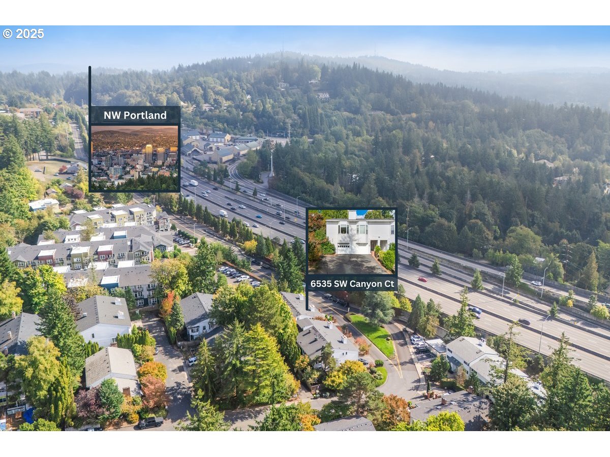 Close to OHSU, with Washington County taxes and low HOA fees, this beautifully updated Sylvan Highlands end-unit townhome offers the perfect blend of privacy, convenience, and city access. Surrounded by trees and just minutes to downtown Portland, this light-filled home features vaulted ceilings, expansive windows, and an open, airy layout.The main level includes light hardwood floors, a cozy gas fireplace, and a living room bay window with city views. The kitchen boasts butcher block countertops, a walk-in pantry, bay window, built-in coffee bar, and charming stained-glass details—an ideal setup for everyday cooking and entertaining. Upstairs, two spacious bedrooms feature vaulted ceilings and peaceful treetop views. The primary suite includes a beautifully updated bathroom with a skylight and dual sinks. A rare, oversized attic provides exceptional extra storage or a quiet reading nook. The lower level adds a flexible bonus space perfect for a home office, workout area, or additional storage, with direct garage access for everyday convenience. Outside, relax on your private, tree-lined patio—a quiet retreat after a day in the city. This move-in-ready home is ideally located close to Washington Park, OHSU and Providence hospitals, desirable NW 23rd, the Sunset Transit Center, and major commuter routes, offering unmatched access to Portland’s best amenities while maintaining a peaceful, forested setting.