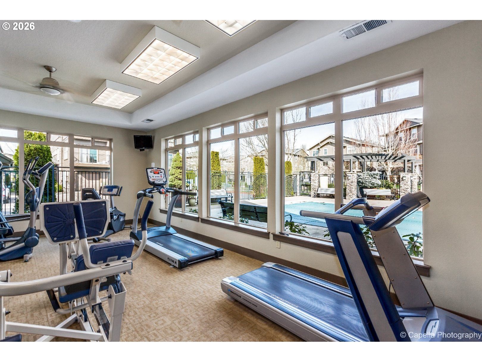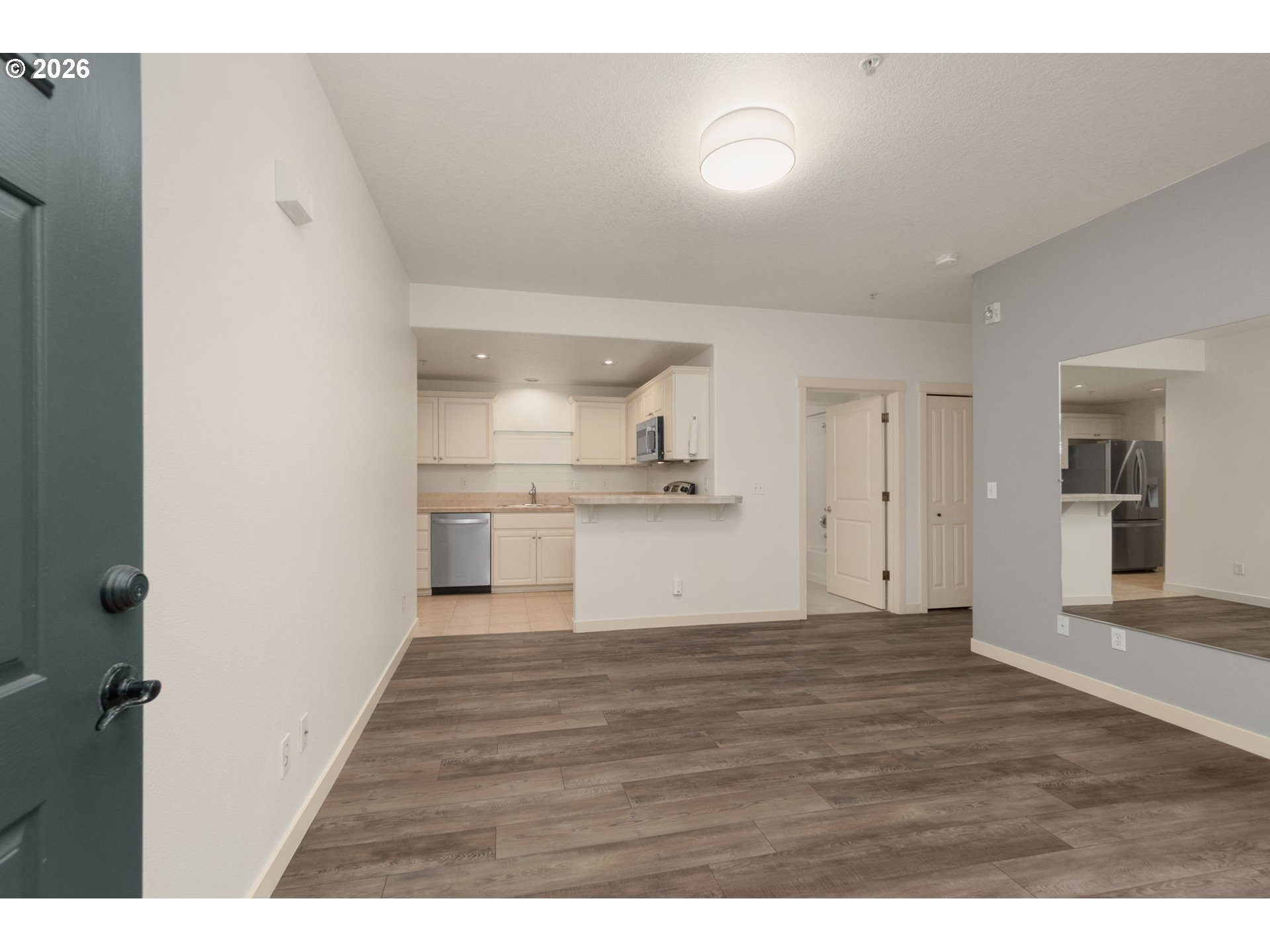 Beautifully maintained and accessible single-level condo in the desirable Arbor Crossing community! This centrally located ground-floor end unit offers added privacy, with a prime setting adjacent to peaceful greenspace and convenient access to nearby light rail. The open floor plan features quality finishes throughout, including a well-appointed kitchen with stainless steel appliances, eating bar, and seamless flow into the living area. Enjoy outdoor relaxation on the covered patio, ideal for morning coffee or evening unwinding.Arbor Crossing offers exceptional amenities, including a fitness center, pool, and clubhouse, all easily accessible from the unit. The home also includes an assigned parking space for added convenience. Ideally located close to shopping, restaurants, parks, and major commuter routes, this move-in ready condo combines comfort, accessibility, and an unbeatable central location.