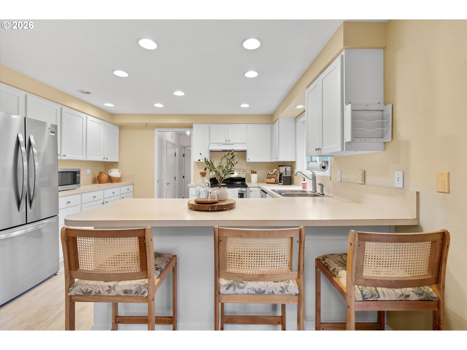 First time on the market in 50 years, this well-cared-for one-level home sits on a spacious corner lot. Inside, you’ll find a comfortable, functional layout with Eucalyptus engineered hardwood floors, 3 bedrooms plus a flexible 4th bedroom or office, and 2.5 bathrooms.The spacious kitchen offers custom pull-out drawers and stainless steel appliances, opening to a generous dining area ideal for entertaining, with a dedicated laundry room for added convenience. The sunroom is a standout feature—filled with natural light and offering a versatile space to relax, entertain, or enjoy year-round indoor-outdoor living.Step outside to a fenced backyard with garden boxes and a peaceful water feature that creates a quiet, private setting—perfect for unwinding or spending time outdoors.Recent updates include a full repipe in 2019 and a new heat pump installed in 2021, Roof replaced less than 10 years ago, adding comfort and peace of mind.With RV parking and additional space for vehicles, this property offers both flexibility and ease. A solid home that’s been thoughtfully maintained over the years, with a great layout and room to make it your own.