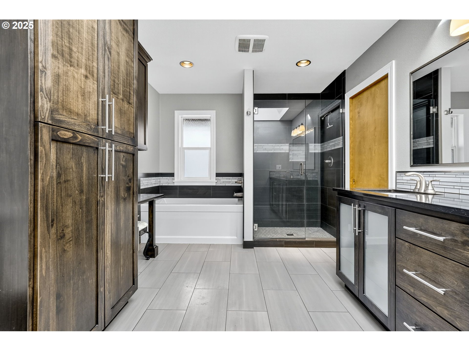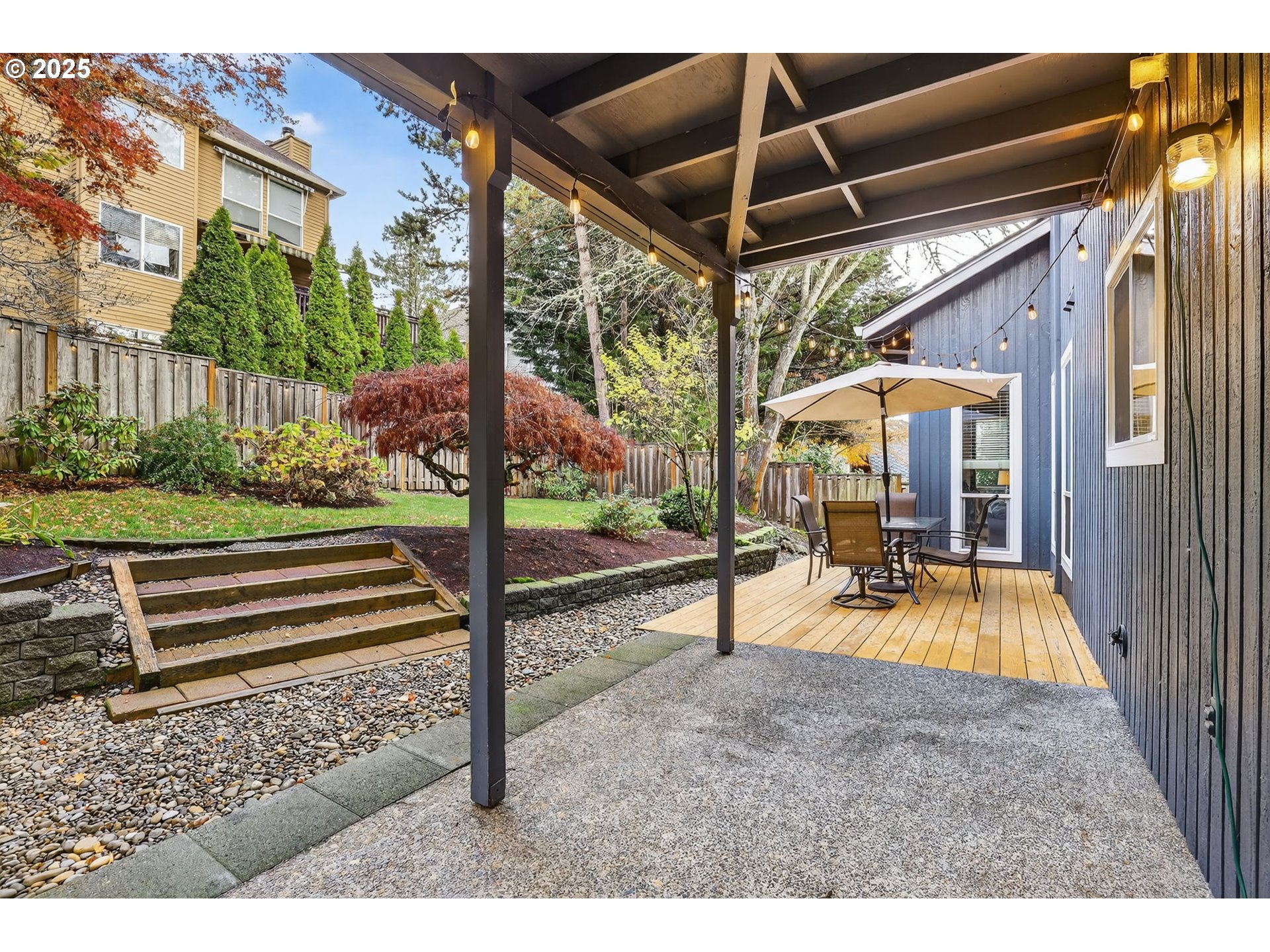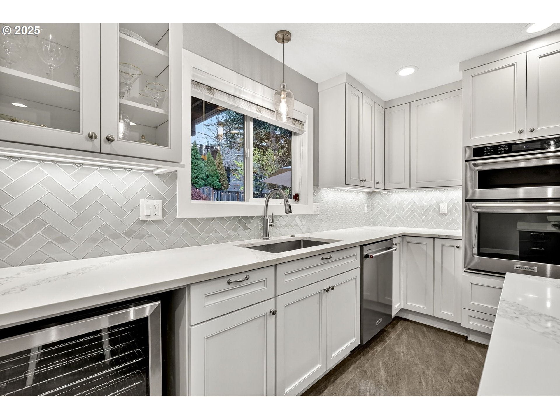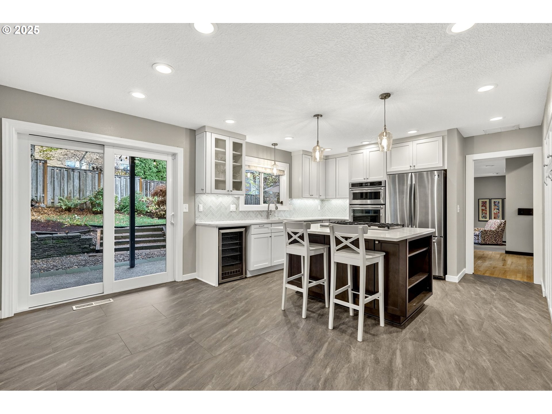 (503) 893-8874*OPEN SAT 12/13 & SUN 12/14 FROM 11 AM - 1 PM* 2 Story Beaverton Contemporary! Stunning stone steps lead to a covered front porch overlooking a beautifully landscaped front yard. A lofted entry features hardwood floors, a powder room with Quartz countertops, and coat closet. Hardwood floors flow into an open dining room with floor-to-ceiling windows and a decorative railing to the formal living room with vaulted ceilings, exposed beam, built-ins, and a wall of backyard-facing windows. The freshly remodeled kitchen offers an eat-in island with storage, stainless steel appliances, pantry-style cabinets, Quartz countertops, glass tile backsplash, beverage fridge, and dining nook with sliding door to the backyard oasis. Adjacent family room includes a fireplace, wet bar, and nearby laundry with built-ins. The main floor bedroom option/Den has a window seat, built-in desk, and closet nearby. Upstairs, a lofted landing with skylight leads to a spacious primary retreat with ceiling fan, private deck, and ensuite with dual-sink Quartz vanity, walk-in tile shower, tub with tile surround, built-in storage, and walk-in closet. 2 additional bedrooms up with new paint share a hall bath with skylight and Quartz countertops. Backyard retreat features covered patio, sunny deck, stone walkway, fenced yard, and mature landscaping. All of this near Westside Trail, Thornbrook Nature Area, and Mt. Williams Park. Don't miss this fantastic Mountainside district home!