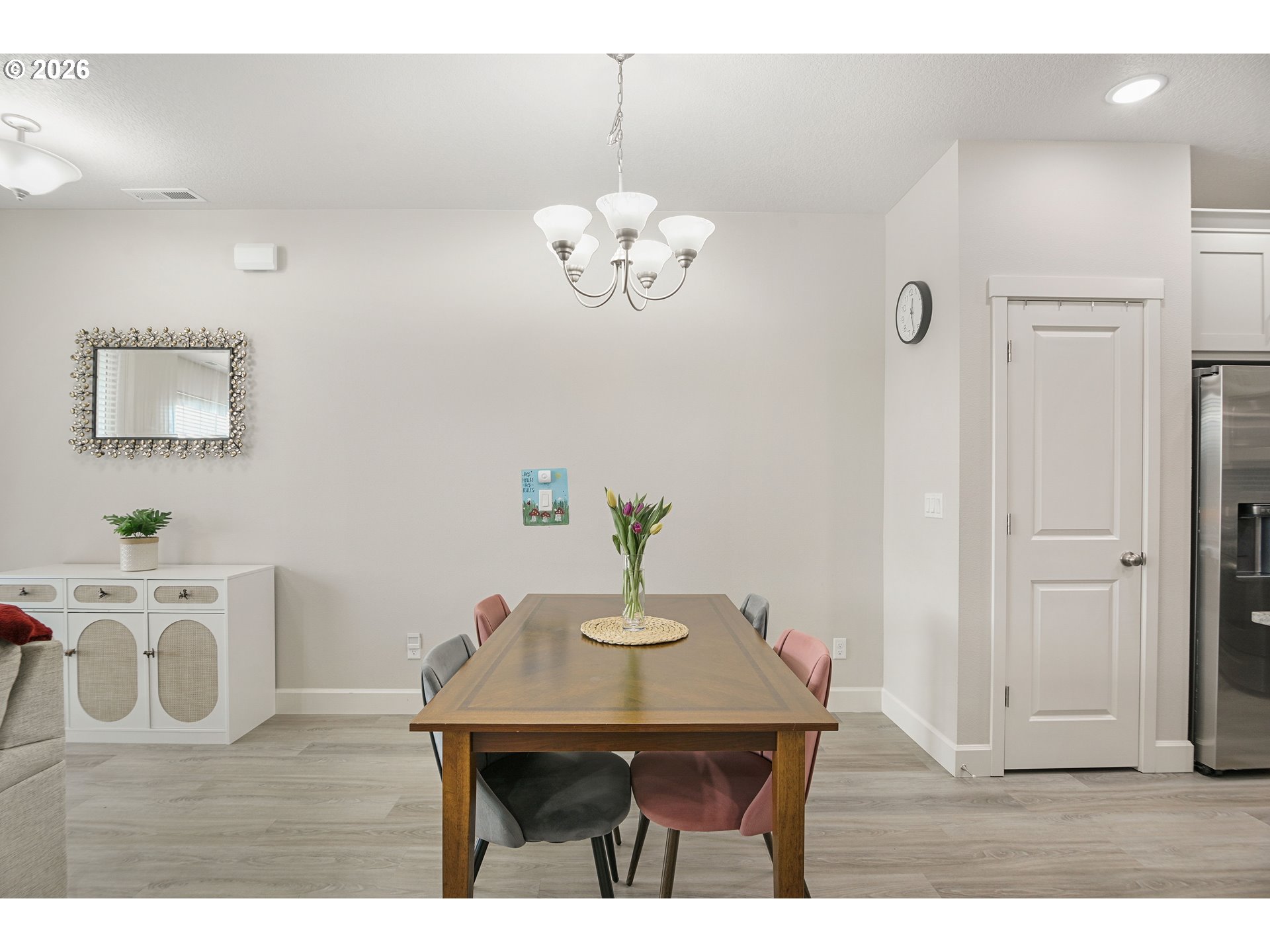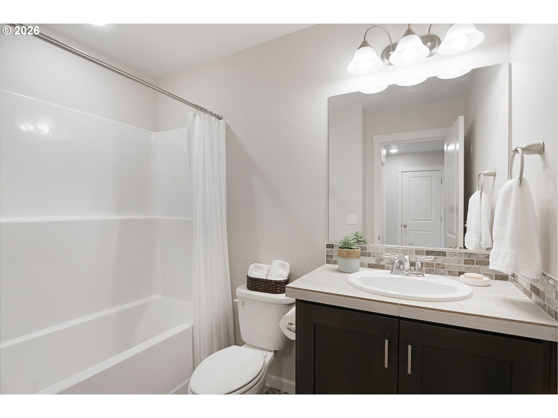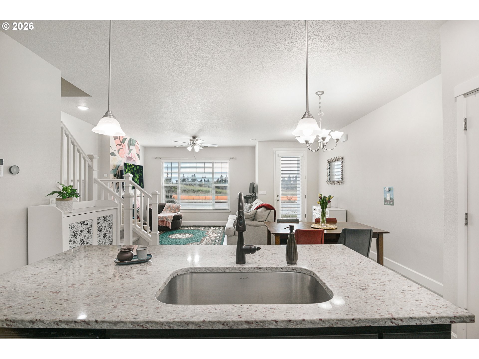 OPEN HOUSE SAT 12-2pm. This upgraded Reeds Crossing townhome offers exceptional value in a quieter southwest-end location, just a short walk to the new elementary school. It features upgrades not typically found in new models, including central AC, slab granite counters, tile backsplash, two-tone kitchen cabinets, and continuous luxury vinyl flooring on the main level. All appliances stay, including the refrigerator and Smart washer/dryer. All windows are installed with Plantation blinds. The primary suite has a large picture window that brings in natural light. The bathroom includes upgraded quartz counters and additional cabinetry for storage. All bedrooms are upgraded with ceiling fans and have ample closet space.A two-car garage, private driveway, and street parking in front make hosting easy.With three bedrooms, two and a half bathrooms, generous storage, and spacious secondary bedrooms, this home offers comfort and practicality in a vibrant community with walking paths, parks, and a community garden. Enjoy low-maintenance, energy-efficient living in an Earth Advantage Certified home, with exterior upkeep covered by the HOA. [Home Energy Score = 10. HES Report at https://rpt.greenbuildingregistry.com/hes/OR10193536]