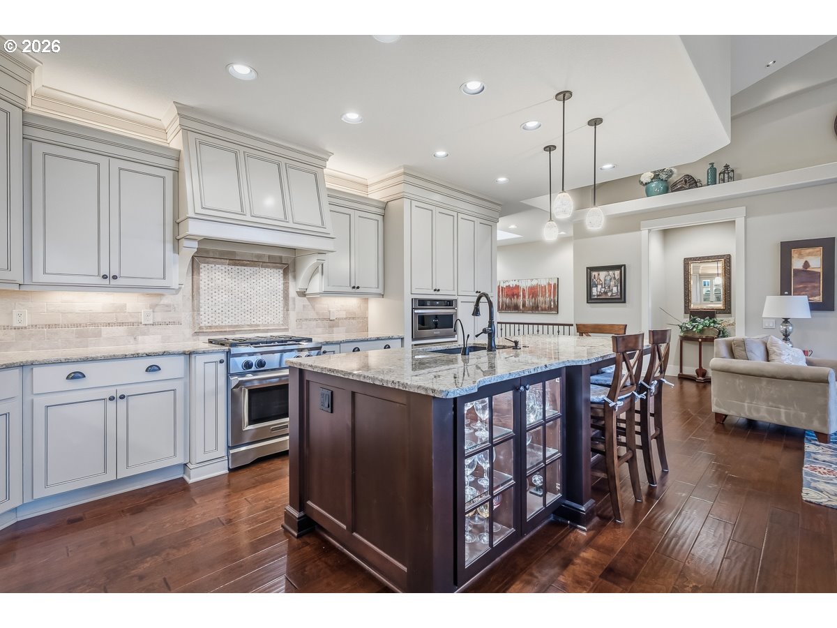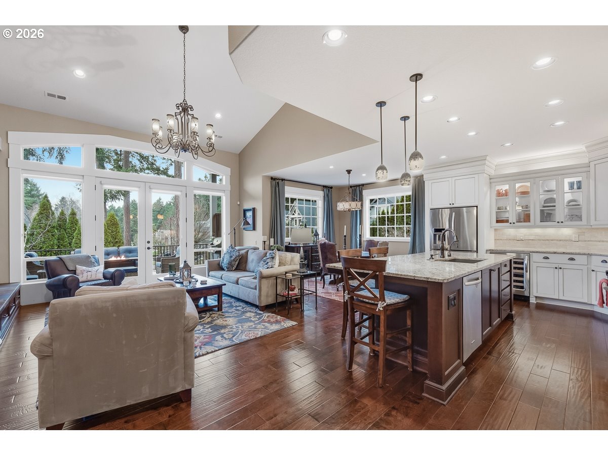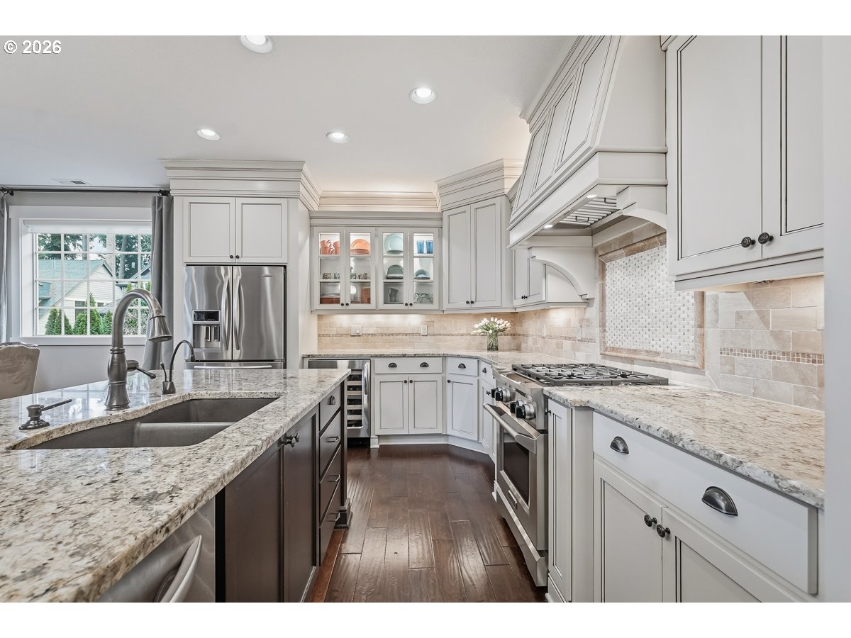 Incredible SW Beaverton home built by Ridgecrest Homes in 2013! Desirable great room floorplan with main-level primary suite and daylight basement. The primary suite features vaulted ceilings, a spacious walk-in closet (W/ stackable washer and dryer), soaking tub, and walk-in shower. Stunning kitchen with custom cabinetry, granite countertops, stainless steel appliances, and a large island - ideal for entertaining. The great room offers soaring vaulted ceilings, a gas fireplace with built-ins, and access to a covered balcony for seamless indoor-outdoor living. Engineered hardwood floors throughout much of the main level. Ev charging in the garage! The daylight lower level offers a spacious bonus room with a custom built-in wine bar and direct access to the professionally landscaped, low-maintenance backyard. The fully fenced yard features a covered patio, multiple seating areas, tranquil water features, and artificial turf - perfect for year-round enjoyment. Modified Mascord plan(1221B). Located in the highly desirable Mountainside High School area with convenient access to Nike and other major high-tech employers.