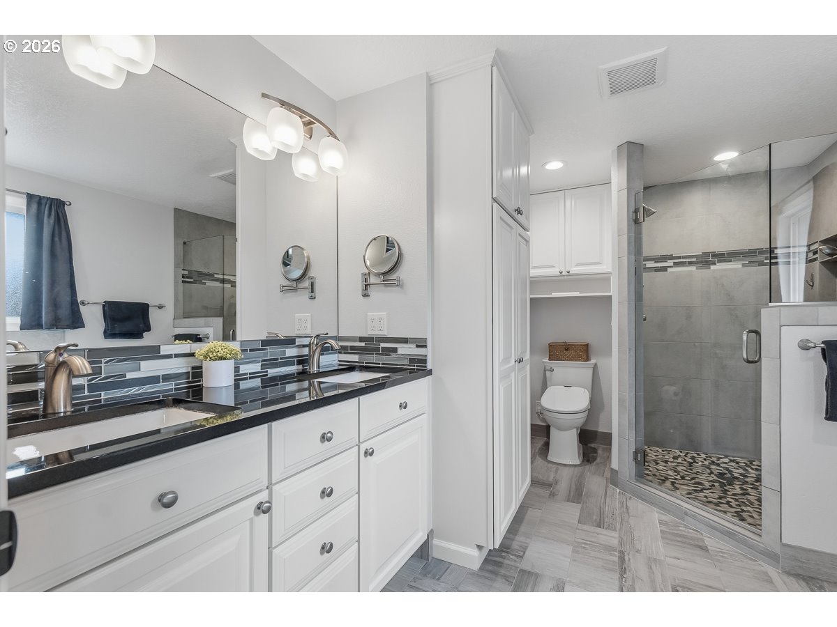 Incredible single-level home in Beaverton’s Highland neighborhood, situated on a corner lot! This home features extensive updates and thoughtful improvements throughout. The updated kitchen offers quartz countertops, abundant cabinet space, and modern finishes. Major system updates include a newer furnace and A/C for year-round comfort. Engineered hardwood floors run through much of the home. The spacious primary suite includes an oversized walk-in closet and an updated bathroom with double vanity, walk-in shower, and soaking tub. The professionally landscaped, fully fenced backyard is designed for outdoor living, featuring a covered patio, hot tub, and extensive hardscaping. Additional improvements include driveway and fencing updates. Two-car garage with opener. Conveniently located with access to nearby amenities, shopping, and dining. Don't miss this incredible single level home!