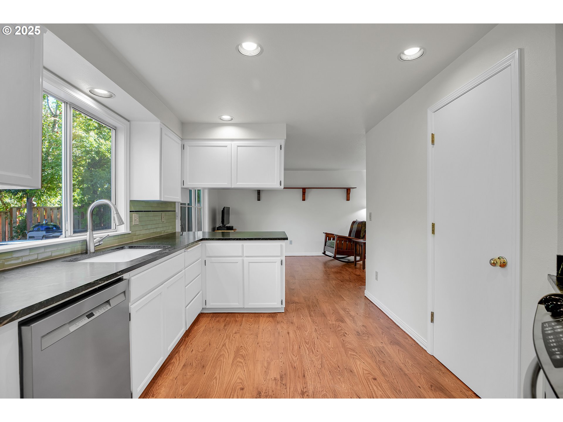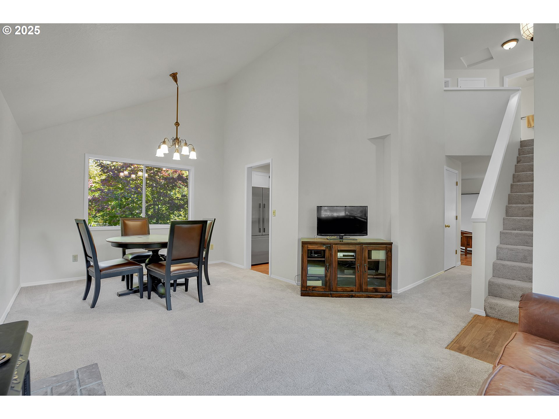 Charming & Updated in Hillsboro! Thoughtfully designed 3-bedroom, 2.5-bath home offers 1,386 sqft of comfortable and functional living space. Step inside to the inviting living room features soaring vaulted ceilings, beautiful wood-burning fireplace, and skylight — creating a bright and welcoming atmosphere. The well-appointed dining area with vaulted ceilings and large window overlooking the private backyard. The remodeled kitchen is chef inspired with a gas range, stainless steel appliances, soapstone counters, abundance of cabinetry, pantry, custom tile backsplash, and an eat bar that flows seamlessly into to the sizeable family room with access to the backyard. Upstairs, the primary suite offers a walk-in closet and a low step-in shower for a private retreat. Two additional bedrooms overlooking the greenspace feature plush wall-to-wall carpet, ideal for family, guests, or a home office. Outside, the private fully fenced backyard backing to greenspace offers a spacious deck—perfect for outdoor dining, entertaining, or quiet nights under the stars for seamless indoor-outdoor living and entertaining. With fresh updates including interior/exterior paint and flooring throughout and an unbeatable location in one of Hillsboro’s sought-after areas, this home is move-in ready. With its thoughtful layout, timeless finishes, and desirable schools, this home offers both everyday functionality and refined style—set within a highly thriving community. [Home Energy Score = 6. HES Report at https://rpt.greenbuildingregistry.com/hes/OR10242556]