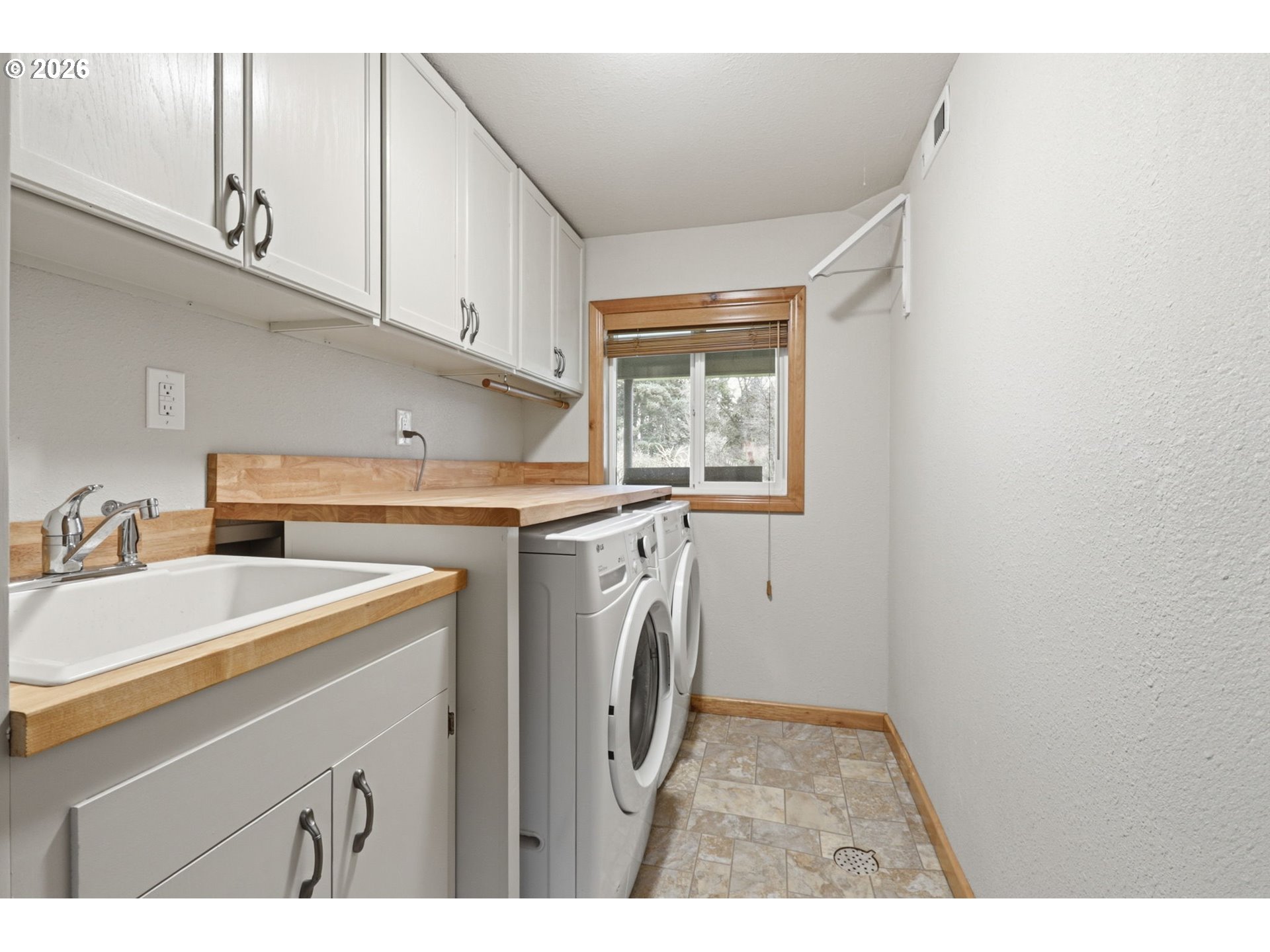This beautifully updated split-level residence is a true Mid-Century Modern home nestled on a sprawling lot of just under an acre, offering a perfect balance of modern comfort and exceptional utility. The heart of the home is the stunning kitchen, which features a large island, sleek quartz countertops, and abundant storage with built-in cabinetry that flows into a dining area with a slider to the back deck. Notably, the kitchen is equipped for either a gas or electric stove, providing versatile options for any chef. In the main living room, a large bay window fills the space with natural light, highlighting the impressive floor-to-ceiling brick fireplace with a gas insert. The primary suite serves as a true retreat, boasting its own private slider to the deck and a walk-in closet, while the updated main bathroom provides a spa-like experience with dual sinks and a beautiful new walk-in tiled shower. The lower level expands your living options with a spacious family room anchored by a second floor-to-ceiling rock fireplace with a gas insert and an adjoining flex space with a tile floor. Practicality is a priority here, evidenced by the large utility room equipped with a sink and laundry, as well as the attached garage. For the hobbyist or professional, the property features a massive 1,200 sq. ft. shop complete with a cement floor, 220V power, and a gas furnace for year-round comfort. Outdoors, the huge backyard is a gardener’s paradise featuring 20 blueberry bushes, 80' of mature grape vines, 60' of mature raspberries, a huge fig tree, and multiple fruit trees. With these established plantings and additional dedicated garden space, this property is a rare find for those seeking both room to breathe and a place to create. [Home Energy Score = 5. HES Report at https://rpt.greenbuildingregistry.com/hes/OR10245438]