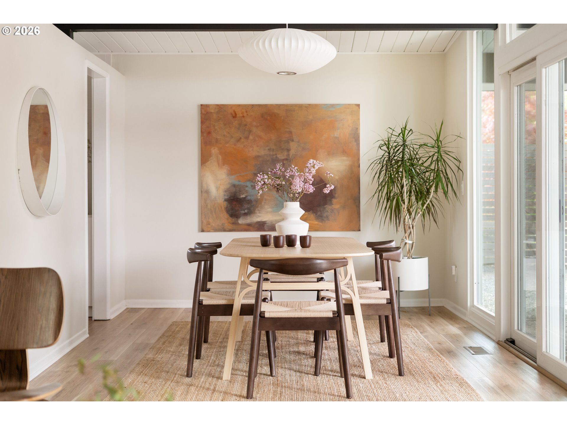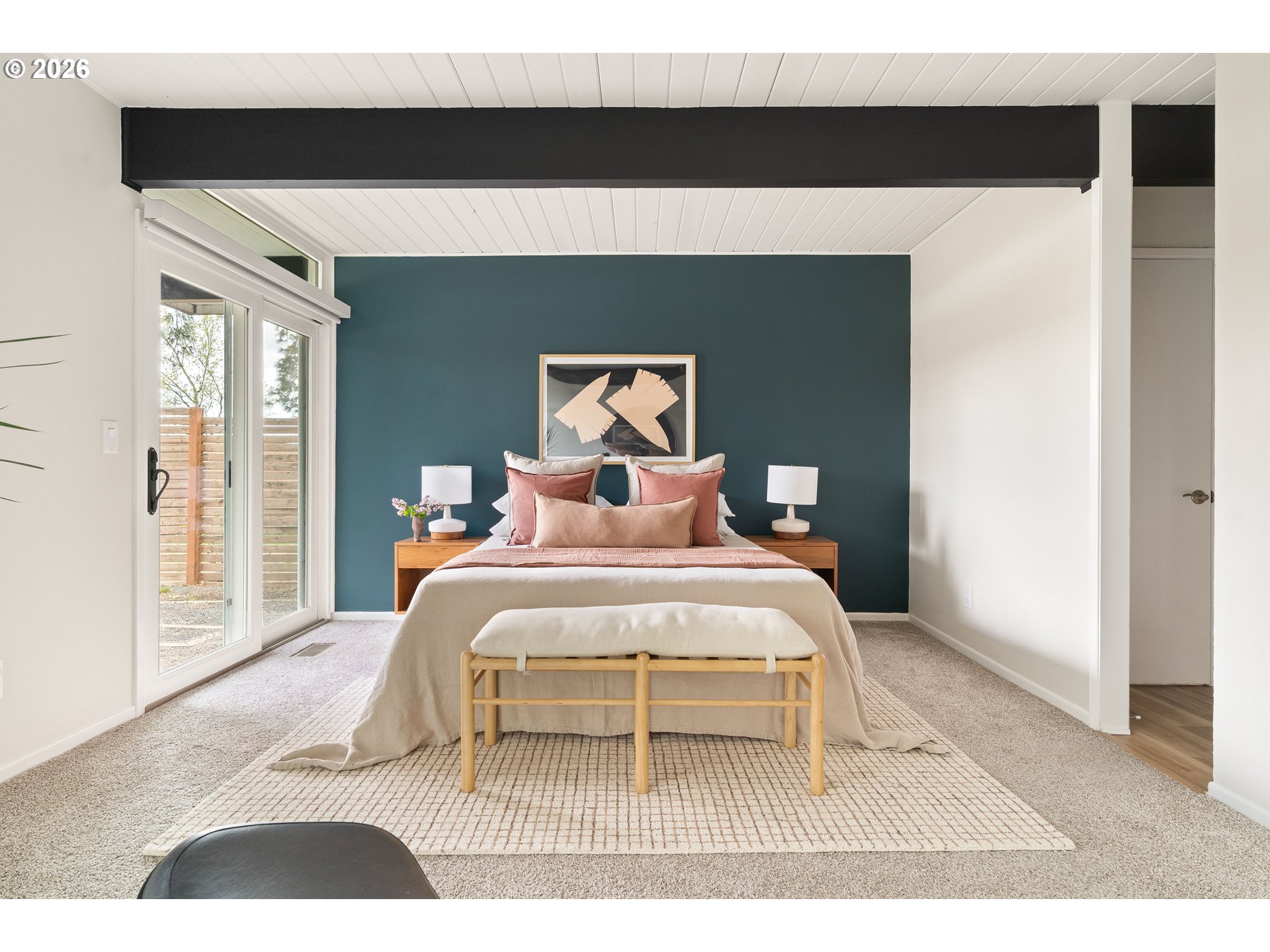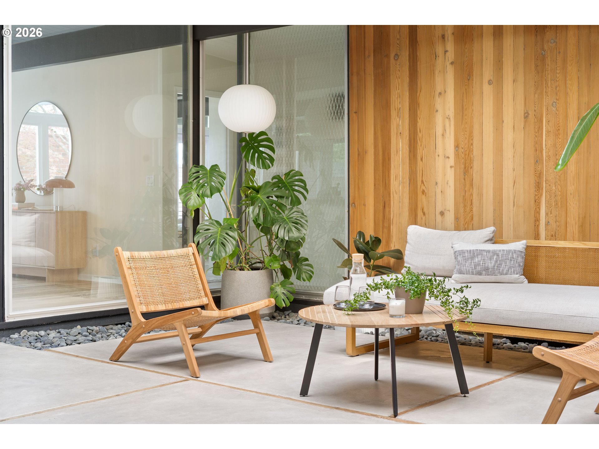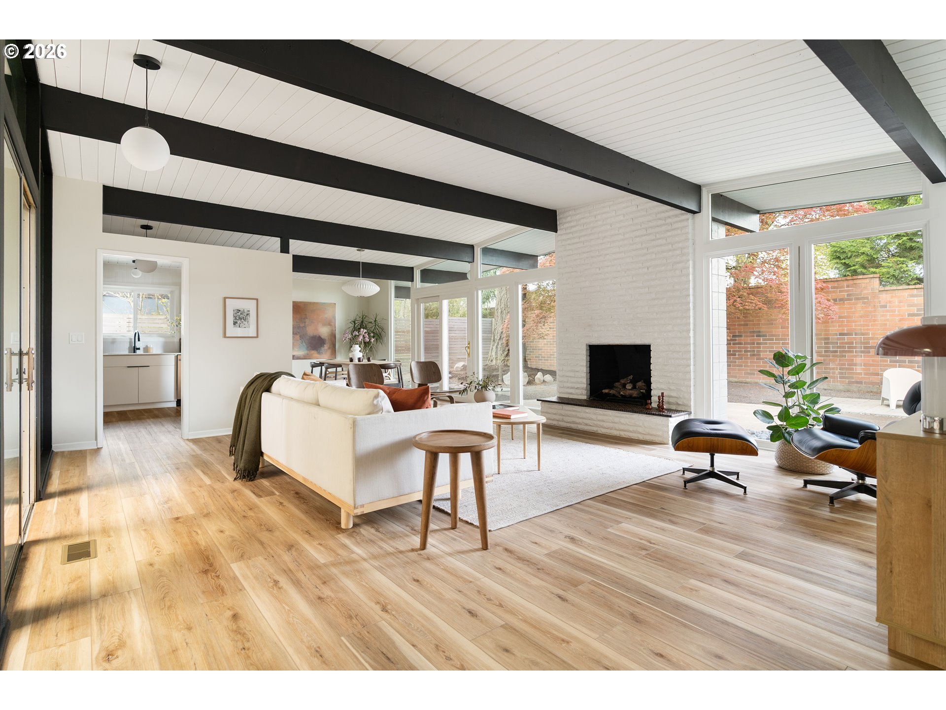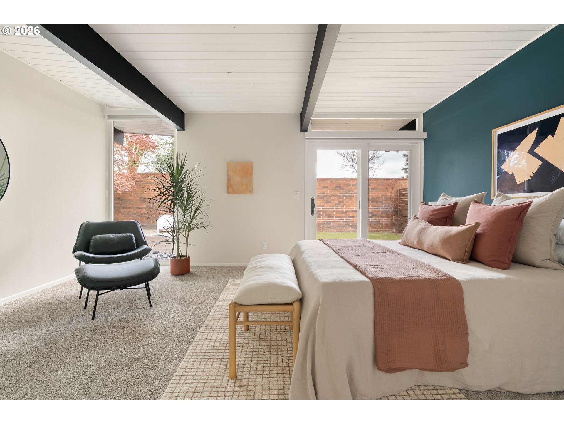 This one is special. This 1963 Rummer home has been thoughtfully reimagined to honor its original vision while elevating it for modern living. At its core, the home is organized around a central atrium, now redefined with new concrete and a triple-pane skylight that draws light deep into the interior. Throughout, the architecture does what Robert Rummer intended: dissolve the boundary between inside and out. Glass walls, exposed beams, and clean lines create a rhythm of light, shadow, and natural texture. The interiors have been carefully renovated with a restrained, design-forward approach. A fully updated kitchen anchors the main living space, opening seamlessly to dining and lounge areas. Bathrooms have been reworked with a modern, minimal palette, while new lighting, including Herman Miller fixtures, adds warmth and intention. Fresh interior paint and updated surfaces unify the home without overpowering its mid-century roots. Outside, the experience continues. The yard has been newly landscaped and features a newly poured driveway, fresh exterior paint, and clean-lined fencing that completes the composition. Behind the scenes, significant upgrades bring peace of mind: a new TPO roof, updated HVAC systems, a new electrical panel, and more, ensuring the home functions as well as it presents. With 4 bedrooms and 2 bathrooms, this is one of the largest Rummer floor plans, a rare opportunity to own a true Rummer that balances architectural integrity with a refined, modern sensibility.