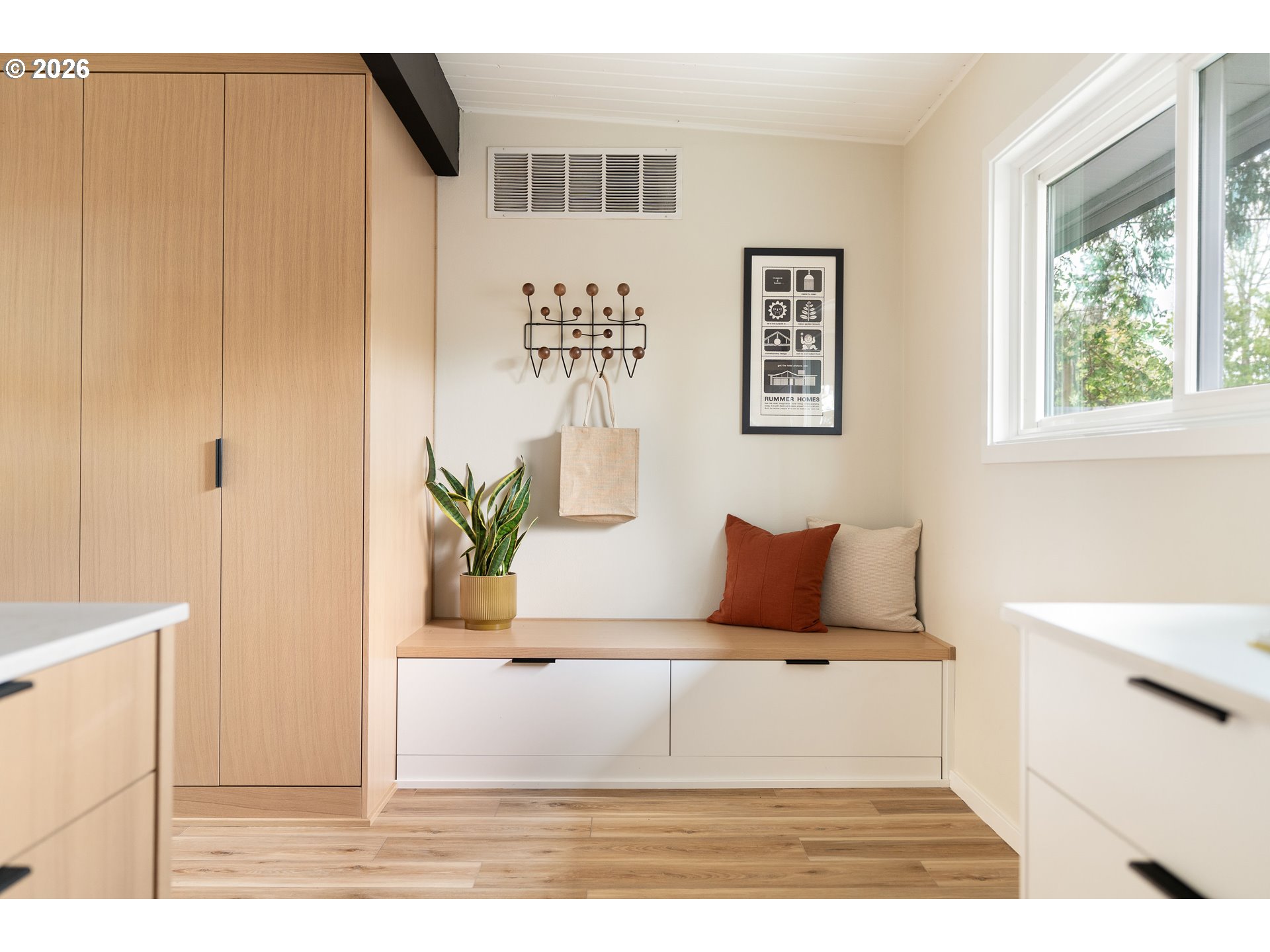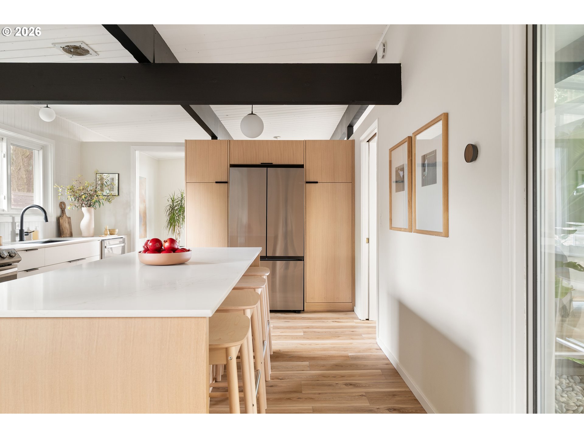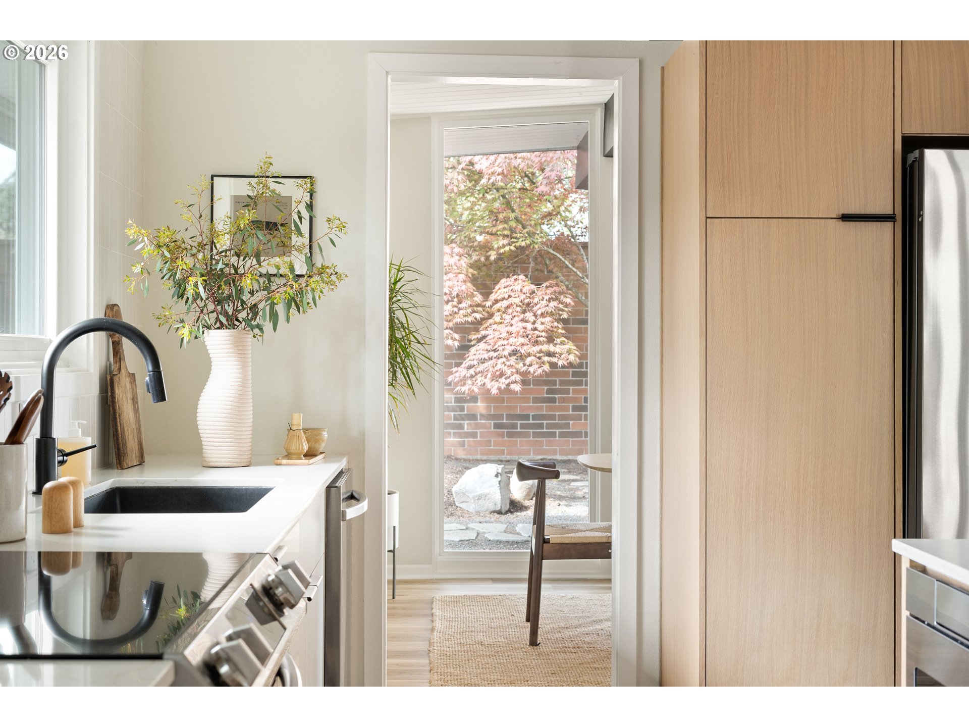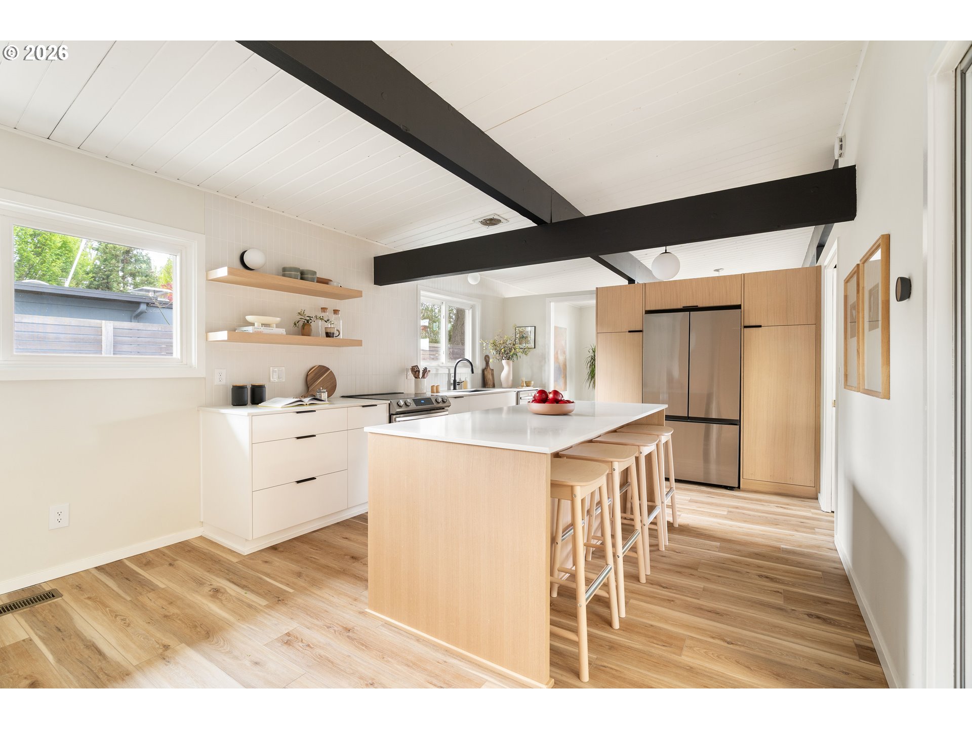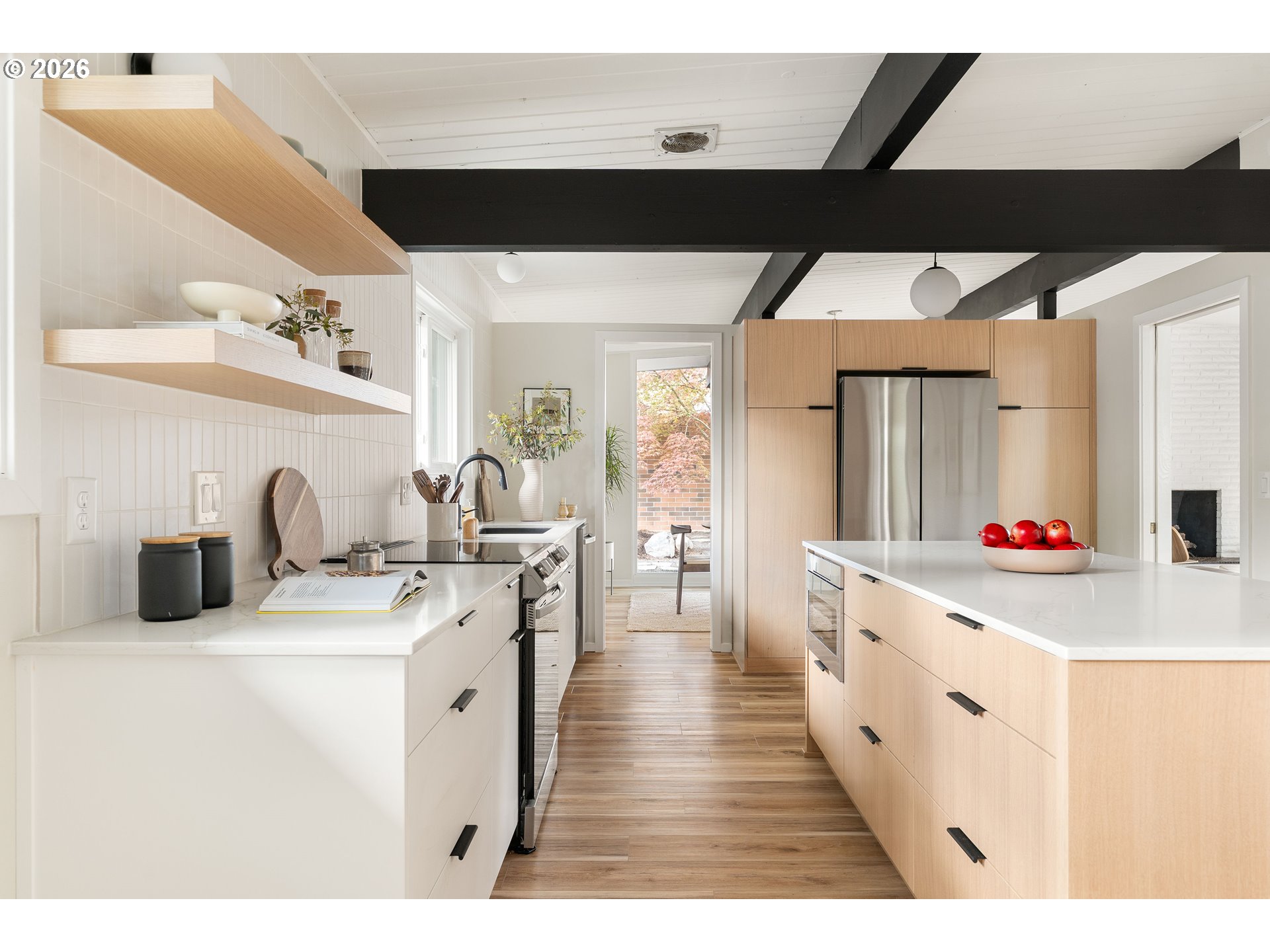 This one is special. This 1963 Rummer home has been thoughtfully reimagined to honor its original vision while elevating it for modern living. At its core, the home is organized around a central atrium, now redefined with new concrete and a triple-pane skylight that draws light deep into the interior. Throughout, the architecture does what Robert Rummer intended: dissolve the boundary between inside and out. Glass walls, exposed beams, and clean lines create a rhythm of light, shadow, and natural texture. The interiors have been carefully renovated with a restrained, design-forward approach. A fully updated kitchen anchors the main living space, opening seamlessly to dining and lounge areas. Bathrooms have been reworked with a modern, minimal palette, while new lighting, including Herman Miller fixtures, adds warmth and intention. Fresh interior paint and updated surfaces unify the home without overpowering its mid-century roots. Outside, the experience continues. The yard has been newly landscaped and features a newly poured driveway, fresh exterior paint, and clean-lined fencing that completes the composition. Behind the scenes, significant upgrades bring peace of mind: a new TPO roof, updated HVAC systems, a new electrical panel, and more, ensuring the home functions as well as it presents. With 4 bedrooms and 2 bathrooms, this is one of the largest Rummer floor plans, a rare opportunity to own a true Rummer that balances architectural integrity with a refined, modern sensibility.