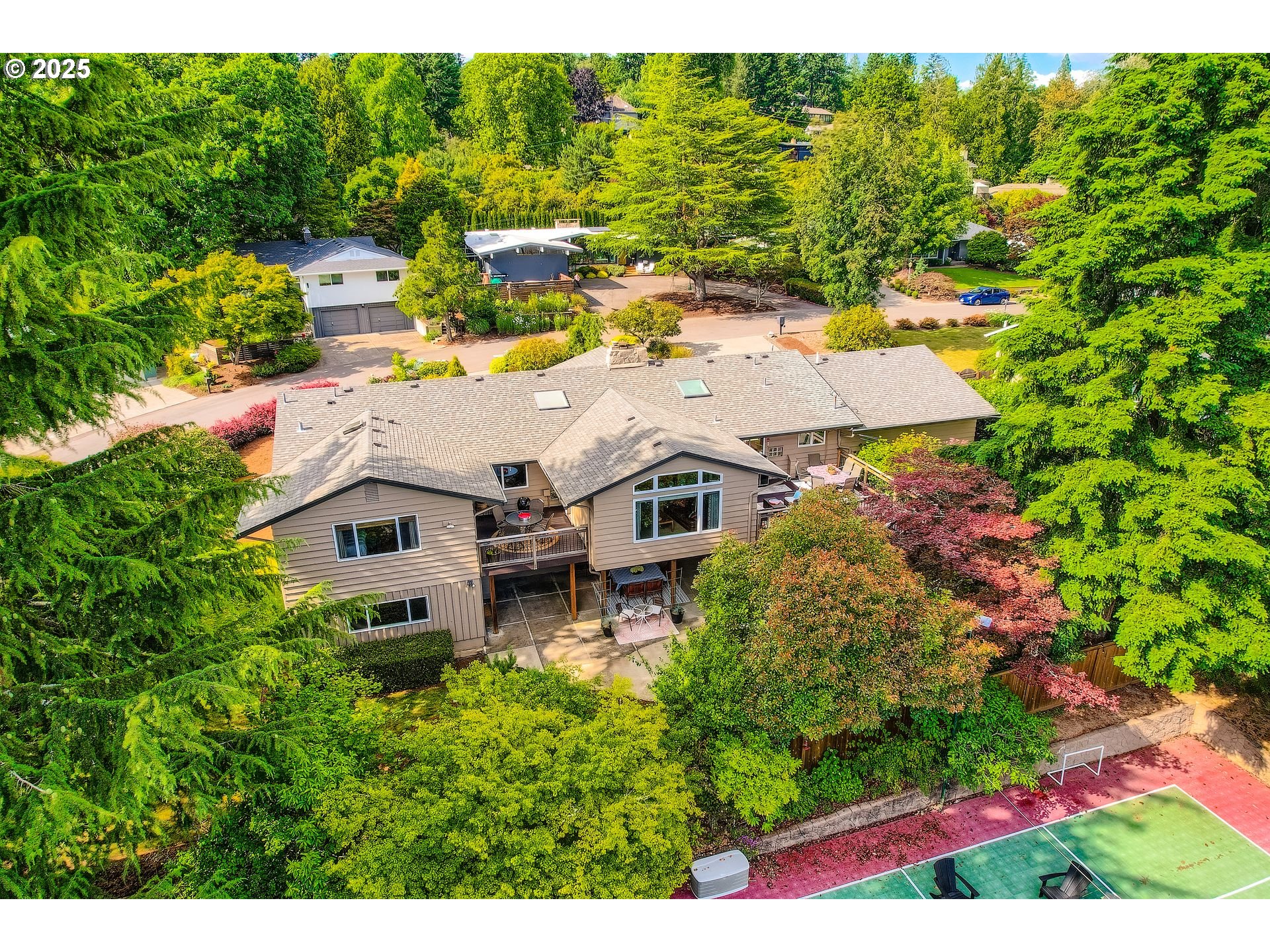 Tucked away on a quiet, low-traffic loop in sought-after Raleigh Hills, this beautifully maintained daylight ranch offers exceptional space, versatility, and privacy. With 4,912 square feet of thoughtfully designed living space and a primary suite on the main level, this home lives comfortably today while offering exciting future possibilities.The welcoming entry opens to a light-filled living room with newly refinished hardwood floors and a cozy gas fireplace, an inviting space for relaxing or entertaining. At the heart of the home, the expansive cook’s kitchen impresses with an over-sized island, gas cooktop, custom cabinetry, granite counters, built-in ovens, generous pantry storage, and a second fireplace. The kitchen and dining area flow into the family room and out to two spacious decks, perfect for indoor-outdoor living. One deck is plumbed for a gas barbecue, and both overlook the peaceful, landscaped backyard.The main level also features a dedicated office with built-ins, a spacious primary suite with walk-in closet and walk-in shower, plus two additional bedrooms.Downstairs, the daylight lower level offers remarkable flexibility—ideal for multi-generational living, extended guests, or potential rental use. A second family room with fireplace and wet bar (with potential for a future kitchenette) opens to a large patio and serene backyard. This level includes three additional bedrooms, two bonus rooms, abundant storage, and a utility room with floor-to-ceiling shelving. One bedroom includes a private exterior entrance, offering excellent separation of space.With six bedrooms, three full baths, two half baths, and an oversized two-car garage, this lovingly updated home delivers space, comfort, and versatility in one of Portland’s most convenient and desirable neighborhoods.