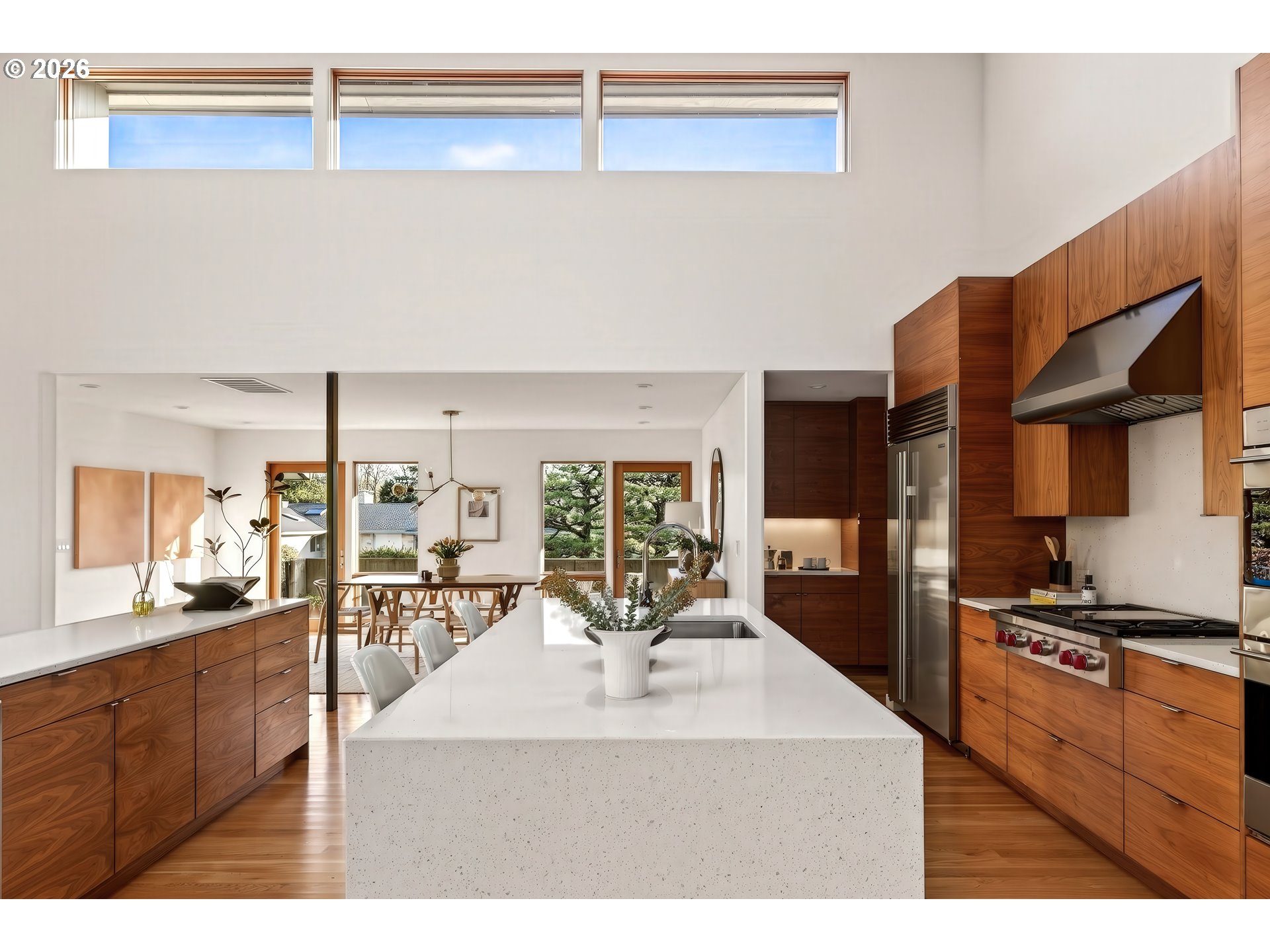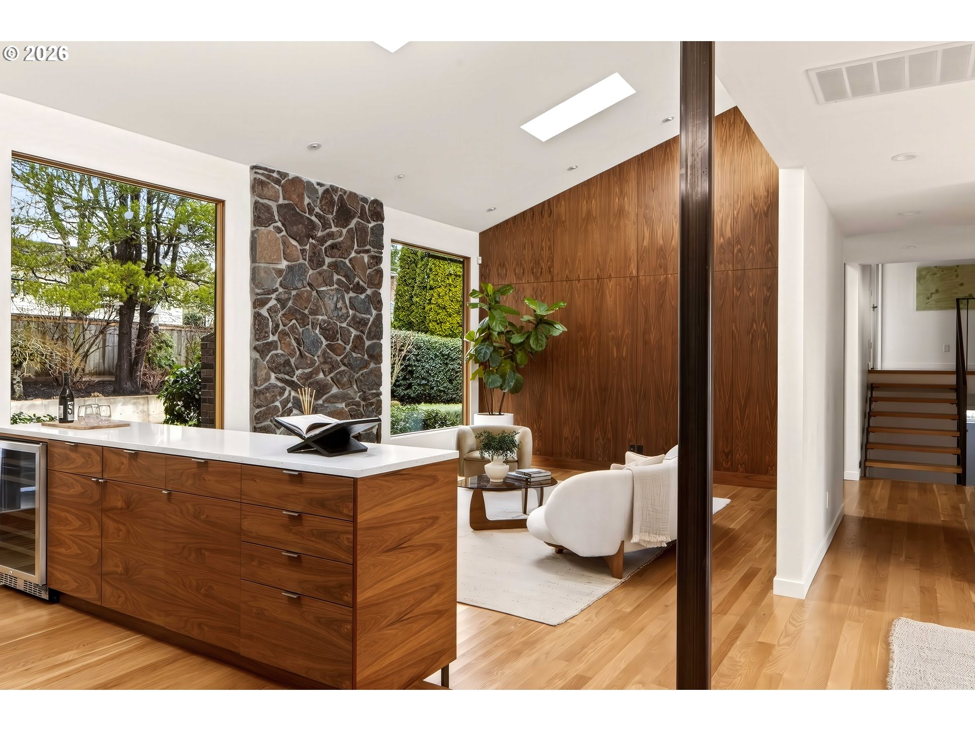 (503) 893-88741971 Montclair Modern • As modernism evolved into a new era, this 1971 Montclair split-level took form. Decades later, in 2015, it was taken to the studs and thoughtfully reimagined by Risa Boyer of Risa Boyer Architecture, an award-winning firm recognized by the AIA and featured in Dwell, Gray, Portland Monthly, and The Oregonian for its refined, yet pragmatic modernism. In collaboration with its owners, a compartmentalized time capsule was transformed into a 3,635-square-foot timeless modern domain—rich in detail and connected to its Northwest-inspired landscape. The transformation was architectural and emotional, reshaping how the home feels and supports daily life. A raised roofline created a great room at the center of the main level, where vaulted ceilings, skylights, clerestories, and generous dual-paned windows usher daylight in. Walls dissolved, sightlines extended, and a custom accordion door opens the great room to the patio and gardens beyond, dissolving the boundary between indoors and out. White oak floors, book-matched walnut cabinetry, and a paneled feature wall add both warmth and drama. A floating solid-oak stair with steel railings reads as sculpture, while original fireplaces nod to the home’s midcentury roots. The new plan, has five bedrooms—including a bright main-level primary ensuite with spa-like bath that enables aging in place —3.5 additional baths, and a lower level with den, flex room, and family room with pool table opening to a patio with saltwater hot tub. The chef’s kitchen, with double Wolf ovens, Sub-Zero fridge, and Asko dishwasher, brings joy to daily rituals, while multi-zone heating & cooling, an EV charger, and sustainable design bring performance in sync with beauty. Set on a .32-acre lot in Montclair, an unincorporated neighborhood of Raleigh Hills in Washington County, this is a home where architecture listens—shaped by light, crafted with intention, and designed for modern living that feels elevated and enduring.