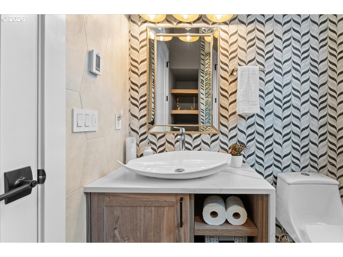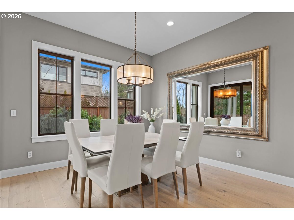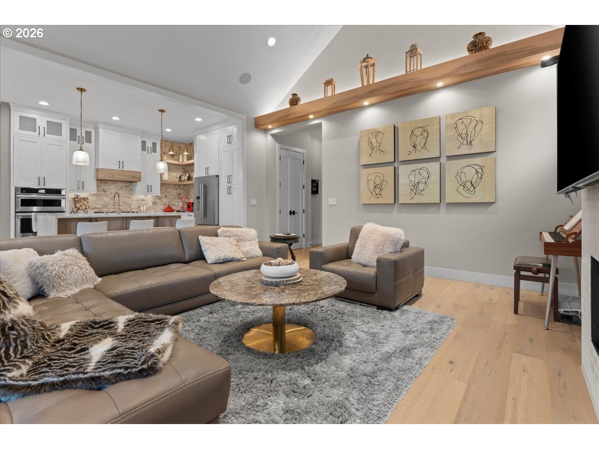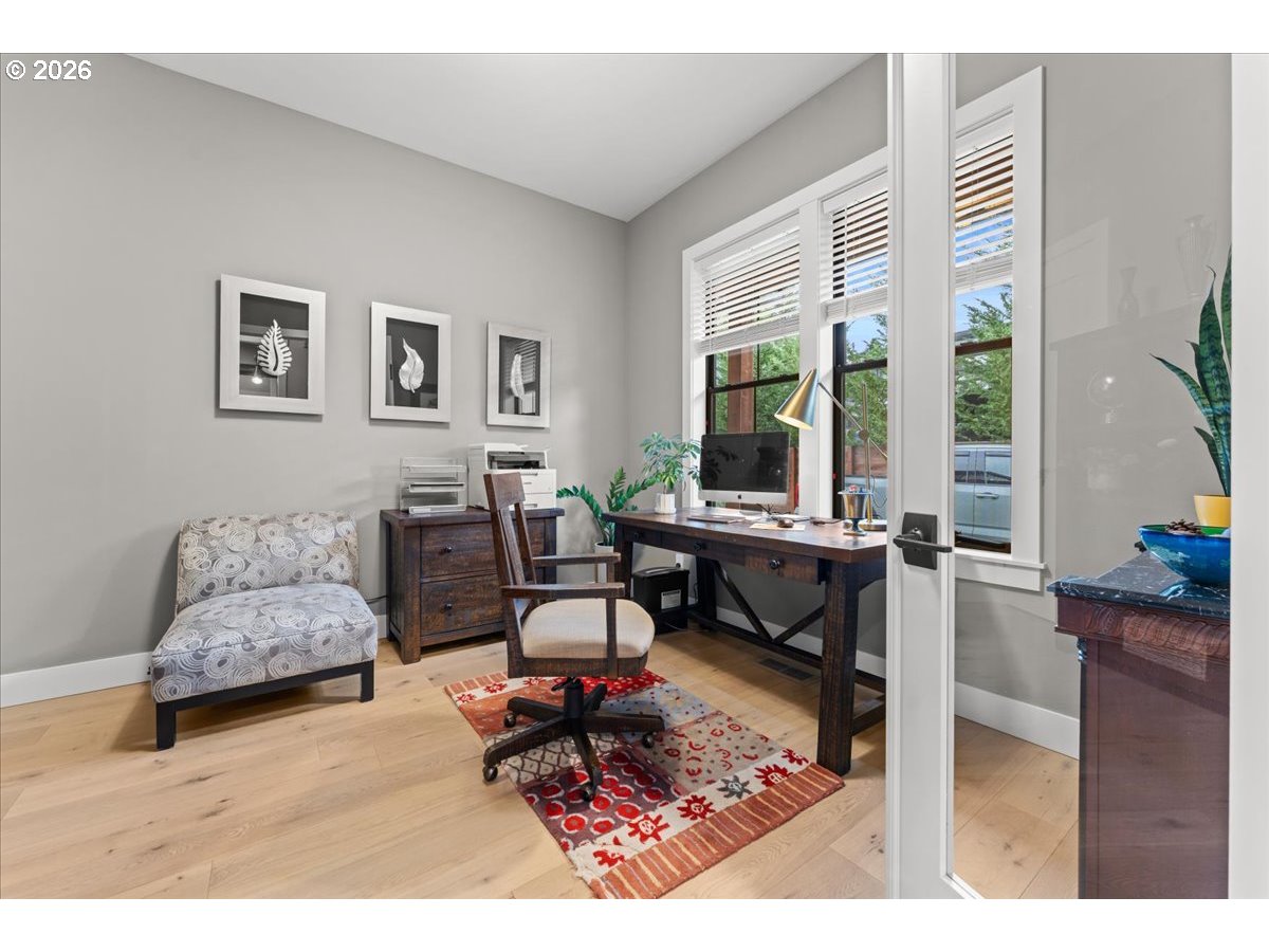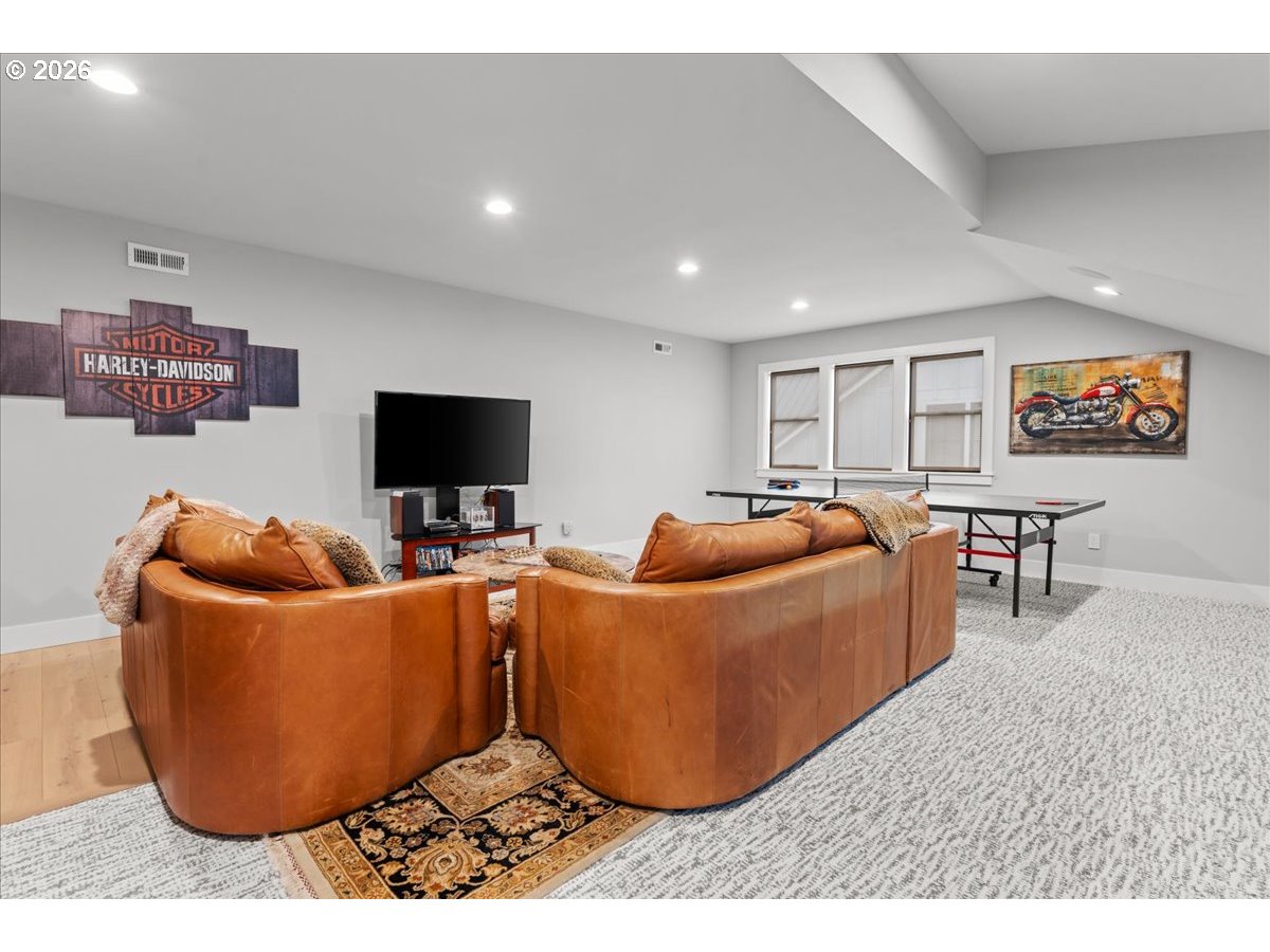 Welcome to this peaceful setting around Fanno Creek Trail, Garden Home Park, Garden Home Recreation Center, walking trails, local shops just minutes away from Washington Square Mall. Built with Earth Advantage/Energy Star standards for efficiency, durability and comfort. Main-level living with three bedrooms and two baths on the main, plus an upstairs multi use entertainment room with a built-in wet bar. Private fenced yard and large covered porch with vaulted ceiling, fan and BBQ hookup. South facing garden area with maturing apple and cherry trees, generous size shed for all your garden gear and generous RV parking for your favorite adventure vehicle complete this charming, light-filled home.Featuring high and vaulted ceilings, 8' doors, Fiberglass Marvin windows, quartz waterfall countertops throughout, heated tile floors in primary and under-the cabinet lighting in both bathrooms. Easy reach to major freeways, major employers, and everyday amenities.Your exciting next chapter starts here!
