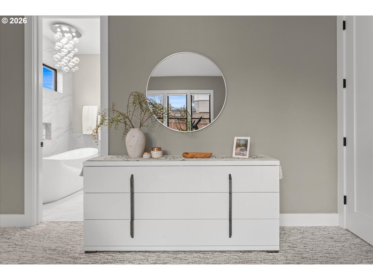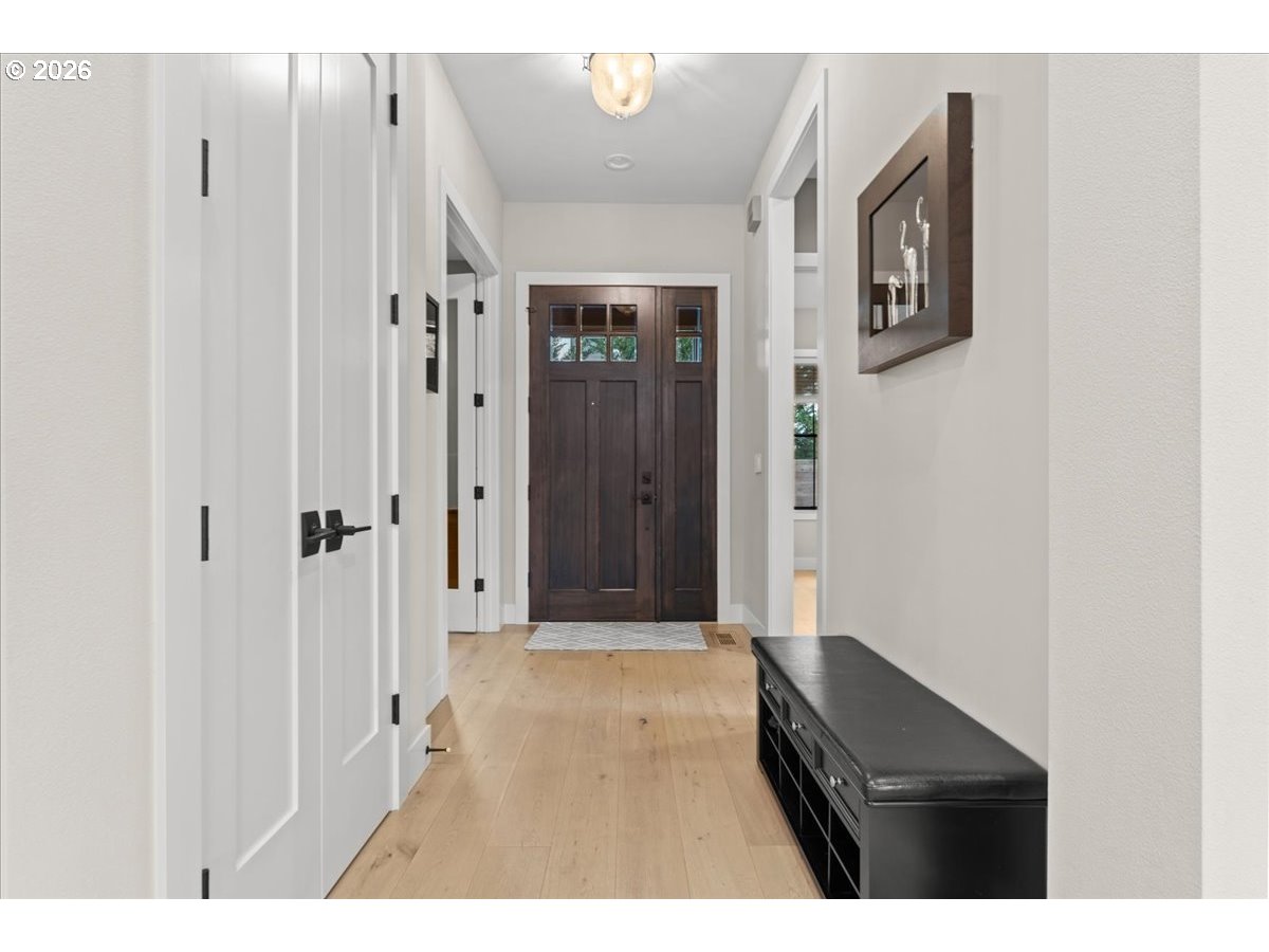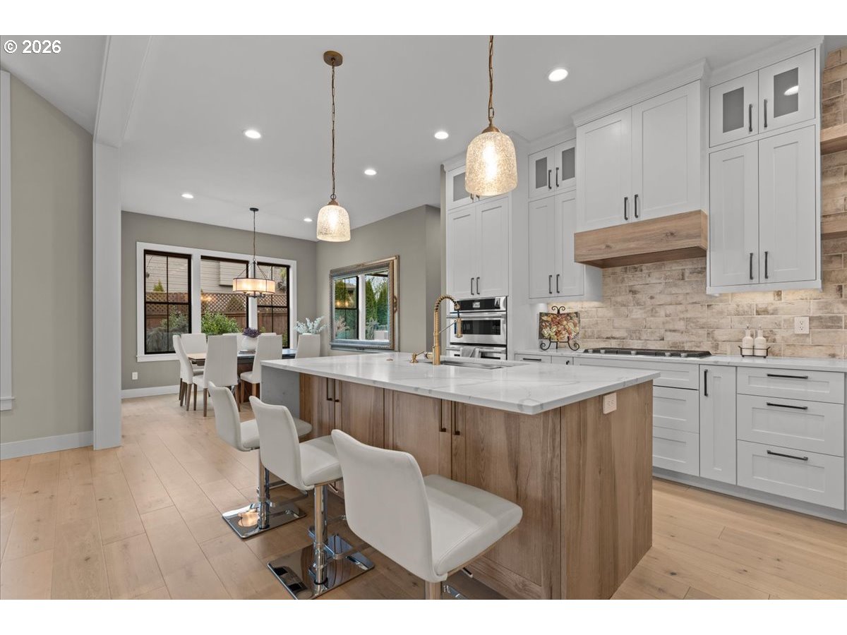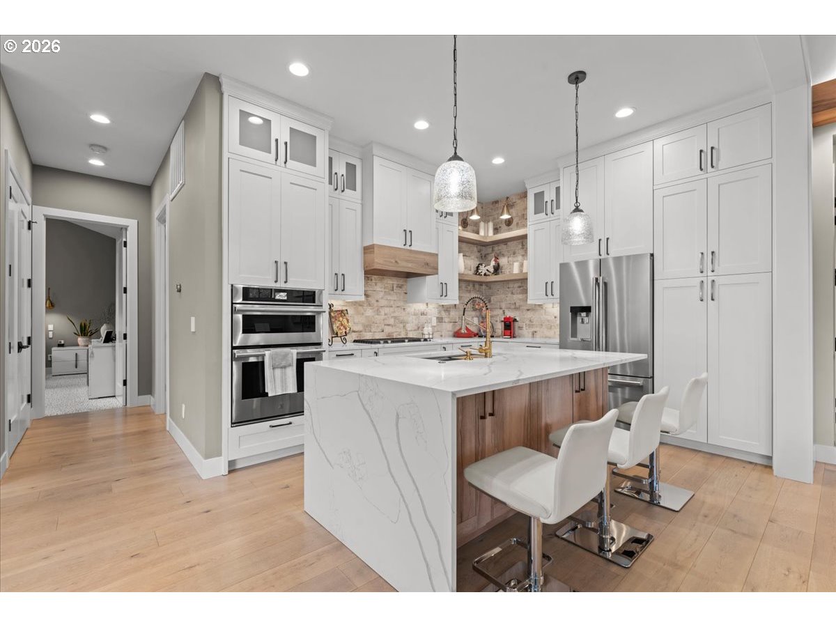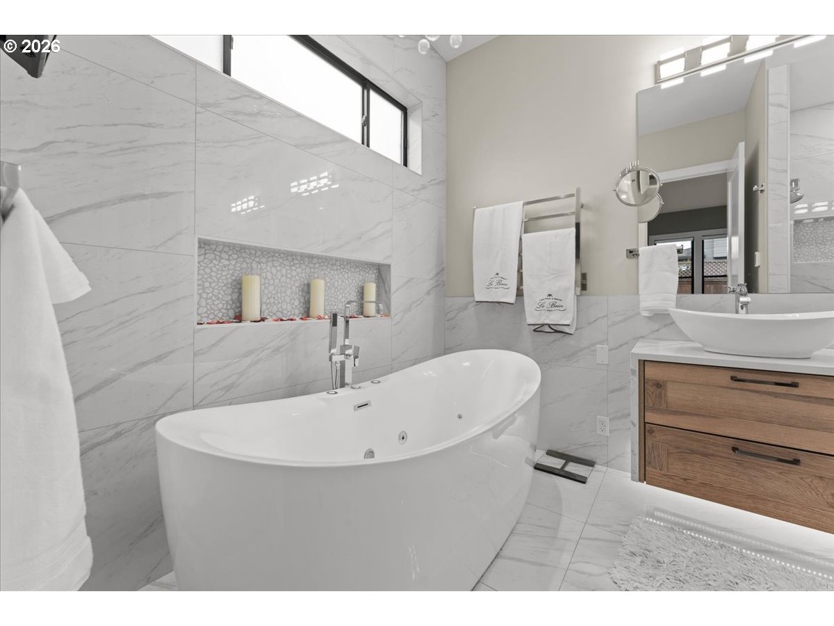 Welcome to this peaceful setting around Fanno Creek Trail, Garden Home Park, Garden Home Recreation Center, walking trails, local shops just minutes away from Washington Square Mall. Built with Earth Advantage/Energy Star standards for efficiency, durability and comfort. Main-level living with three bedrooms and two baths on the main, plus an upstairs multi use entertainment room with a built-in wet bar. Private fenced yard and large covered porch with vaulted ceiling, fan and BBQ hookup. South facing garden area with maturing apple and cherry trees, generous size shed for all your garden gear and generous RV parking for your favorite adventure vehicle complete this charming, light-filled home.Featuring high and vaulted ceilings, 8' doors, Fiberglass Marvin windows, quartz waterfall countertops throughout, heated tile floors in primary and under-the cabinet lighting in both bathrooms. Easy reach to major freeways, major employers, and everyday amenities.Your exciting next chapter starts here!