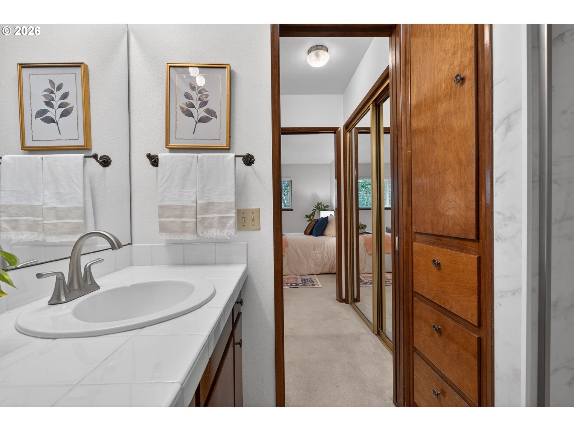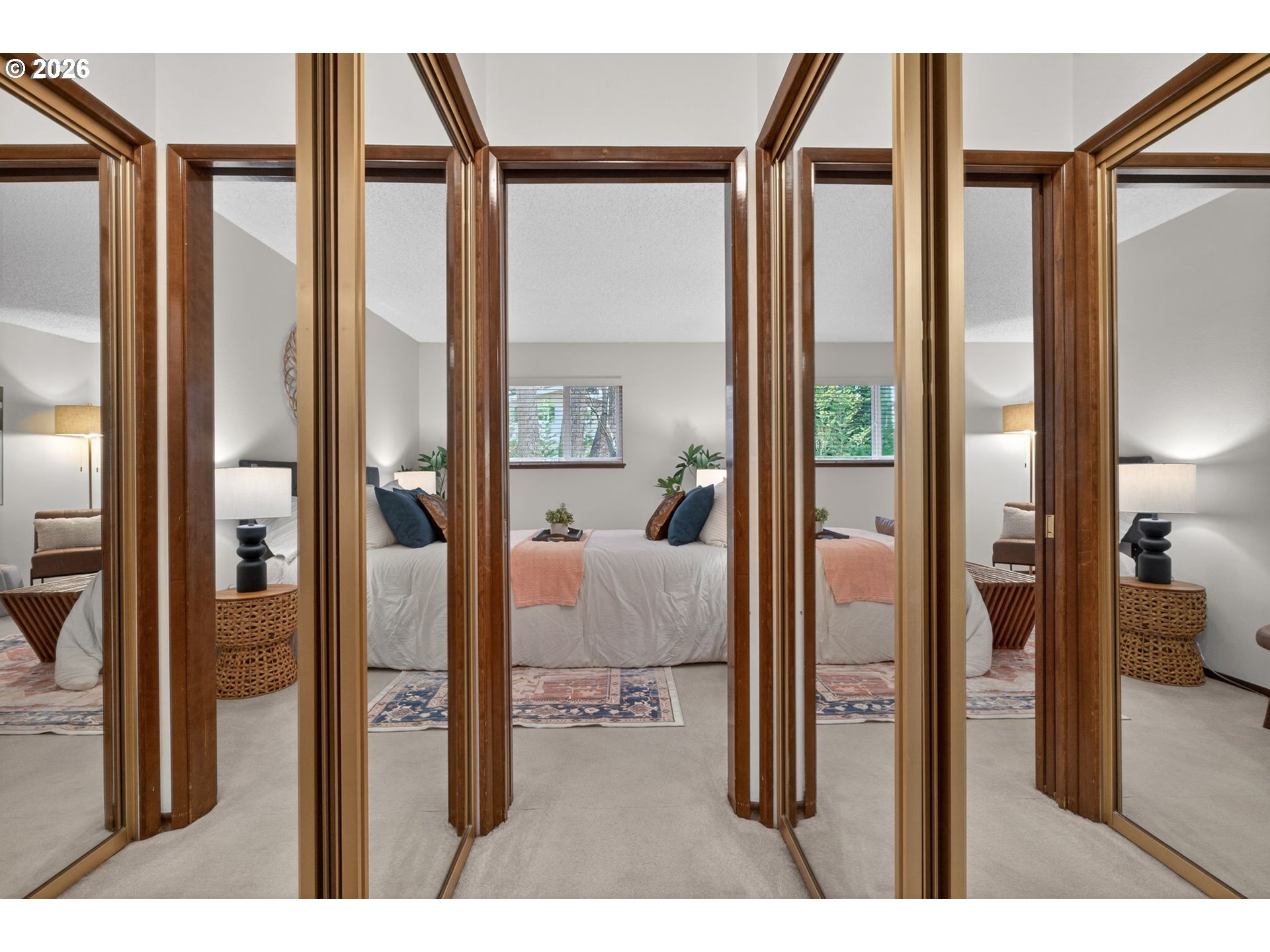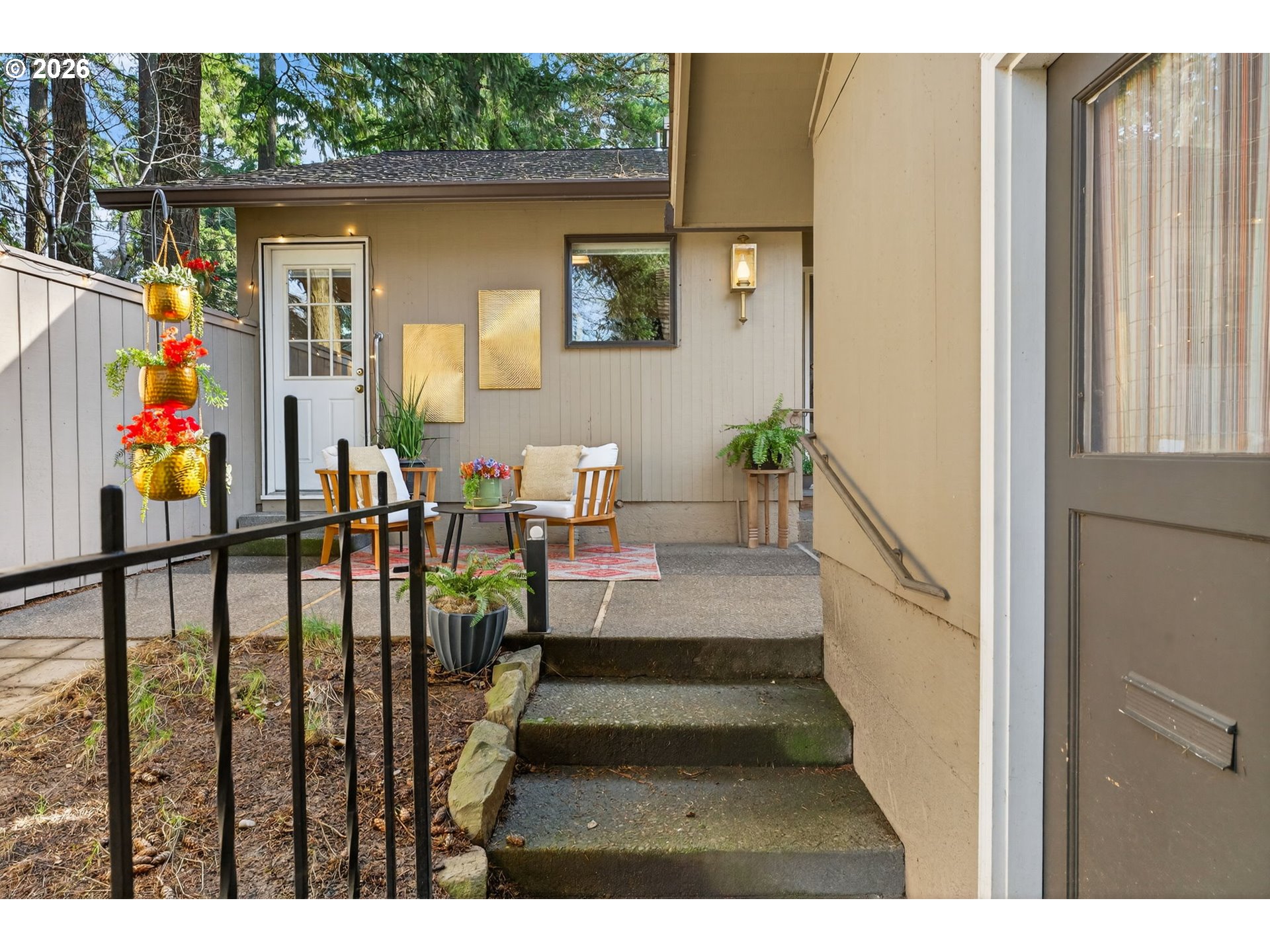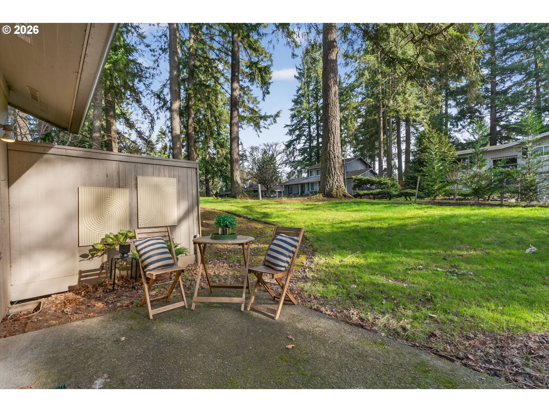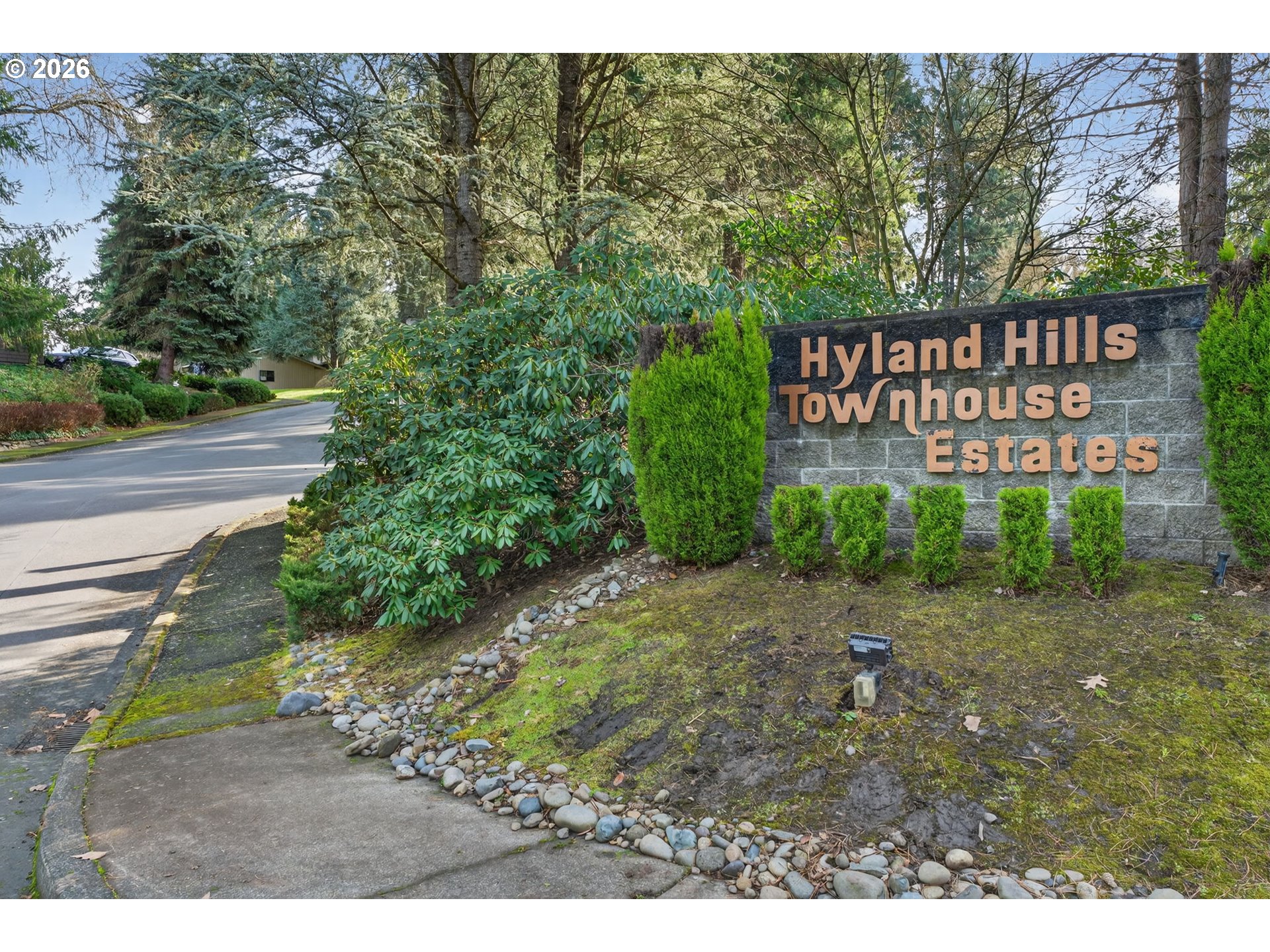 Open Sunday 2/22, 11a-2p! Enjoy low-maintenance, one-level living in Beaverton’s coveted Hyland Hills Townhome Estates. This delightful end unit is tucked among park-like grounds, instantly taking you from daily bustle to peaceful retreat. Enter through a private, gated courtyard that sets a welcoming tone before arriving at the carved wooden front door with original textured-glass sidelights- one of many vintage details that give this home its character. The entry introduces a smart, spacious floor plan that balances openness with definition, allowing each space to naturally connect while remaining distinct. The well-equipped kitchen offers ample storage, a pantry, a laundry closet, and space for an eating nook. The dedicated dining room includes a wet bar that's perfect for entertaining, a nightly unwind, or setting up a dedicated coffee station. Flowing from there, the living room is anchored by a cozy gas fireplace and a wall of windows with a double-sliding door to the back patio and green space. Down the hall, two generous bedrooms are thoughtfully separated for privacy. The primary suite features a dual walk-thru closet area and an ensuite with a newer walk-in shower, while a full hall bathroom serves guests and the large secondary bedroom that's perfect for guest space or a home office. Across the courtyard, the oversized two-car garage adds exceptional versatility with a built-in workstation and abundant storage. Hyland Hills residents enjoy a community pool, athletic court, and private clubhouse, along with tree-lined walking paths throughout the neighborhood. Conveniently located minutes from Murrayhill, Nike, trails, parks, shops, restaurants, major commuter routes, and the nearby Hyland Woods Forest Park for outdoor escapes.