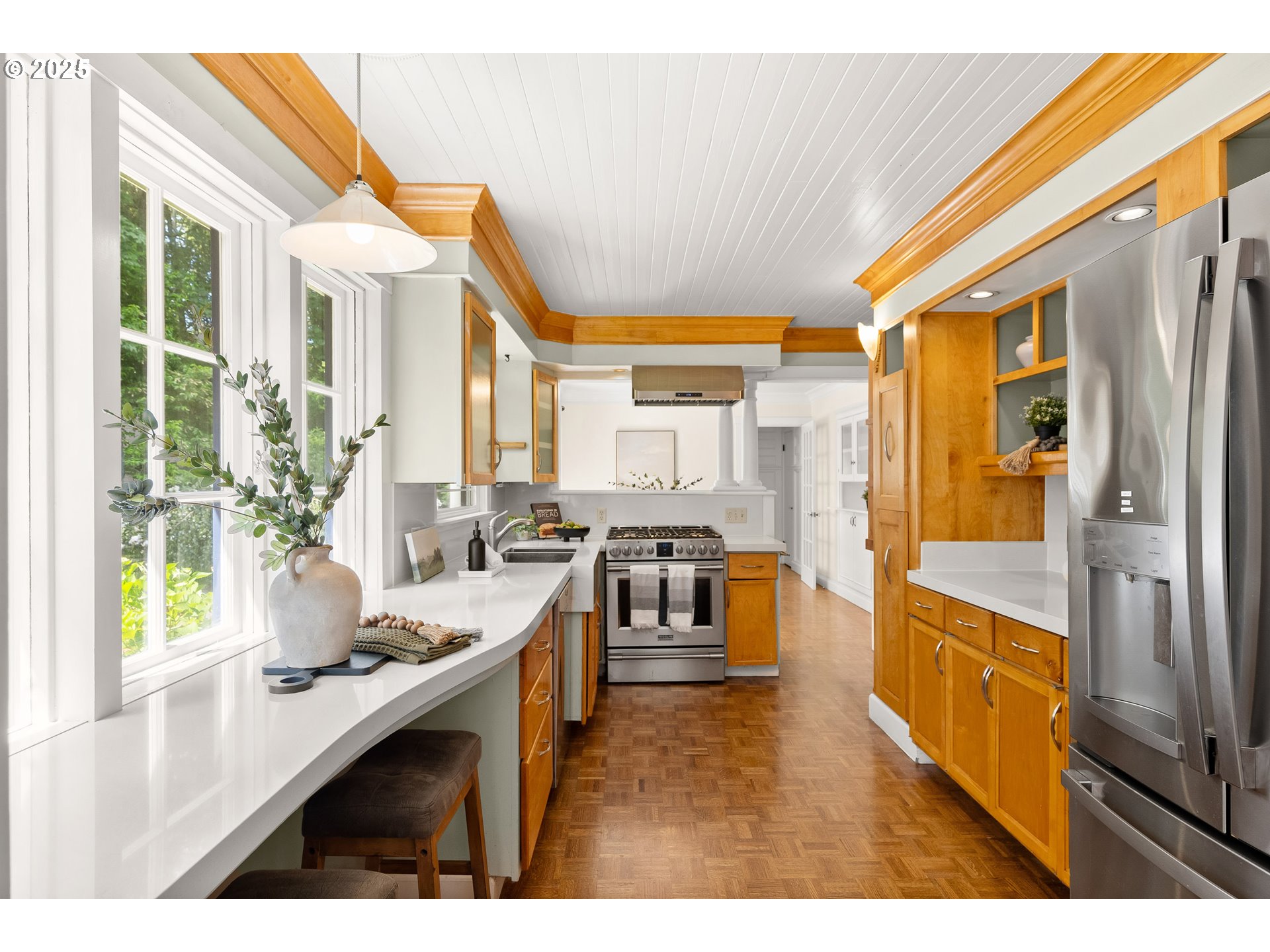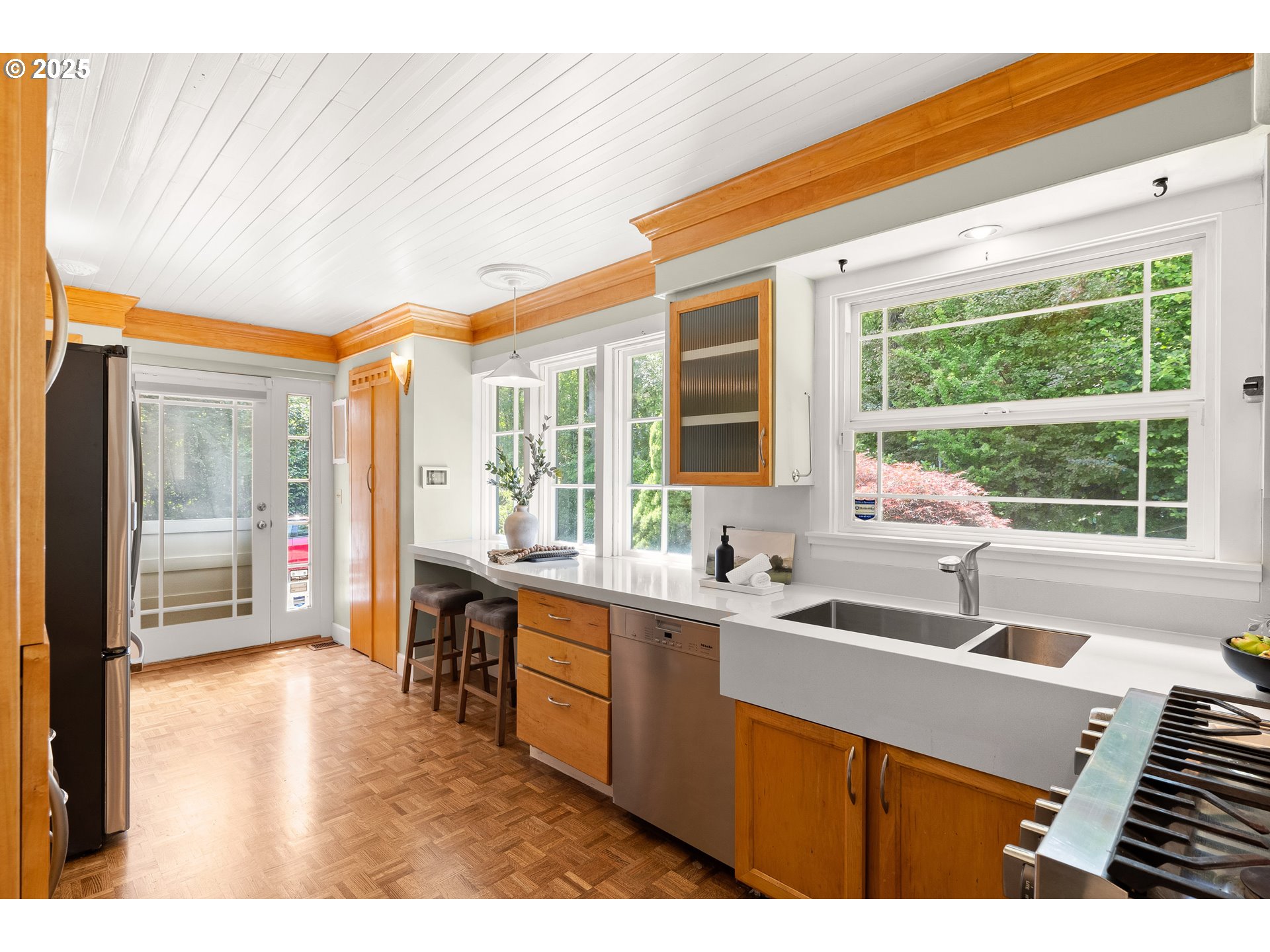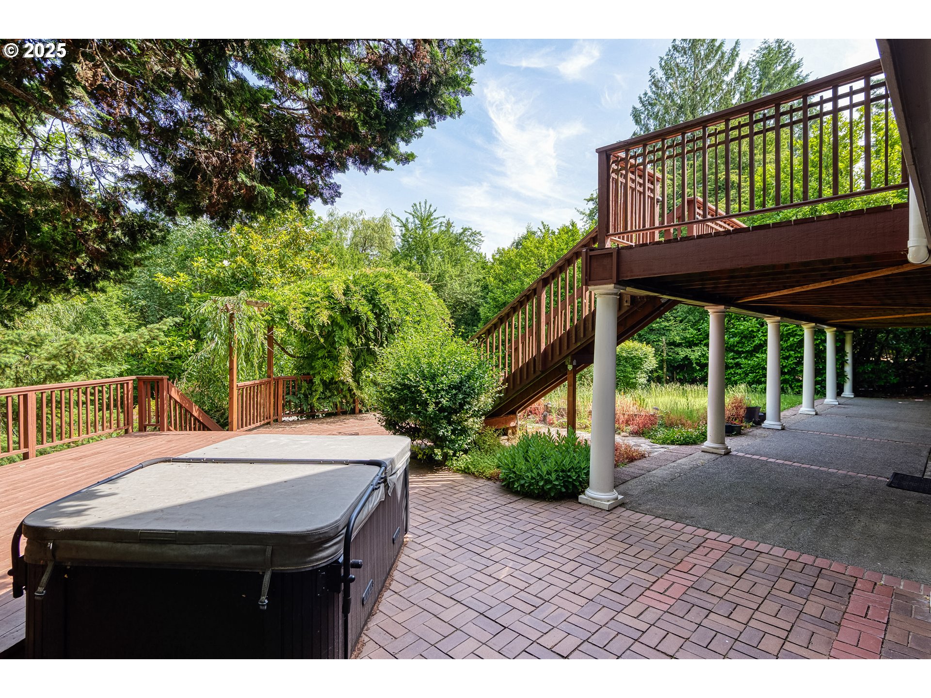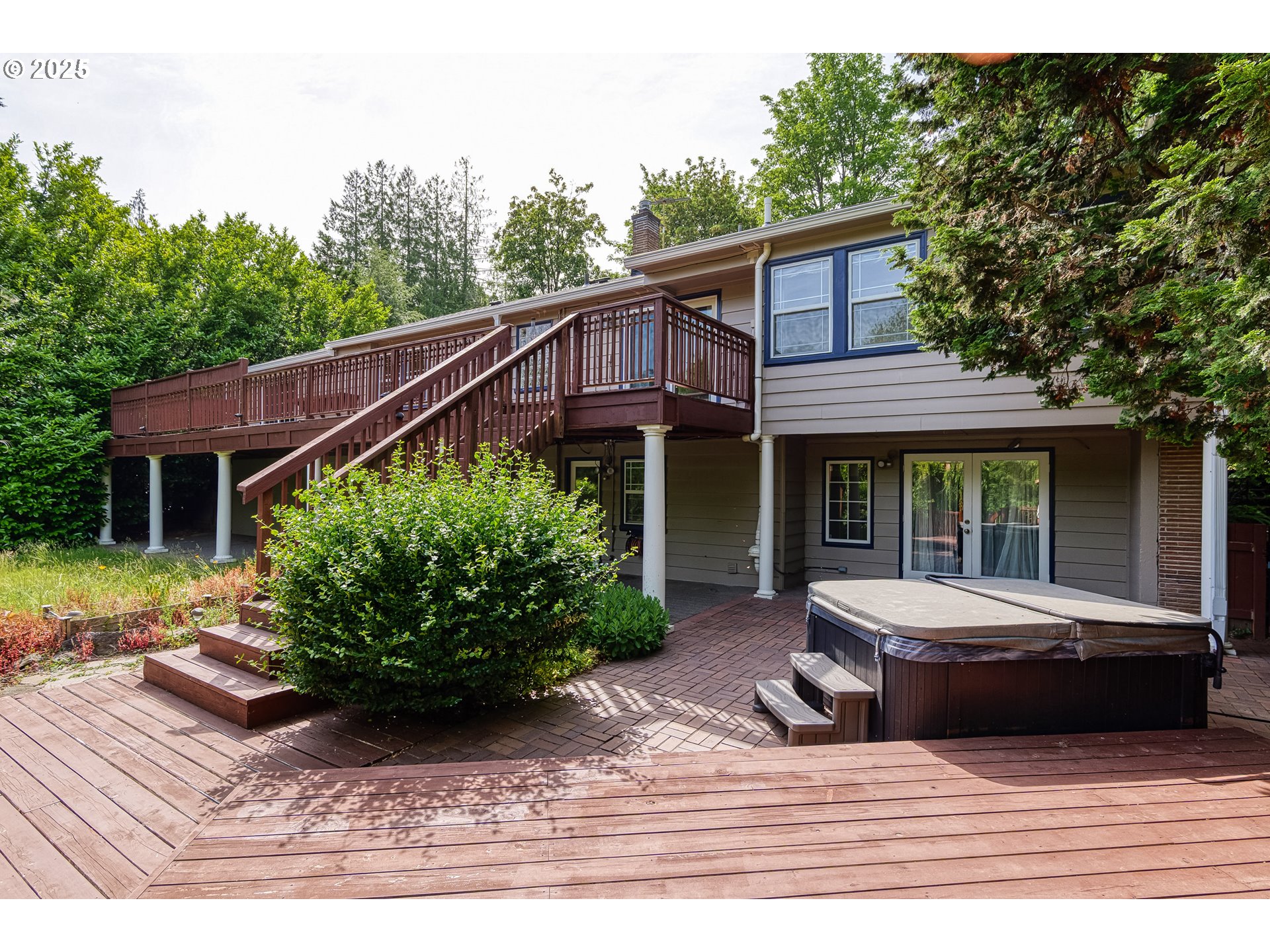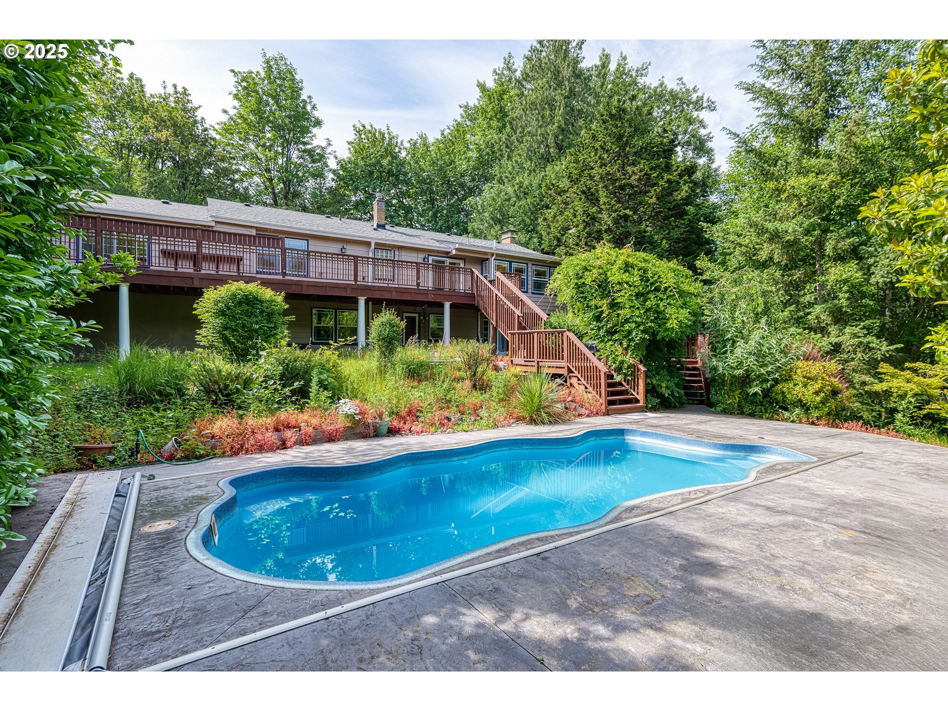 Romantic beauty loaded with character is ready for its next chapter! Enjoy sitting pool-side surrounded by lush vegetation that naturally spills over the property in layers, and spend time with family and friends relaxing in the hot tub or sharing a meal al fresco on the multi-level deck. This home is full of charm, featuring hardwood floors, wainscotting, coffered ceilings and extensive crown molding. The kitchen brings the outdoors in with large windows, quartz counter-tops and earthy sage walls with natural wood cabinets. Take your pick of upstairs or downstairs for your primary suite with full bathrooms on both levels. Lower primary suite offers a luxurious walk-in wardrobe, charming fireplace, and beautiful tile shower. French doors lead to your entertaining haven with a patio overlooking the heated-pool for year-round enjoyment. Centrally located with only one neighbor set on this private drive, this gorgeous SW gem has a 1/2 acre lot just 3 miles from downtown. Incredible school district- have it all in Washington County and find yourself nestled in nature with gorgeous views just a step outside all the city has to offer!