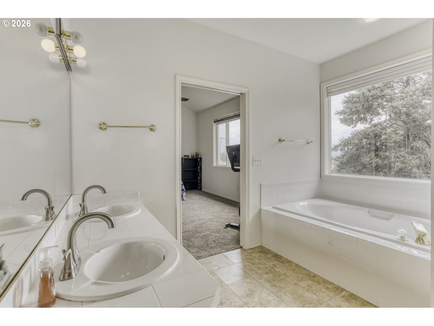 Perched atop Cooper Mountain and backing onto the Northridge Natural Area green space, this home offers sweeping valley views, soaring vaulted ceilings, and an effortless blend of warmth and sophistication. The kitchen impresses with natural light, granite countertops, and solid wood cabinetry, while a French-door office with custom built-in shelves and ideal office space. The crowning jewel is the main-level primary suite — vaulted, private, and serene — with a walk-in closet and a spa-like ensuite soaker tub framed by breathtaking views. Two additional bedrooms, a spacious lower-level family room, and a full bath complete this rare, move-in-ready retreat.