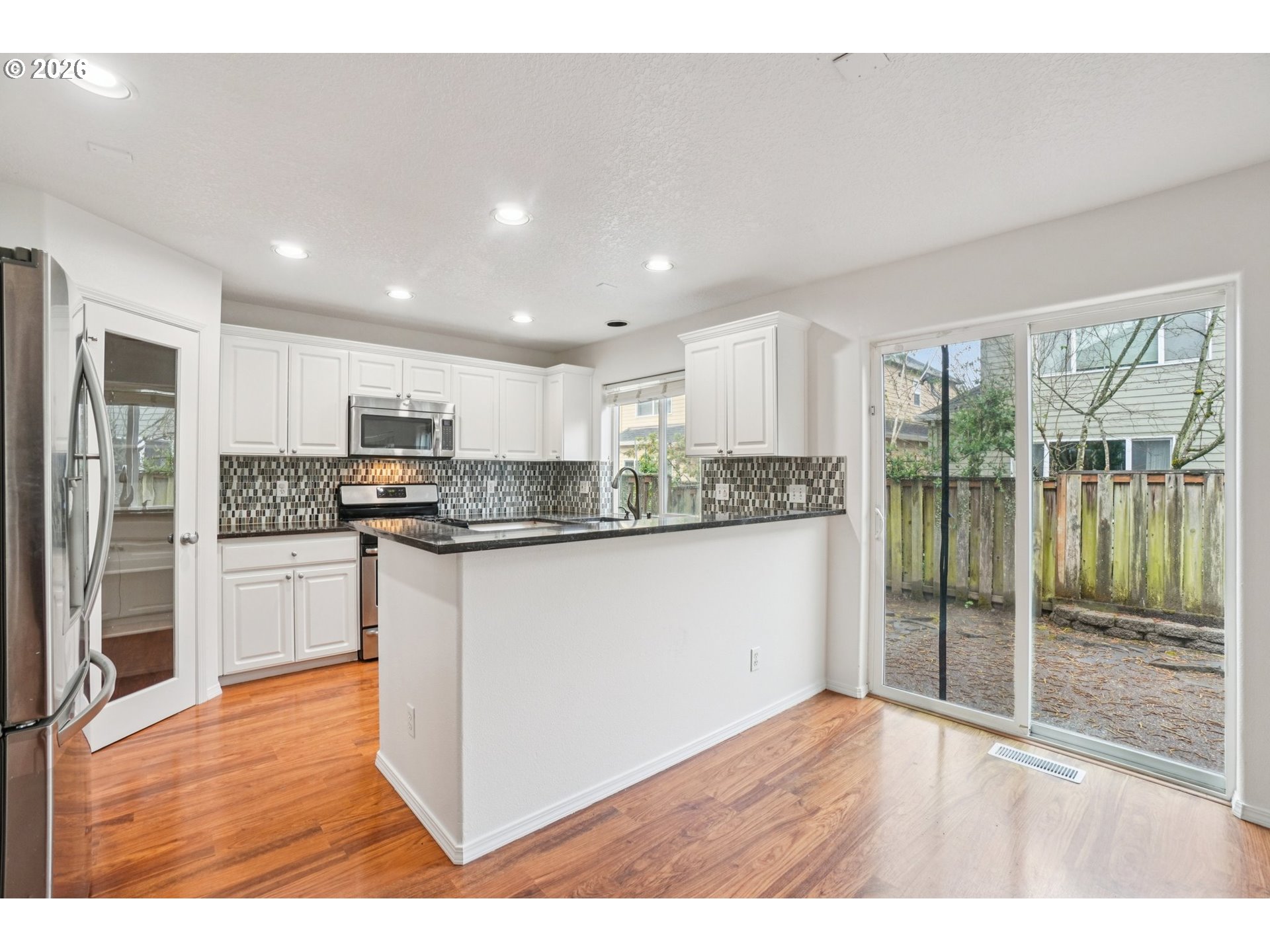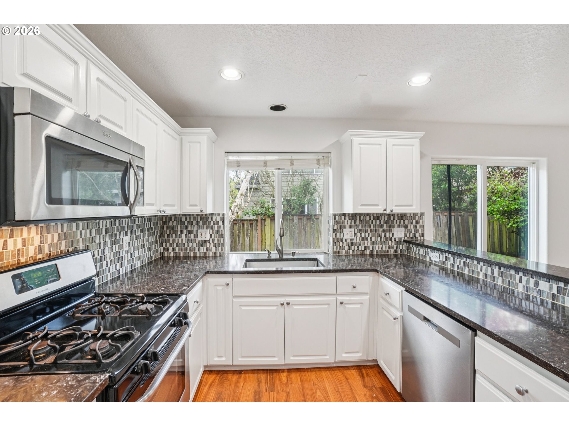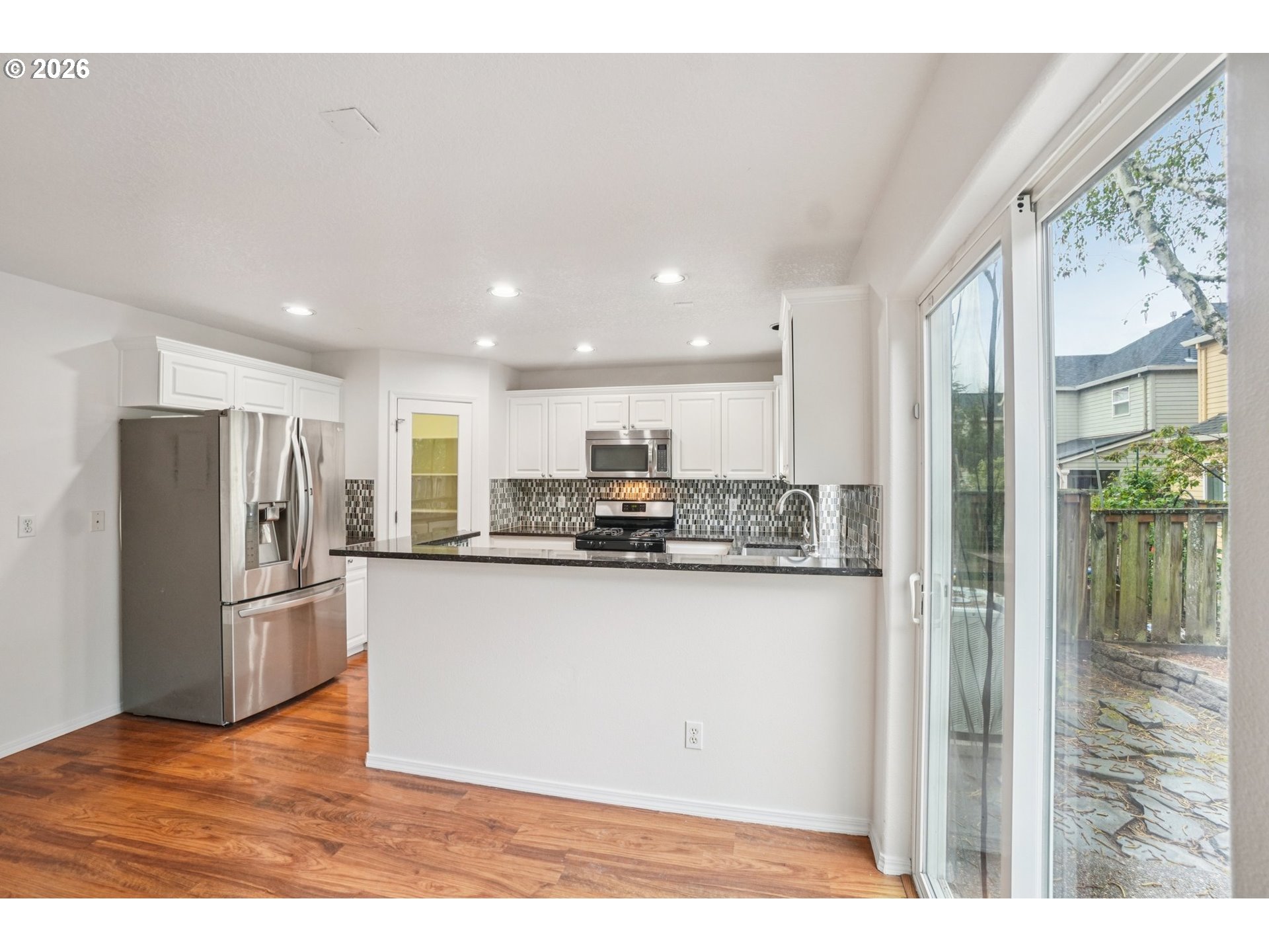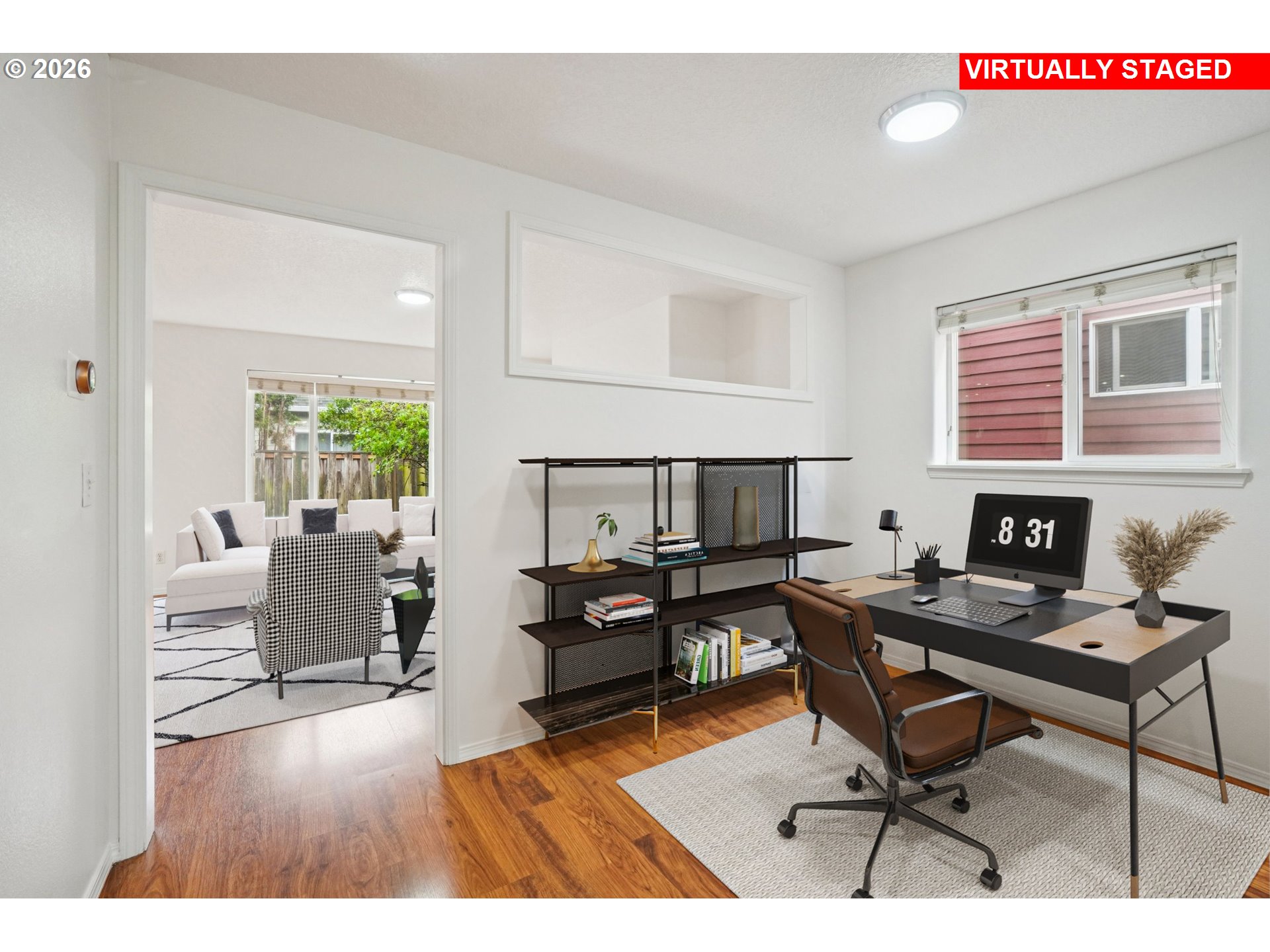 Welcome to Orenco Gardens living at its best—where community, convenience, and comfort come together. This beautifully maintained 2-story home offers an inviting open-concept layout with a warm and functional great room featuring a cozy gas fireplace and a versatile main-level flex space—ideal for a home office, media room, or additional living area.The kitchen is thoughtfully designed with quartz countertops, stainless steel appliances, a built-in microwave, gas range, pantry, and ample cabinetry—perfect for both everyday living and entertaining.Upstairs, you’ll find generously sized bedrooms, including a spacious primary suite with a walk-in closet and private bath. Fresh interior paint throughout creates a crisp, move-in-ready feel, while laminate flooring and thoughtful finishes add durability and style.Enjoy outdoor living with a charming front porch, fenced yard, and patio space—perfect for relaxing or hosting. Recent updates include a newer roof and water heater (both approximately 2 years old), plus exterior paint completed within the last few years for added peace of mind.Located in the desirable Orenco Gardens community, residents enjoy access to parks, sport courts, and beautifully maintained common spaces. Just minutes from Orenco Station, shopping, dining, groceries, and the farmers market—with easy access to light rail for a seamless commute. Mortgage savings may be available to buyer of this listing. [Home Energy Score = 5. HES Report at https://rpt.greenbuildingregistry.com/hes/OR10246723]