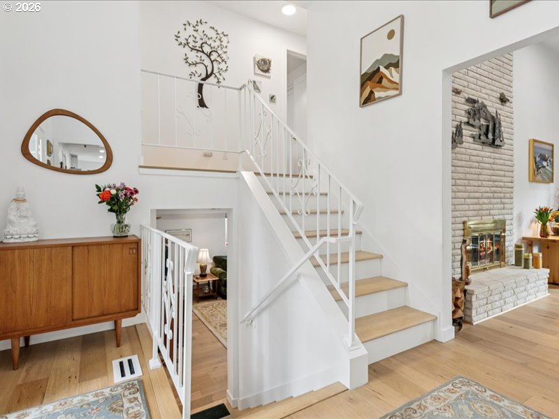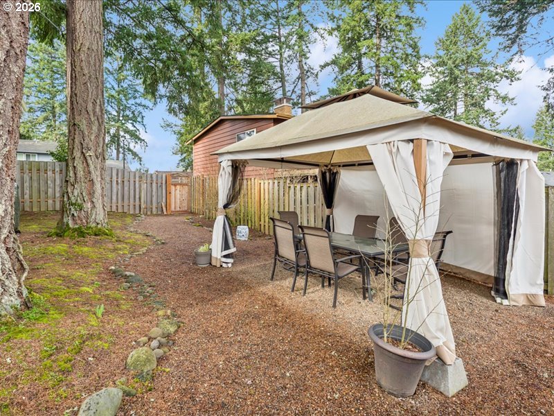 Live in the heart of Highland Hills, close to parks, walking trails, tall trees, Nike, great restaurants, and just 20 minutes to Portland. This Midcentury Modern home blends classic style with thoughtful 2023 updates, making it move-in ready.Inside, you’ll find white oak floors, vaulted ceilings with exposed beams, and large double-pane windows that fill the home with natural light. The updated kitchen features new cabinets, countertops, designer tile, and all new appliances. Three refreshed bathrooms include West Elm vanities, tile floors, and dual-flush toilets.Major upgrades include a new roof, high-efficiency furnace, and air conditioning installed within the last year. Two fireplaces with custom midcentury brass and glass doors add warmth and character.Enjoy morning coffee in the private courtyard or host friends in the backyard with a patio and 10x12 gazebo. Solar uplighting adds a welcoming glow in the evening.A stylish, updated Midcentury Modern home in a prime location—ready for its next chapter