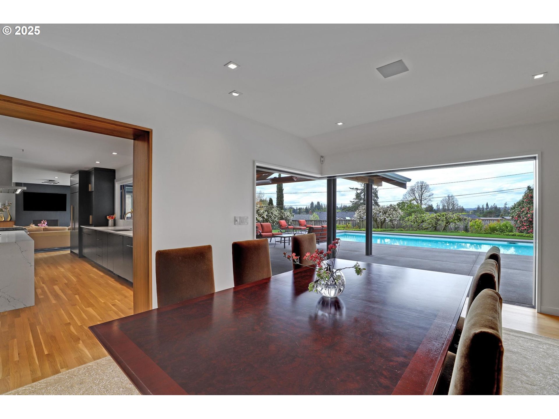 (503) 893-8874Perhaps the most stunning single-level home in the state, the Montclair Mid-Century is a modern reimagining of the good life, thoughtfully designed in collaboration with a noted architect, design firm, and landscape architect. Step through the substantial custom 8-foot modern wood front door and leave the world behind. Quality, space, and function define every detail.The primary suite is a true retreat, featuring vaulted ceilings, a meticulously designed walk-in closet with a place for everything, and a spa-like bath with quartz counters, a curbless shower, and a luxurious soaking tub. Indoor-outdoor living comes alive in the kitchen, where a cool, modern aesthetic meets exceptional craftsmanship—walnut and quartz countertops, an almost unbelievable 14-foot island, and a built-in champagne and beverage trough set the stage for effortless entertaining. Open the custom 8-foot accordion-style kitchen window and serve slushies directly to sunbathers outside.The dining room elevates the experience further with a 14-foot pocket door system by Oregon Company that disappears completely, opening the entire corner of the home to the outdoors. Situated on .73 acres, the grounds offer ample space for a resort-sized swimming pool and spa, surrounded by velvet concrete and anchored by a covered patio with exposed beams and custom metal columns. Four large infrared heaters extend the seasons, creating nearly 600 additional square feet of comfortable outdoor living space. Two outdoor gas fireplaces and a bocce ball court add to the sense of play and leisure.With five bedrooms, four full and two partial baths, and a fully finished lower level, this one-of-a-kind home offers room for everyone—and everything—without compromise.