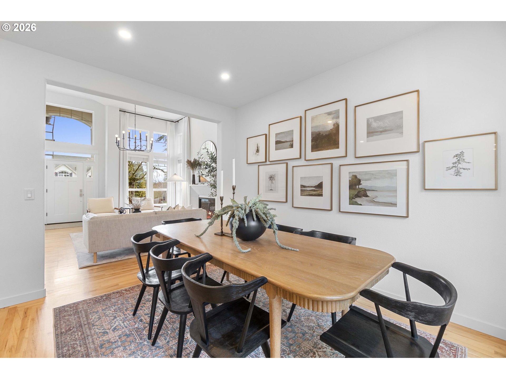Beautifully updated Beaverton home featuring extensive renovations and thoughtful upgrades. The 2021 main-level remodel created a stunning open-concept kitchen, dining, and family room space with custom cabinetry, quartz countertops, farmhouse sink, and premium KitchenAid appliances including built-in refrigerator, downdraft range, dishwasher, microwave, plus a Danby wine fridge. Custom breakfast nook seating adds charm and function. Family room with modern built-ins and slider leading out to backyard patio. Major system upgrades include furnace and A/C (2021), water heater (2021), ductwork improvements, added attic insulation, and 2 gas fireplace inserts. Roof, skylight, gutters, and exterior paint were completed in 2022. Interior updates throughout include refinished floors on the main, newer carpet, remodeled half bath and laundry room, updated lighting with LED fixtures, newer baseboards and trim, interior painting (2021) and all new Kohler toilets. Primary suite features newer cherry hardwood flooring and refreshed bath/closet paint. Exterior upgrades include permanent Trimlight decorative lighting and newer fencing. Garage door has a new spring system with exterior entry code and EV charger. Close by shopping, restaurants and more.