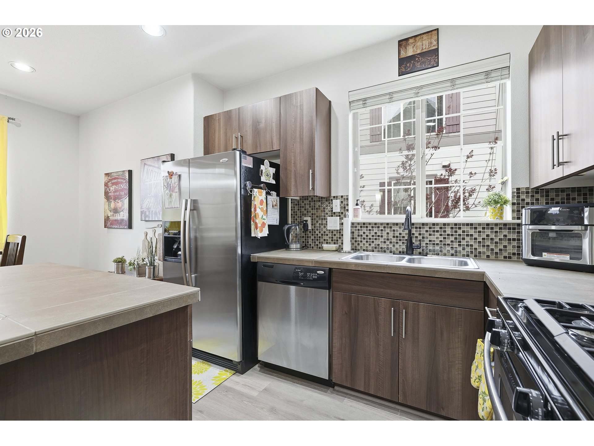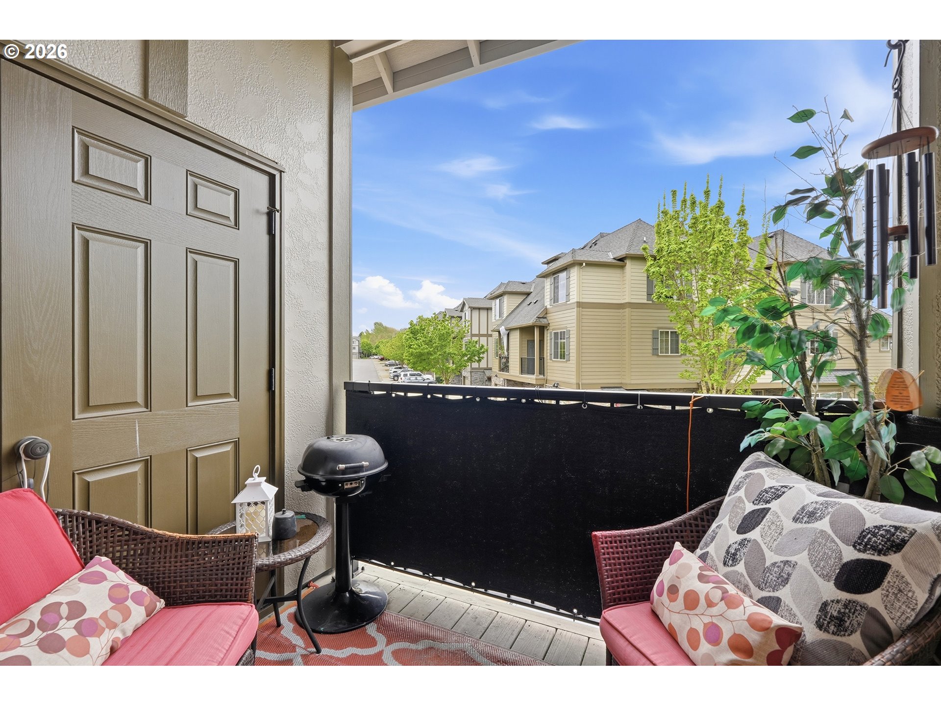 Meticulously maintained and tastefully updated condo located in one of West Hillsboro's most sought-after communities, Arbor Pass. A 2-bedroom, 2.1 bath, and 1227 square foot unit that is sure to check all the boxes. Great-room style main level with luxury plank vinyl flooring and light & bright color schemes all around. Kitchen area complete with gas cooking, stainless appliances, island with eating bar, built in microwave, and tile counters/backsplash opens seamlessly to well-lit dining area and living room with slider access to covered private balcony. Upper-level primary suite with vaulted ceilings, walk-in closet, tile counters & backsplash, and shower/tub combo. Second bedroom suite with vaulted ceilings and its own attached bathroom. Upper-level laundry means no more lugging loads up and down the stairs. This condo is AC ready, but the included window air conditioning units have kept things cool even in the warmer months. One car attached garage and driveway provide parking or storage options. Plus a one-year American Home Shield Warranty included with acceptable offer! The Arbor Pass homeowner's association supplies a lengthy list of amenities to its owners. Outdoor swimming pool, gym, basketball court, clubhouse, play area, internet, water, sewer, & trash are all included within the monthly HOA dues. Tucked back within the community, and just a stone's throw from the Quatama park and ride MAX station, this condo is ideally situated for anyone looking to stay connected to the local lifestyle. Minutes to Orenco Station Town Center, Streets of Tanasbourne, countless restaurants & grocery options, the brand-new Hillsboro Hops stadium, and just a MAX ride away from everything Portland has to offer.