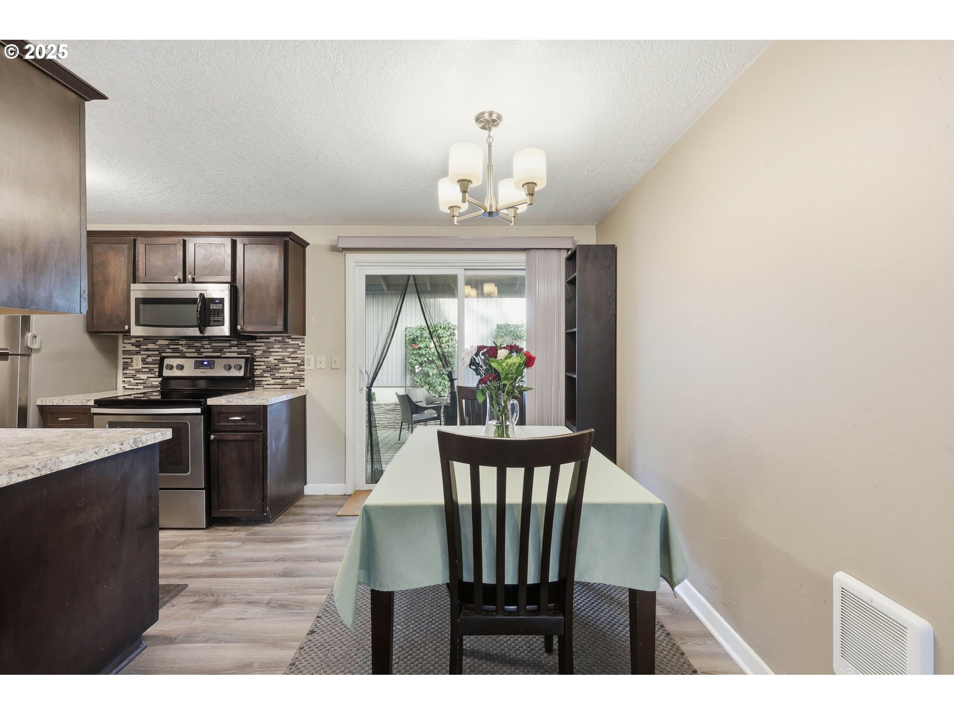 Desirable 3-bedroom, 2-bath condo blends comfort, natural beauty, and everyday convenience. One-level end-unit. Laminate flooring and a cozy living room with a wood-burning fireplace, perfect for relaxing evenings. The kitchen and dining area enjoy peaceful views of your unique back patio. Washer and dryer hookups in unit. A detached single-car garage provides secure parking and extra storage. The Fanno Creek Trail is just steps from your door. Centrally located near Pacific Highway, Hwy 217, and I-5, you’re minutes from Washington Square, Bridgeport Village, and nearby shopping and dining options. HOA covers: exterior maintenance, commons, internet, sewer, trash, water, and management.