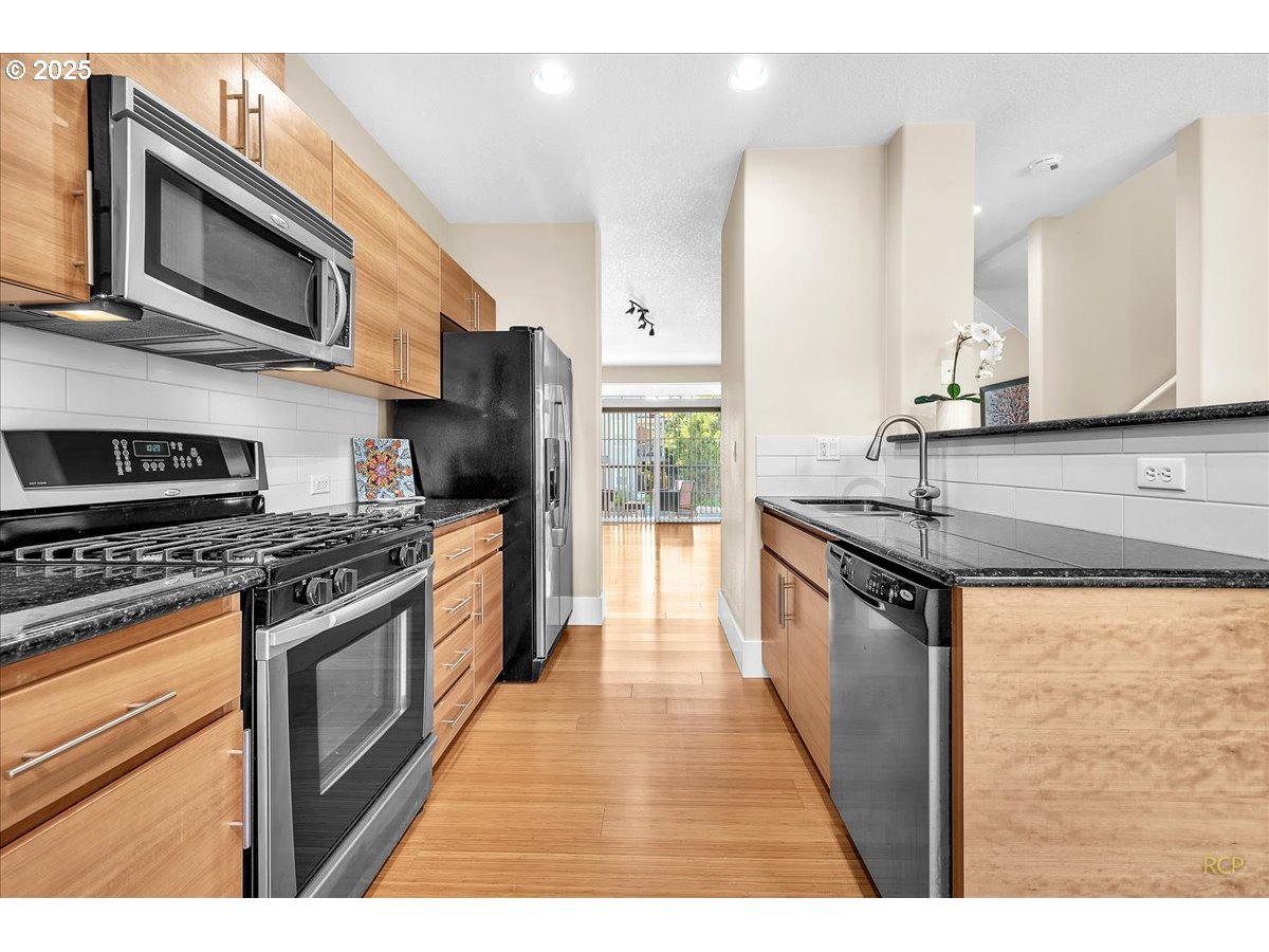 Welcome to Timberland Reserve. An exceptional condo community in the heart of Cedar Mill. This end-unit townhome with 1,426 square feet of living space in 3 bedrooms, 2.5-baths, offers a modern lifestyle with thoughtful design touches throughout. Bamboo flooring and bamboo cabinetry on the main level creates a warm and contemporary aesthetic. The open-concept layout flows seamlessly, leading to not one, but two private balconies—ideal for morning coffee or evening relaxation. All appliances are included. The oversized 2-car garage provides ample space for vehicles, additional storage, or your own private workout area, a rare find in today’s condos. As an end unit, enjoy added privacy and natural light throughout the home. Situated in close proximity to Timberland Center and Cedar Mill, you'll have easy access to shopping, dining, and entertainment options, making this location as convenient as it is desirable. Don't miss the opportunity to make this wonderful home your new address.