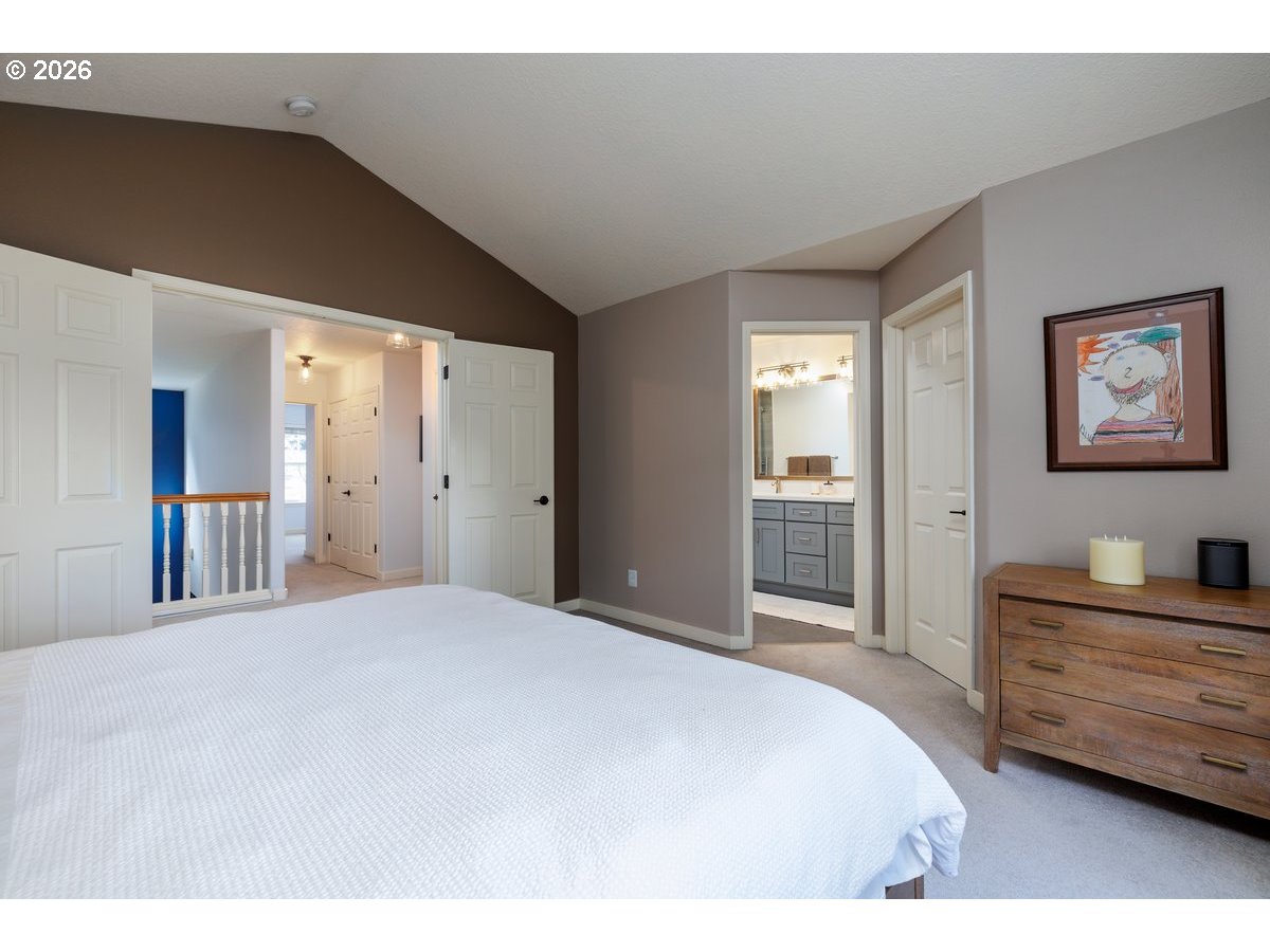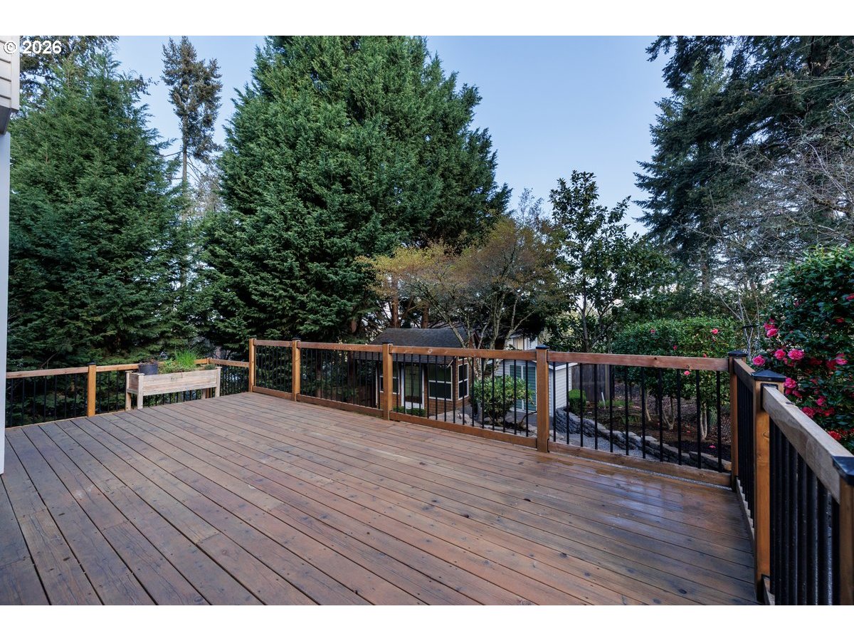 Beautifully updated home in a tranquil setting next to Jenkins Estate. High ceilings, abundant natural light, and an open kitchen–family room layout create an inviting main level, now enhanced with a remodeled kitchen featuring new counters, backsplash, repainted cabinets, and under-cabinet lighting. New flooring downstairs, updated gas fireplace surround, refreshed carpet upstairs, and remodeled bathrooms throughout. Enjoy an expansive deck overlooking a lush, fully fenced backyard with mature landscaping, garden paths, and a large powered studio — ideal for hobbies, storage, or workout space. Refrigerator, washer, and dryer included. Easy access to Nike, Intel, parks, and trails. Backs to greenspace for added privacy.