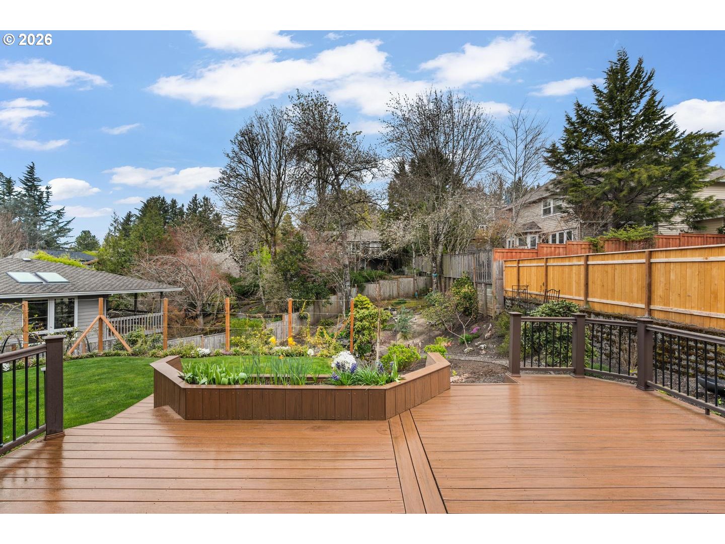 Deck, Fenced, Garden, Patio, RaisedBeds, Sprinkler, ToolShed, Yard