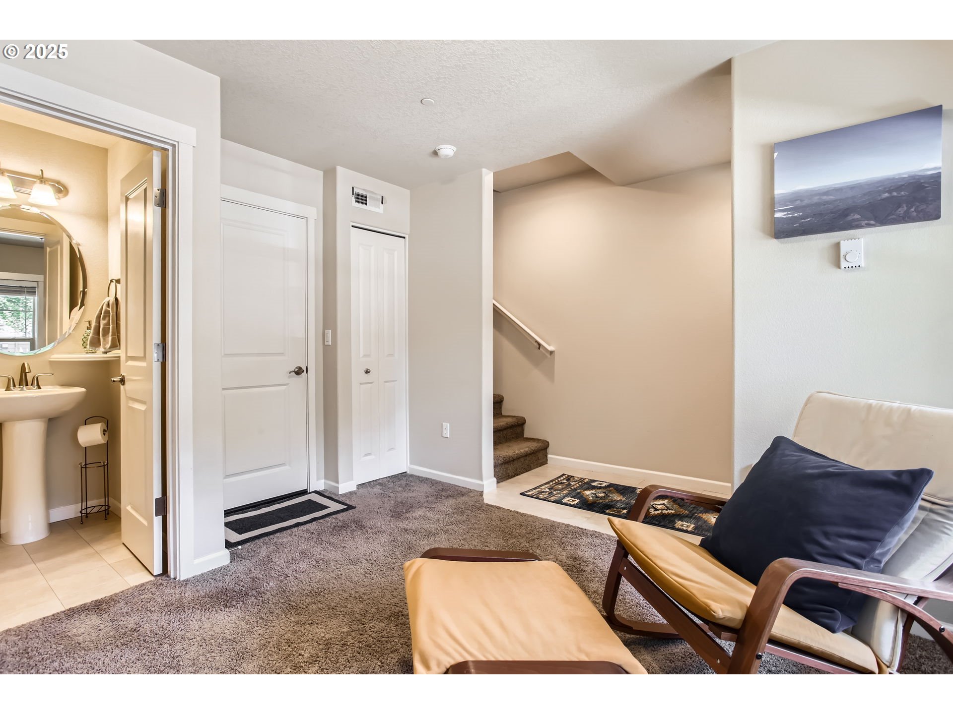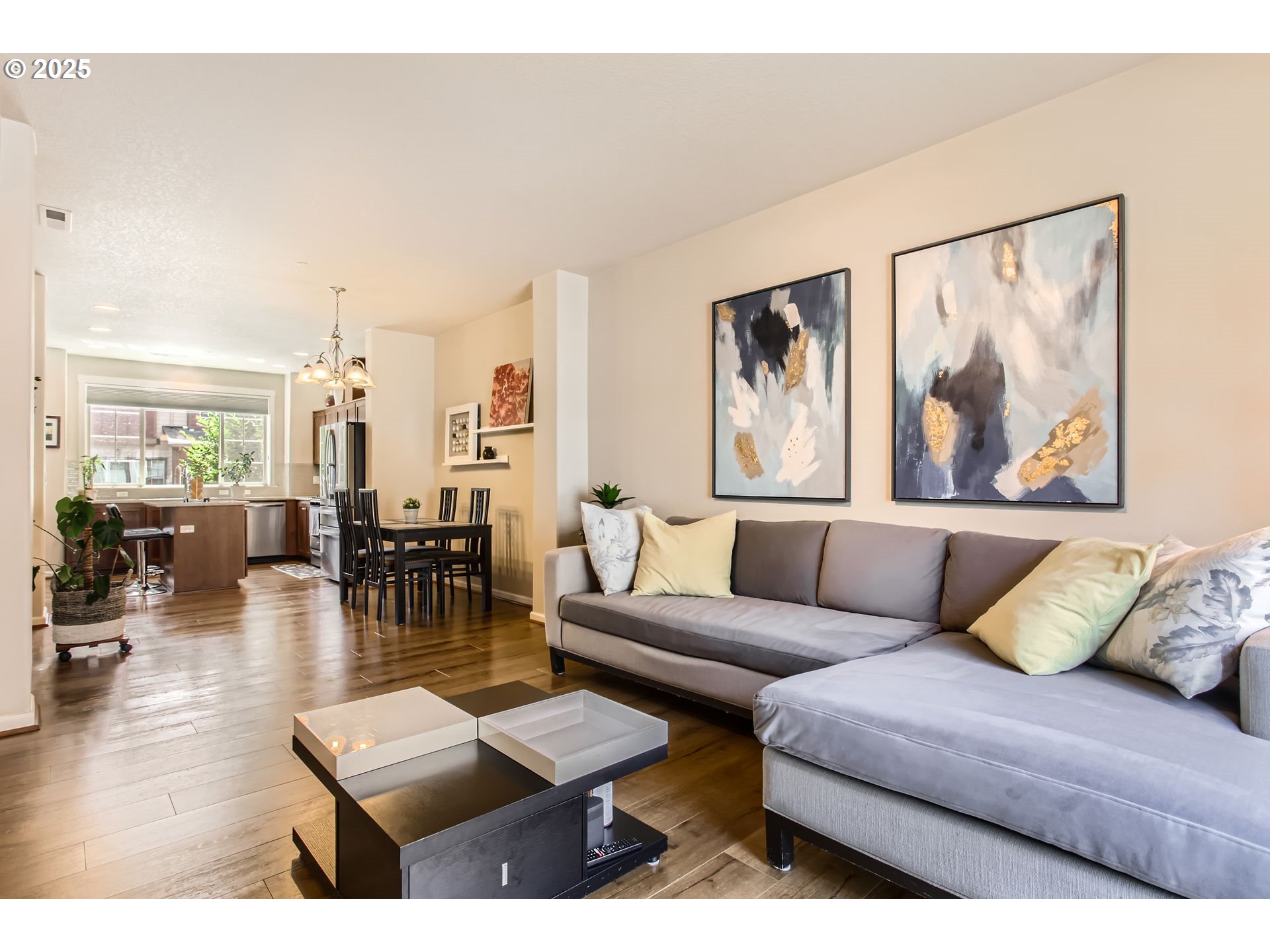 Welcome to this bright & inviting townhouse, ideally located in the sought-after Nike/Intel high-tech corridor. The main level features a spacious living room with a cozy gas fireplace and balcony, perfect for relaxing or entertaining. The open-concept layout seamlessly connects the living room, dining area, and kitchen, all accented by beautiful wood laminate flooring with high ceilings that enhance the sense of space and natural light. The well-appointed kitchen is a chef's delight, featuring stainless steel appliances, a gas range, granite counter tops, a deep sink, glass tile backsplash, pantry, and an island (perfect for cooking, meal prep, or casual dining). Upstairs, you’ll find two spacious primary suites. The first primary suite offers vaulted ceilings, a large closet with built-in organizers, and a private bathroom with a step-in shower. The second suite includes a large closet with organizers and an en-suite bathroom with a tub/shower combination. A conveniently located stackable washer & dryer complete the upper level. The lower level features a versatile office/den and a guest half-bathroom, providing flexible space for work or visitors. Additional highlights include an attached garage & air conditioning. The community features walking paths, a children's play area, and is just one block from groceries, and shopping. Enjoy quick access to Tanasbourne and Max light rail, — making this location as convenient as it is charming. This beautifully maintained home offers comfort, functionality, and an unbeatable location. The home is ready for you to move in and enjoy! [Home Energy Score = 9. HES Report at https://rpt.greenbuildingregistry.com/hes/OR10215906]