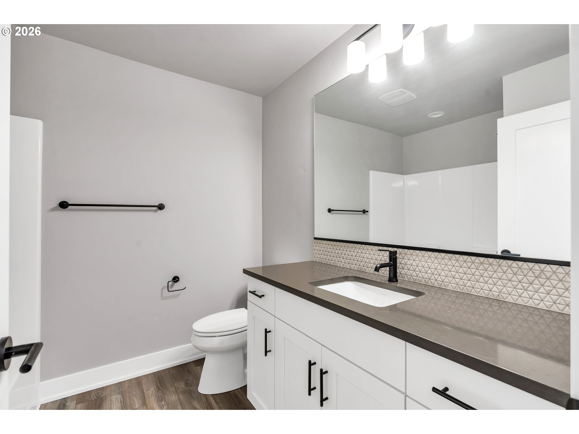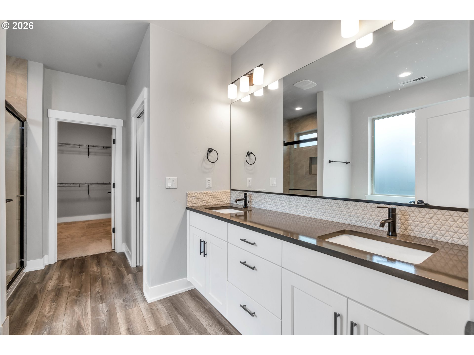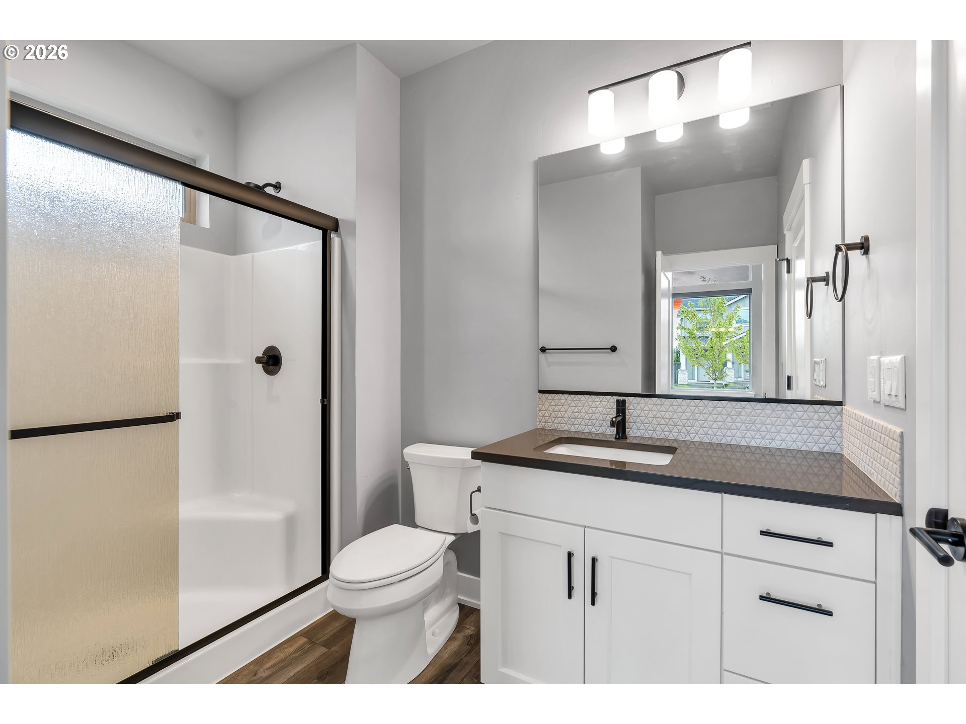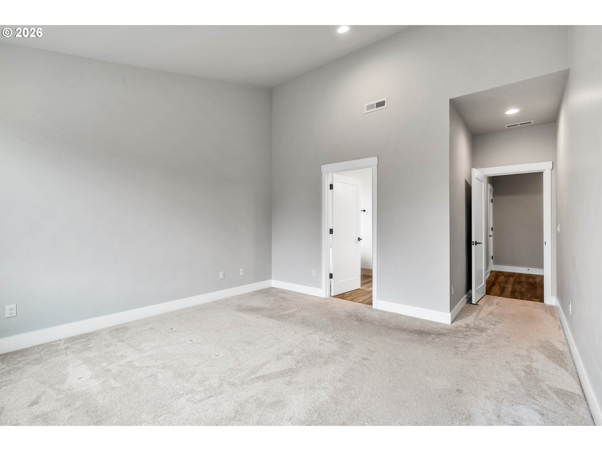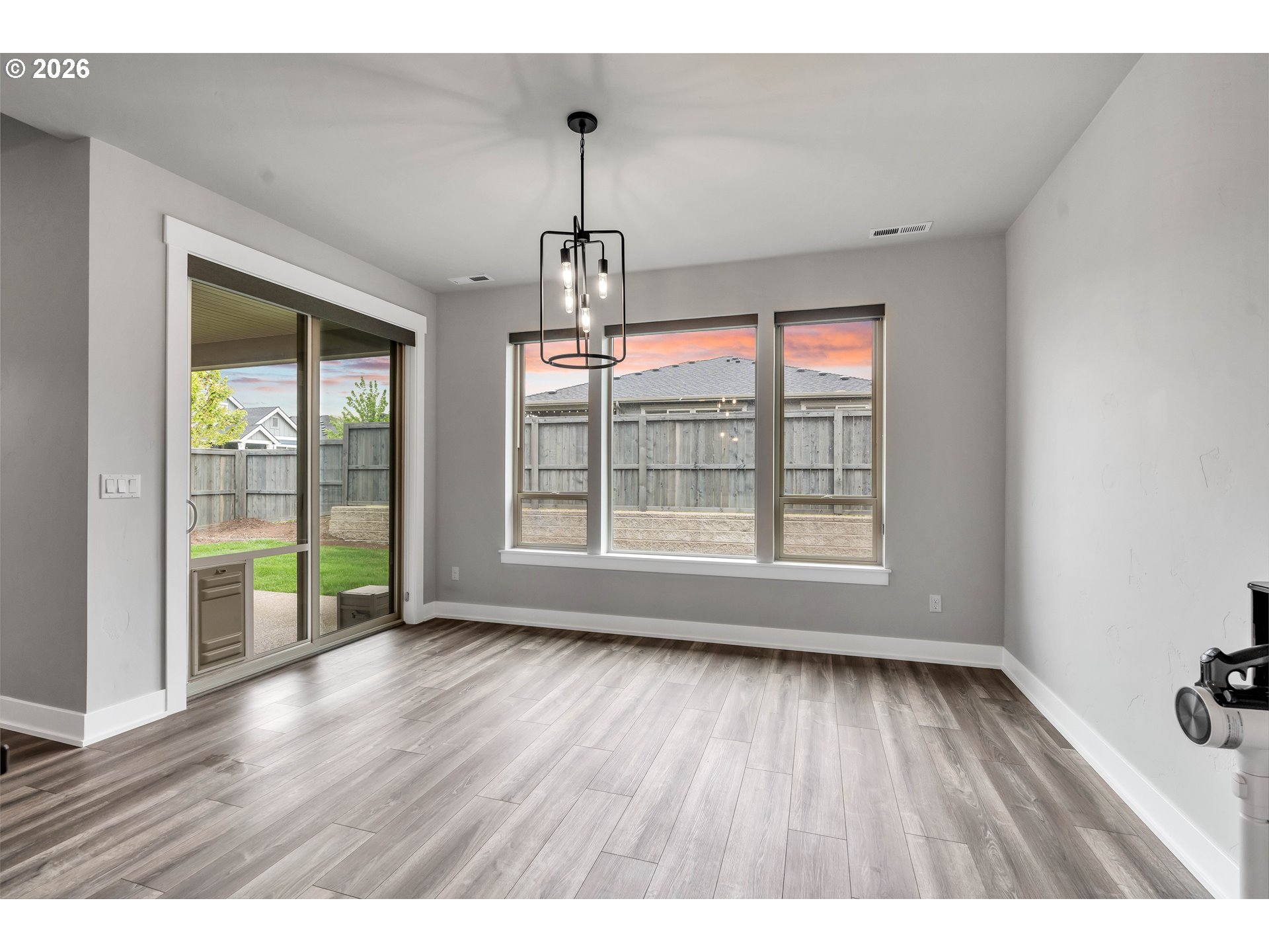 Welcome to this stunning two-level home where space, style, and thoughtful design come together beautifully. Offering 5 bedrooms, 3 bathrooms, and an oversized garage, this home provides the perfect blend of functionality and modern comfort for those who need room to live, work, and grow.The main living spaces are bright, open, and beautifully designed, featuring laminate flooring throughout the living room, dining area, and kitchen. Oversized windows, soaring ceilings, and abundant natural light create an airy, expansive feel from the moment you enter. The living room is both elegant and inviting with a cozy fireplace and ceiling fan, while the dining area features sliding glass doors that open directly to the backyard for effortless indoor-outdoor living.The kitchen is truly a centerpiece—gorgeous, spacious, and designed to impress with a large island, sink in island, eat bar seating, built-in range, built-in oven, microwave, pantry, and abundant workspace for cooking and entertaining.Conveniently located on the main floor, the laundry room adds everyday practicality.The lower level includes three spacious bedrooms, all with wall-to-wall carpet and vaulted ceilings for added comfort and style. The second bedroom features its own ensuite bathroom, while the luxurious primary suite offers a walk-in closet and private ensuite bath complete with double sinks, a walk-in shower, and a soaking tub.Upstairs, you’ll find two additional bedrooms with wall-to-wall carpet, providing even more flexibility for guests, office space, or hobbies.Step outside to enjoy a fully fenced backyard with a covered patio—perfect for year-round entertaining, outdoor dining, or simply relaxing in your private outdoor retreat.With its spacious layout, upscale finishes, and exceptional design, this beautiful home offers comfort, versatility, and room for everyone.