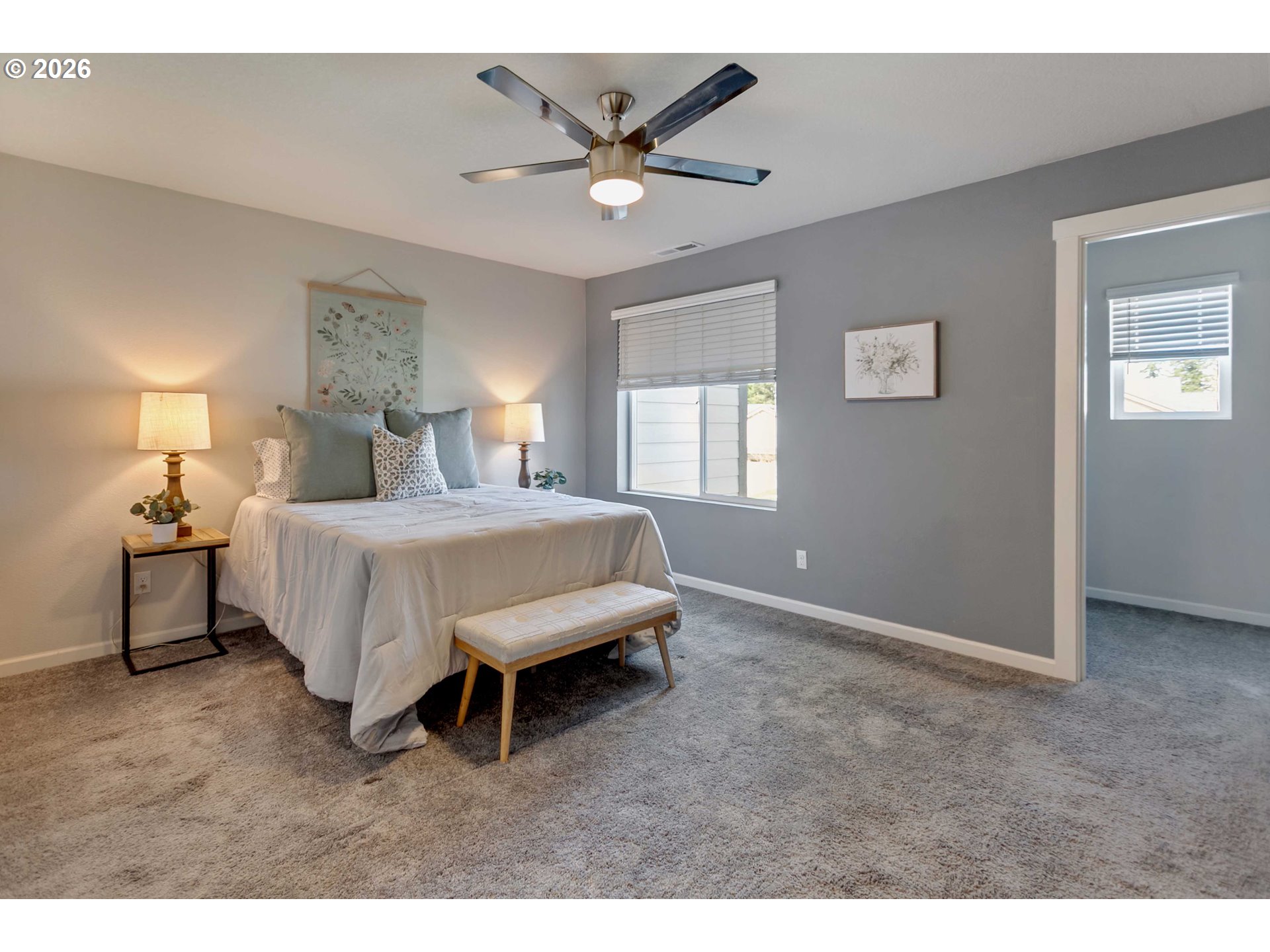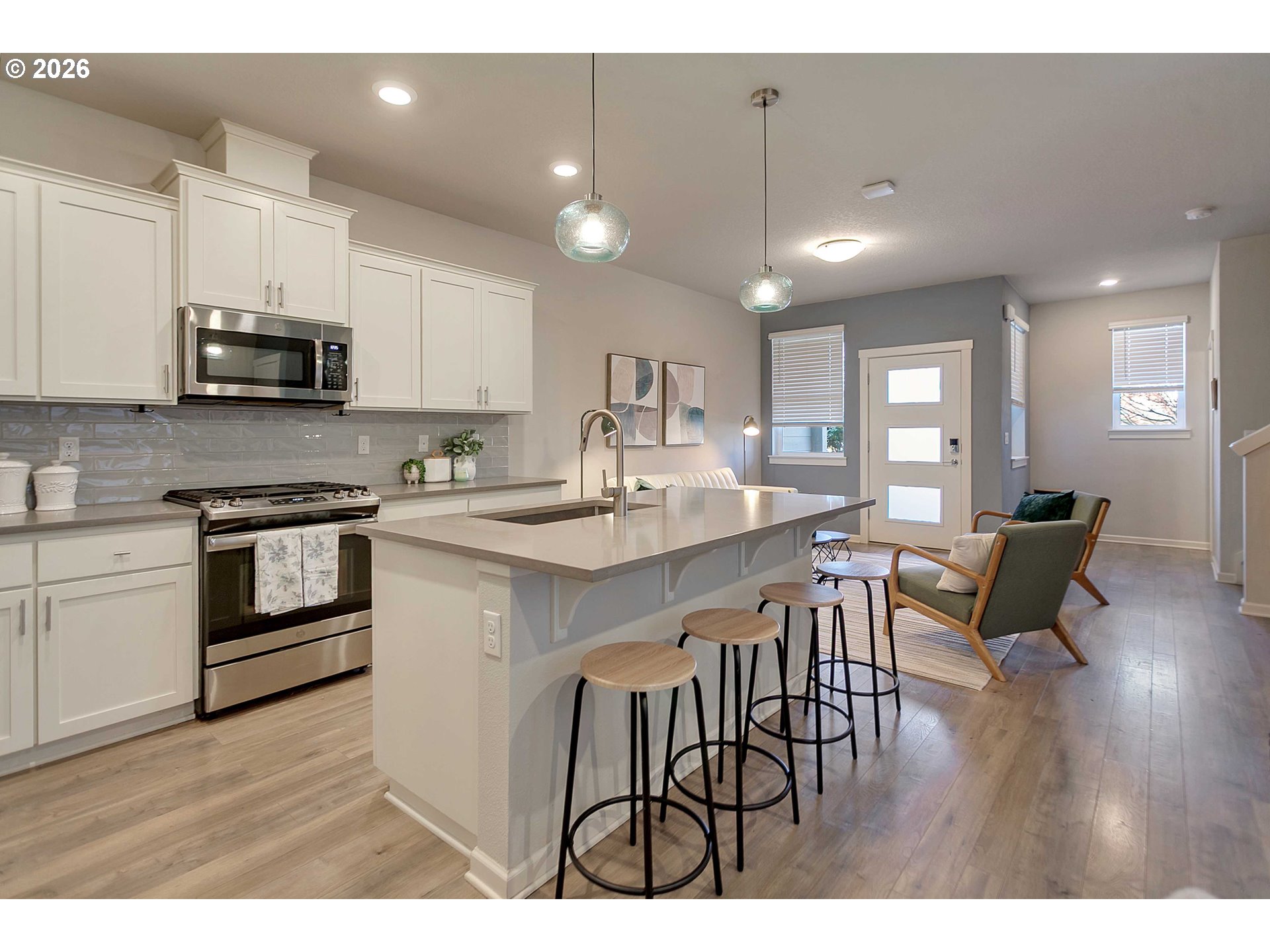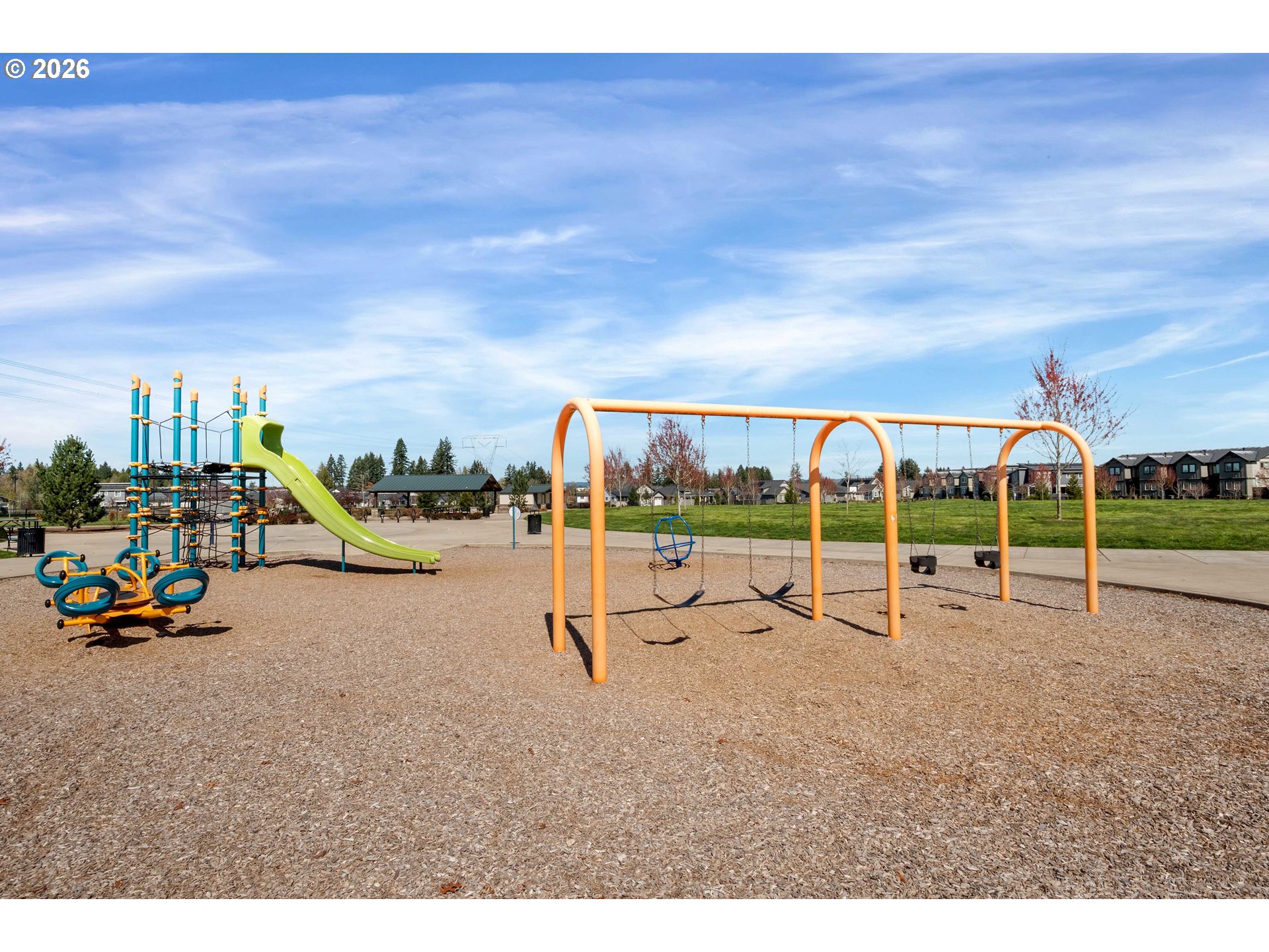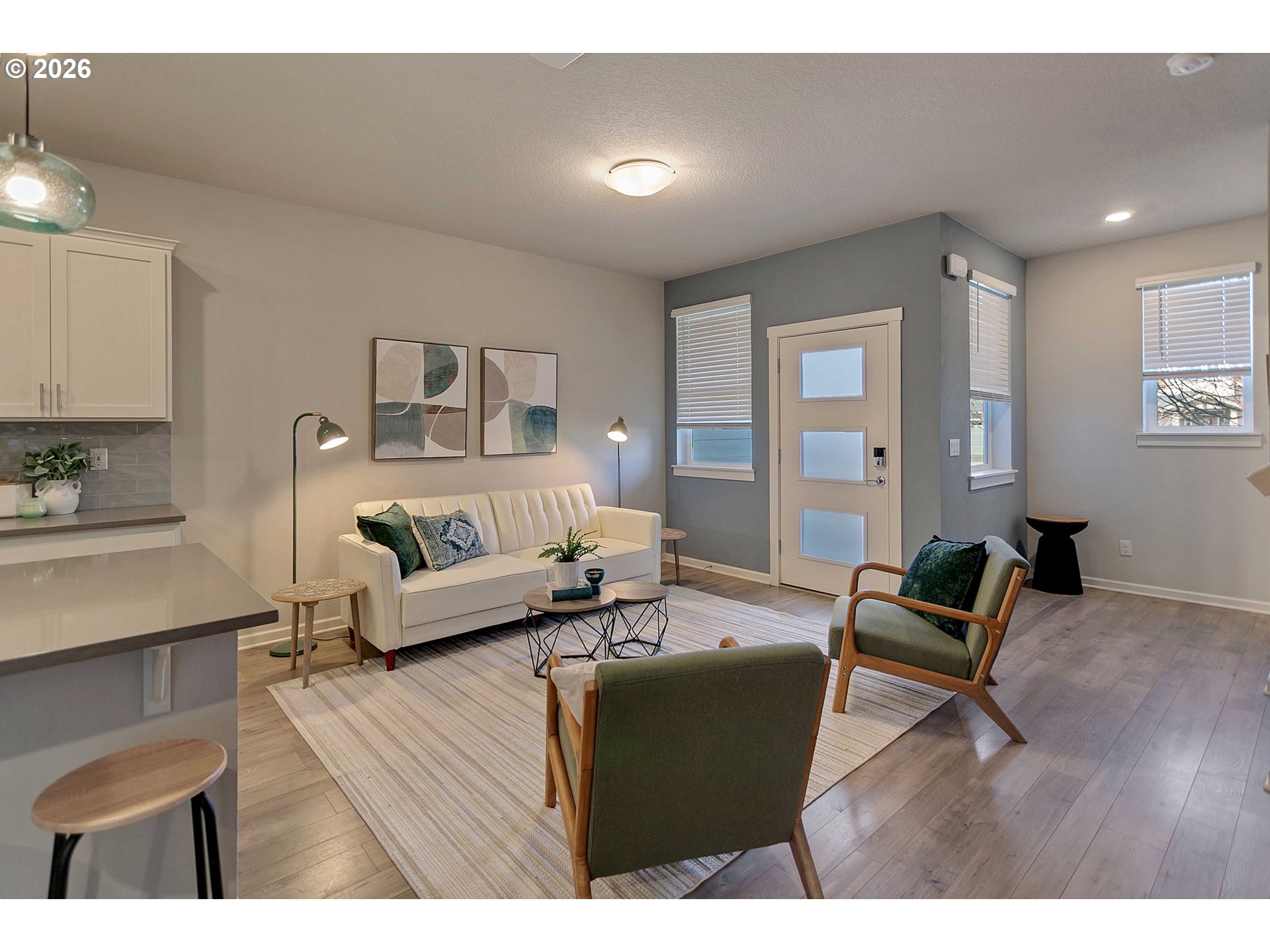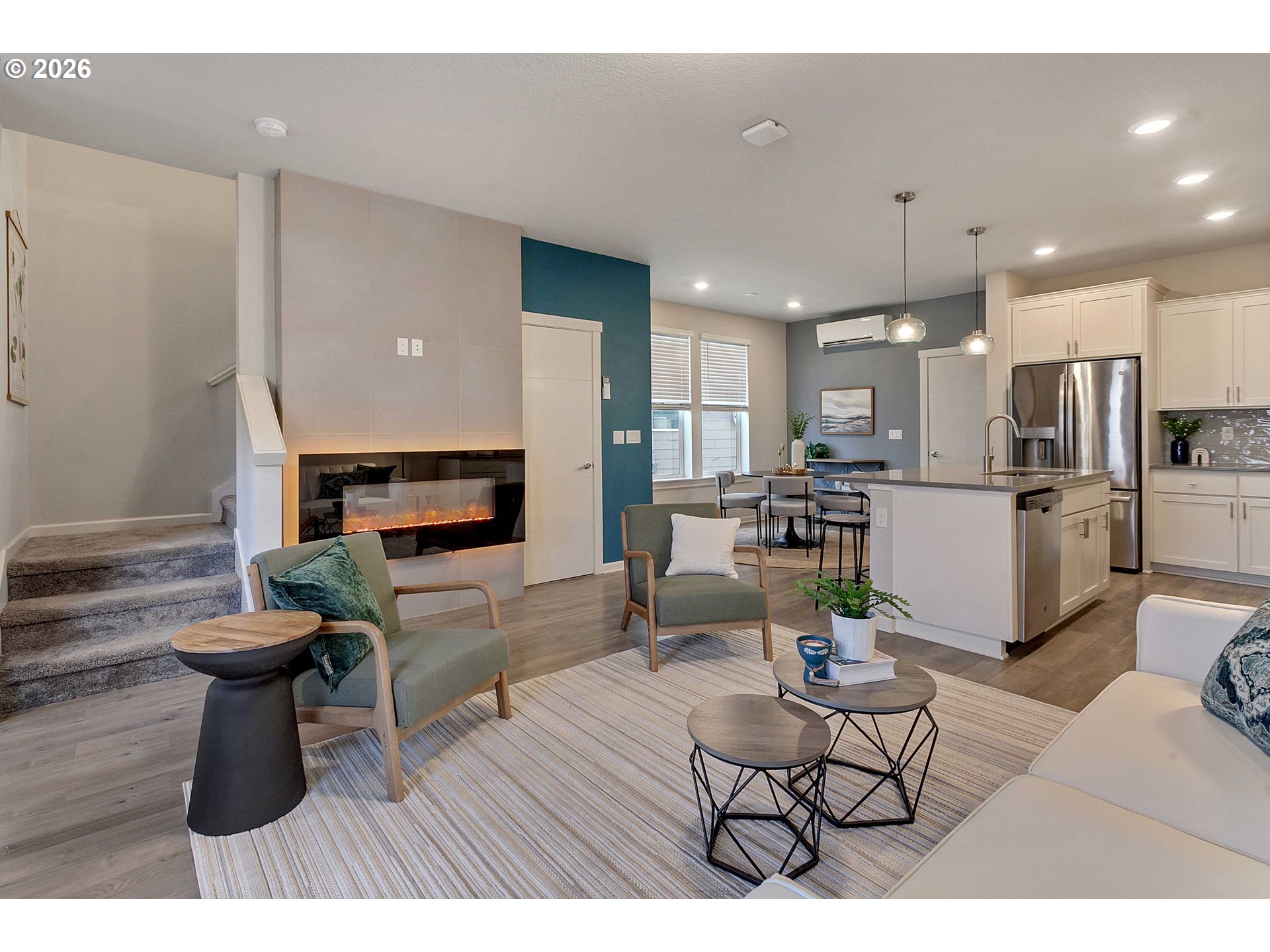 Butternut Creek End-Unit Townhome in South Hillsboro, why pay new construction prices when the upgrades are already done? This well-maintained 3-bed, 2.1-bath home (1,633 SF) built in 2019 shows like new. The open main level features a kitchen with gas appliances and quartz countertops, a stylish electric fireplace, and heat pump mini-split. Upstairs offers a versatile loft perfect as a second living space or home office, plus a primary ensuite with dual sinks. The 6kW solar panels installed in 2022 are paid off at closing, with a hardwired EV charger in the rear garage — that $16 monthly electric bill covers charging the car and running the AC. On-street guest parking adds everyday convenience. Butternut Creek Park and a fenced dog park are just around the corner, and the South Hillsboro walking trail connects you directly to all the new shops and restaurants. Includes a 1-year APHW home warranty. All the features you want in new construction, already installed, already proven, priced to win.