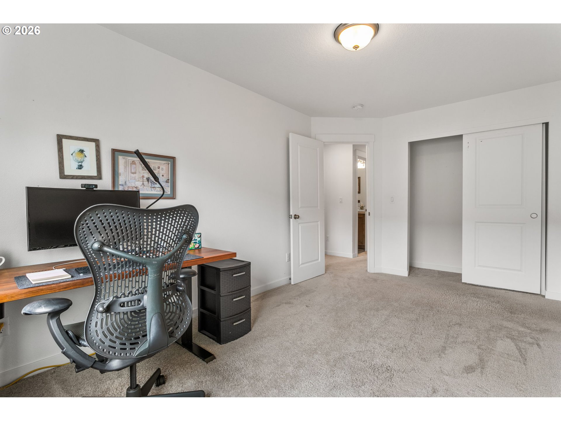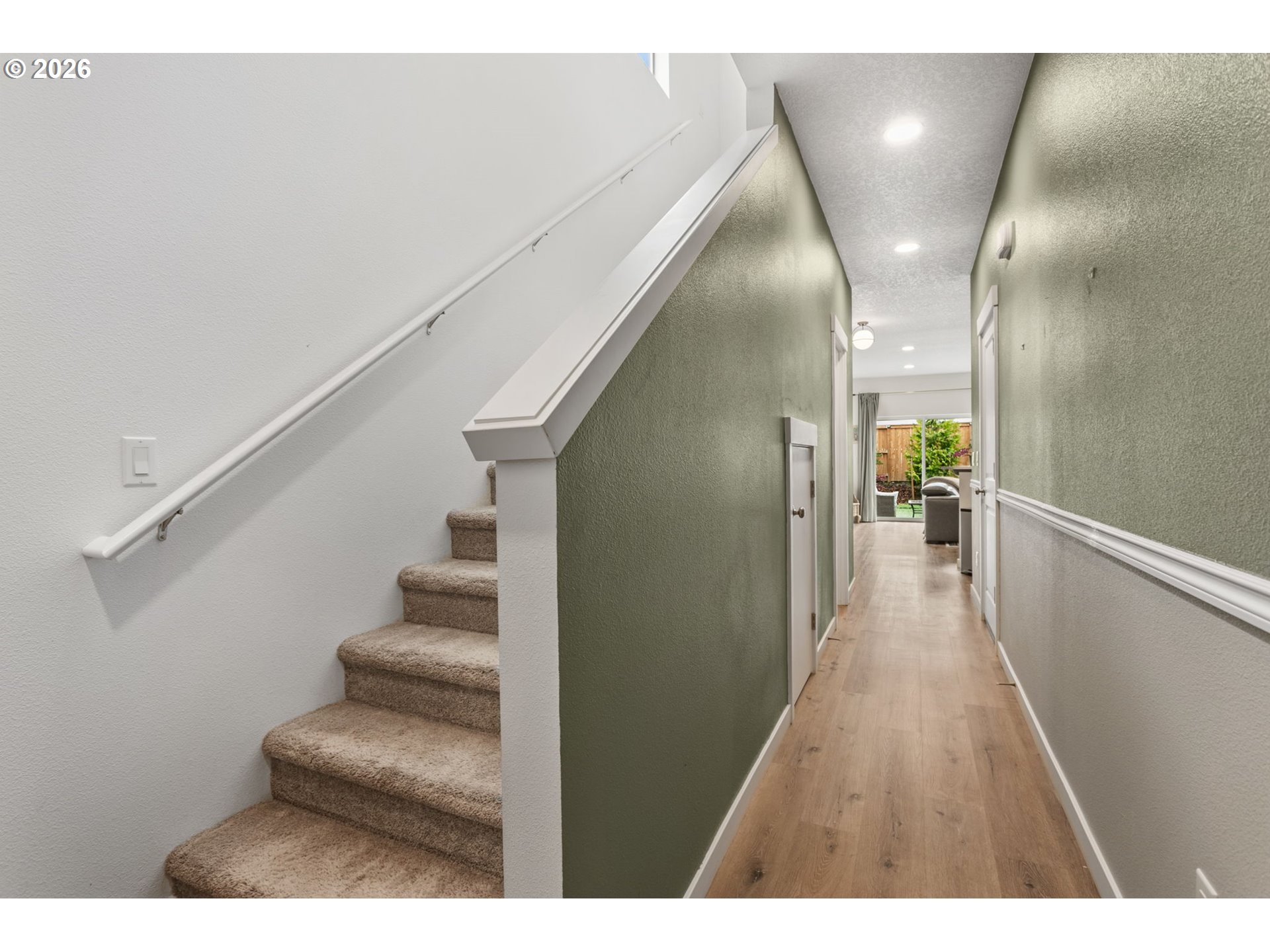 Welcome to this beautifully upgraded end-unit townhome offering comfort, style, and low-maintenance living in a peaceful setting near scenic Parks, shopping and walking trails. This 3-bedroom, 2.5-bath home features a thoughtfully designed layout with modern finishes throughout. The kitchen is equipped with sleek slab quartz countertops, stainless steel appliances, and both gas and electric stove options—perfect for any home chef. A full appliance package is included, with refrigerator, stove, washer, and dryer all staying. Enjoy upgraded luxury vinyl plank flooring, a tankless water heater, and a recently serviced mini-split system providing efficient heating and cooling year-round. Upstairs, the spacious primary suite impresses with vaulted ceilings, a custom walk-in closet by Portland Closet Company, and dual sinks. Additional highlights include a dedicated, updated laundry room and convenient attic storage. Step outside to a fully customized backyard designed for relaxation and ease, complete with turf, an integrated drainage system, landscaping, and a concrete patio—ideal for entertaining or unwinding with minimal upkeep. A storage shed is also included. This end unit townhome offers added privacy, complemented by a quiet neighboring setting. Located near beautiful Mariposa Park with large turf playground, soccer field and basketball court, this property combines natural surroundings with modern living.