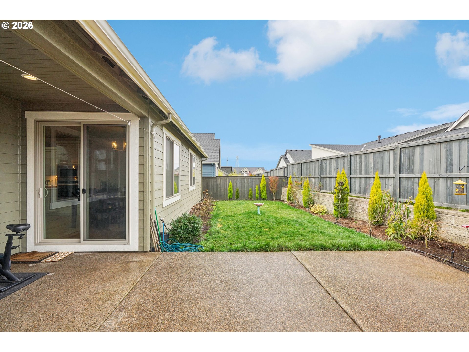 A rarely available four-bedroom, single-level home with a three-car garage. Perfectly situated away from main roads and community through streets, this home offers a peaceful setting while being just minutes from shopping, dining, parks, and everyday conveniences. This home stands apart from the new builds with its thoughtful upgrades and added value. Enjoy built-in cabinetry beside the fireplace, elegant pendant lighting above the kitchen island, a quality appliance package with a drop-in cooktop and wall oven, and beautifully landscaped backyard complete with an extended concrete patio. These enhancements—valued at approximately $17,000—deliver move-in-ready comfort and style that new builds can’t match. The open, light-filled interiors provide a modern flow for everyday living and entertaining. A covered patio and spacious yard offer flexible outdoor living options, perfect for gatherings, gardening, or simply relaxing in the sun. Located in one of Hillsboro’s newest and most dynamic neighborhoods, residents enjoy access to community trails, scenic parks, and dedicated dog parks for both sunny and rainy days. Combining quality craftsmanship, prime location, and significant upgrades, this Hillmont Plan is an exceptional opportunity in South Hillsboro’s growing Butternut Creek/Reed’s Crossing community. [Home Energy Score = 10. HES Report at https://rpt.greenbuildingregistry.com/hes/OR10199015]