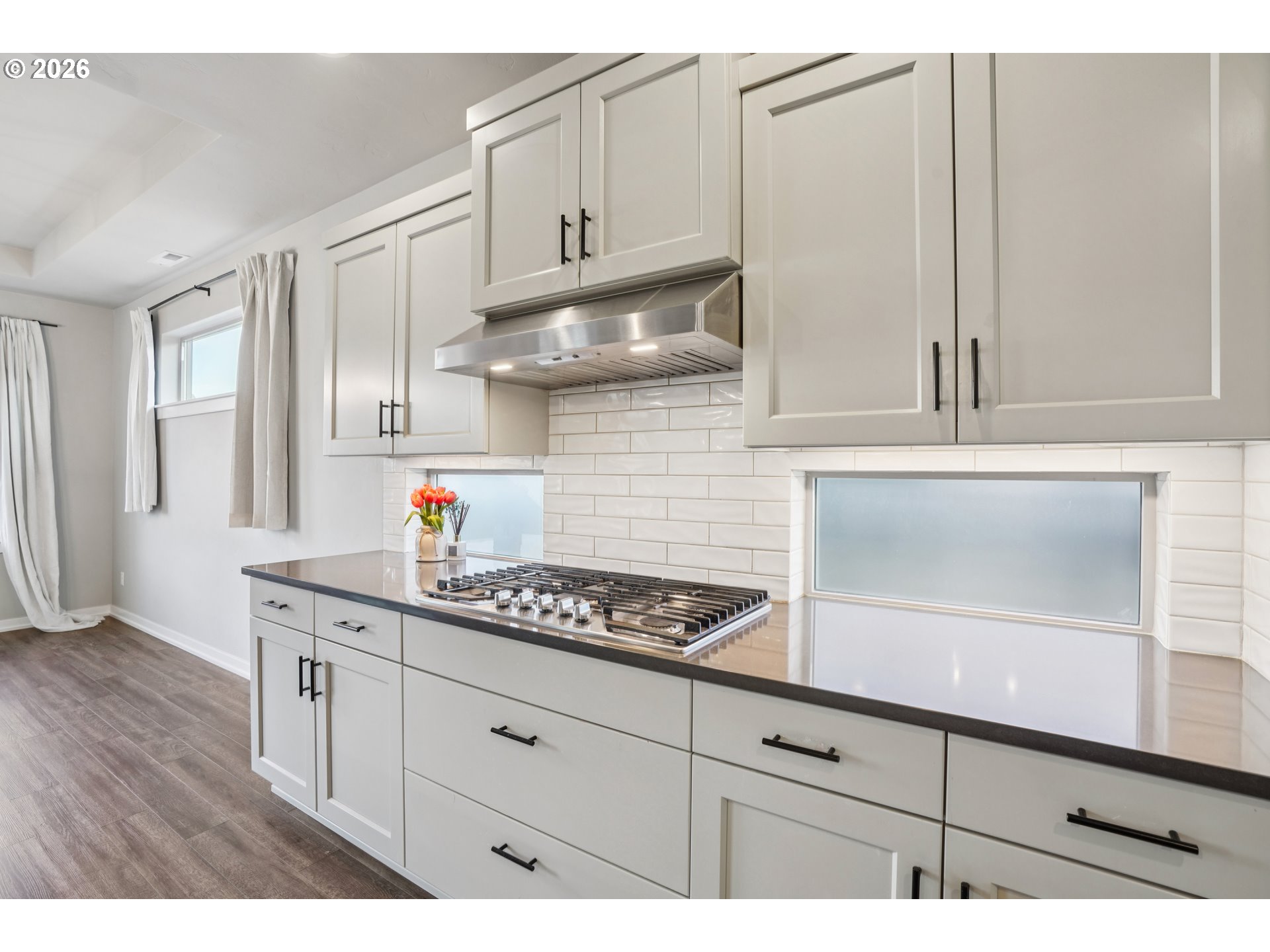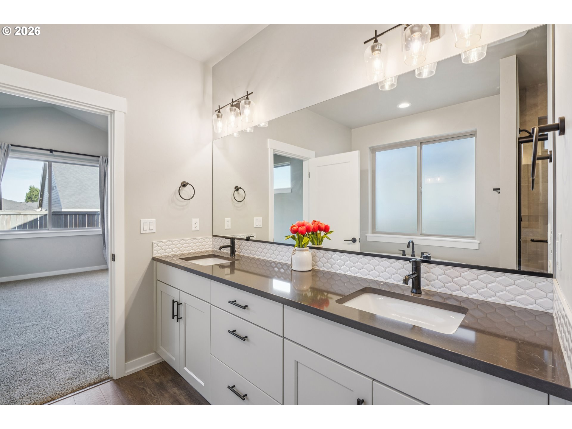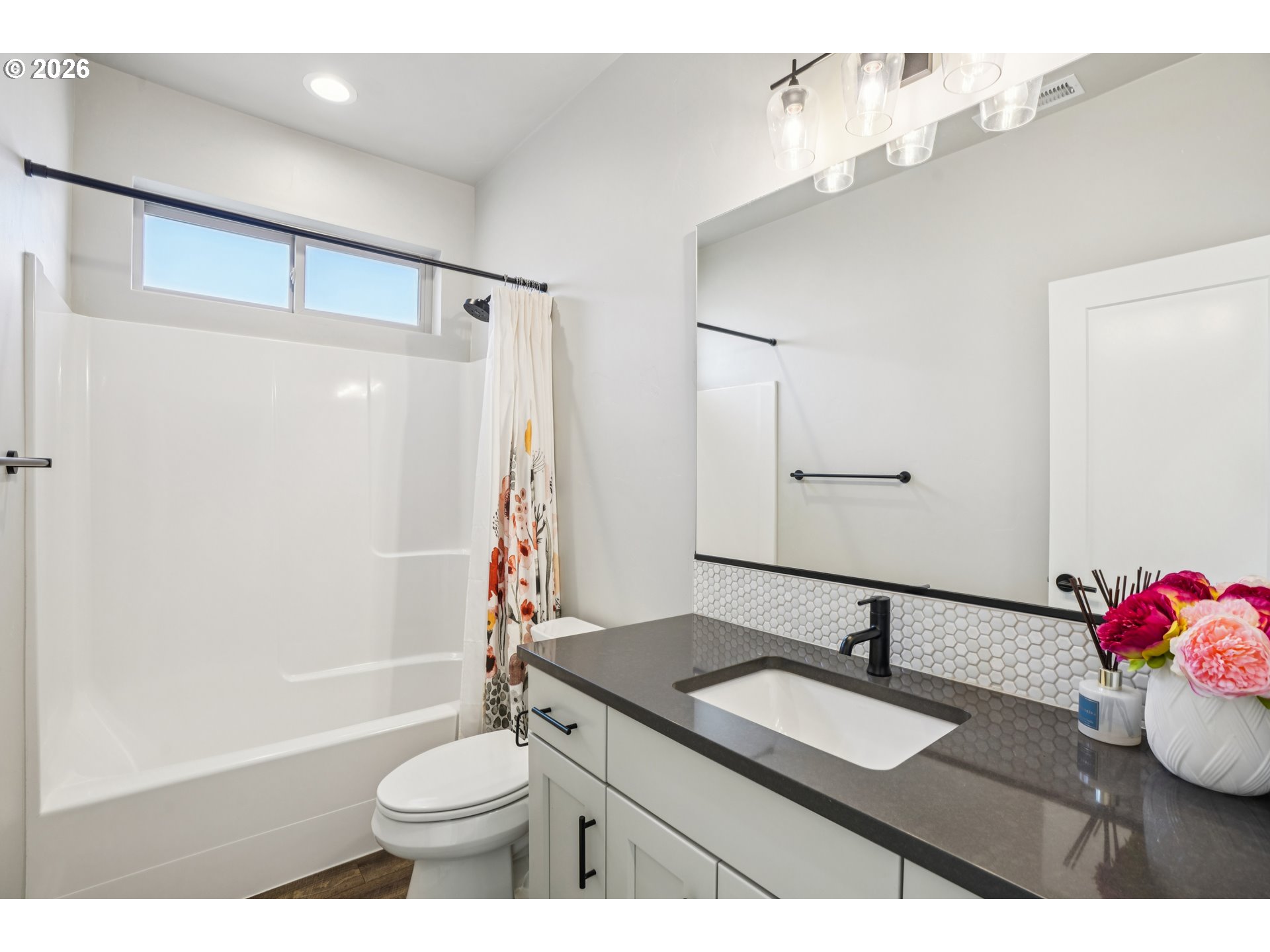 Welcome to this beautifully upgraded one-level home in Hillsboro’s desirable South Hillsboro community of Butternut Creek, perfectly tucked inside the neighborhood for a quiet, private feel. This thoughtfully designed 3-bedroom with den layout features vaulted ceilings, high-end quartz finishes, luxury vinyl plank flooring, and a bright open living space with a cozy gas fireplace. The kitchen shines with stainless steel appliances, island seating, pantry storage, and sleek built-in features perfect for everyday living and entertaining. The spacious primary suite offers vaulted ceilings, a spa-inspired bath with double sinks and soaking tub, and a peaceful retreat feel. A versatile den/office adds flexible space for work or guests. Step outside to a fenced yard with covered patio and sprinklers—ideal for relaxing or hosting gatherings. Central air, fiber optic availability, attached garage, and HOA-maintained front landscaping add everyday convenience. Easy access to shopping, schools, parks, and amenities, Nestled in the community away from major roads, with quick move-in available. Upgrades compared to the new construction of this same plan are estimated at approximately 15k and include built in cabinets next to the fireplace, Pendant lights above the island, Drop in Cook top with wall oven and backyard landscaping! All appliances at the home ae included in the sales price. [Home Energy Score = 9. HES Report at https://rpt.greenbuildingregistry.com/hes/OR10210481]