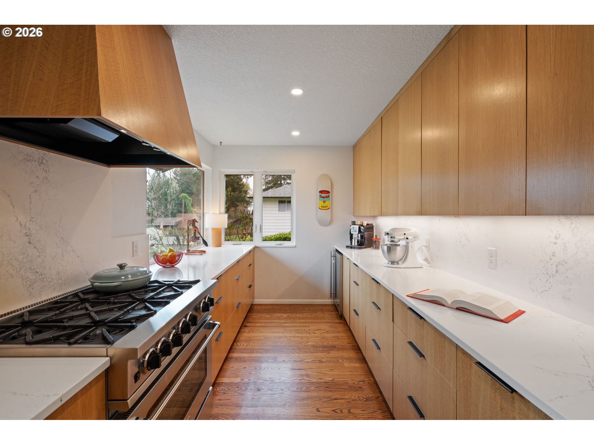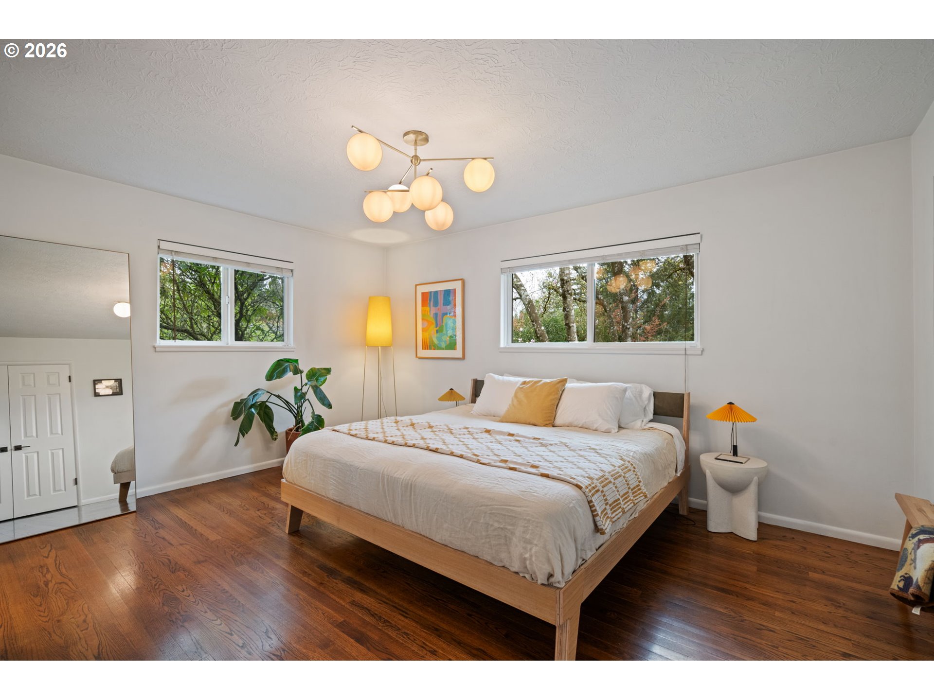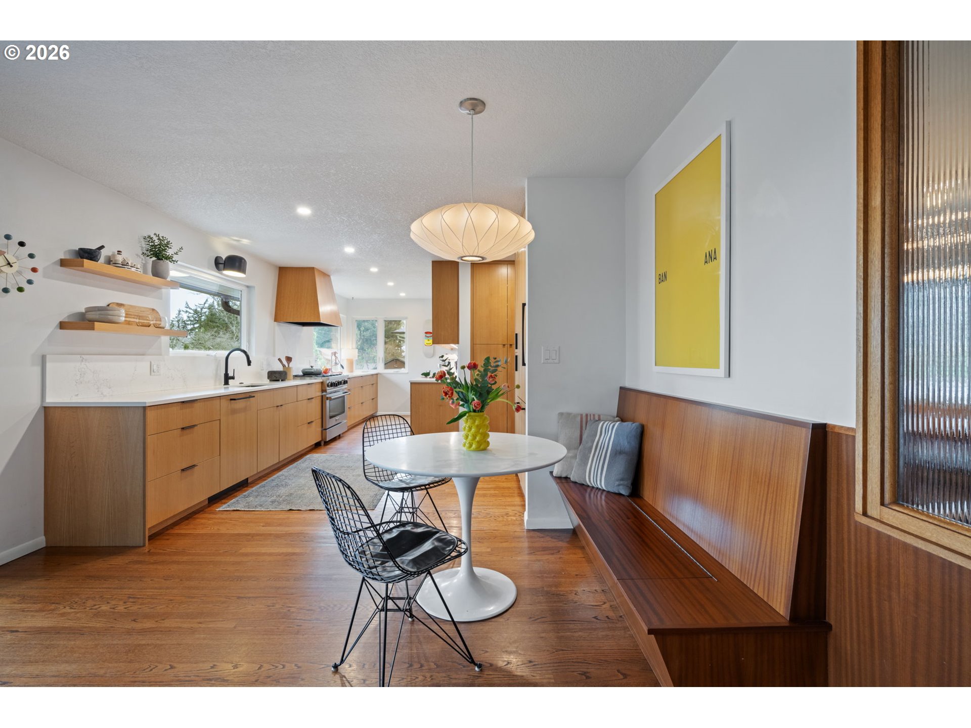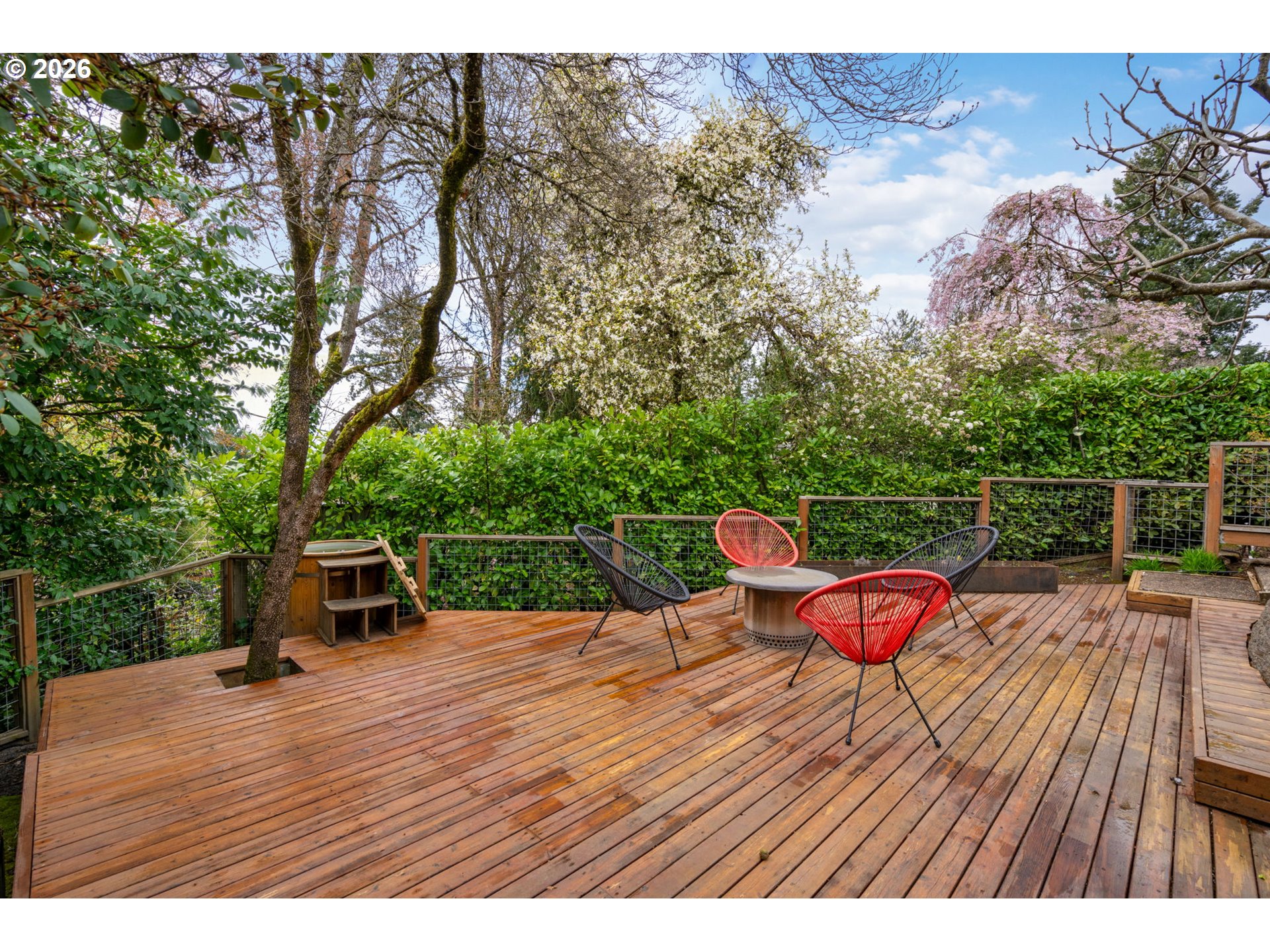 This designer Mid-Century Modern West Slope home is dialed in for comfort, family living, and effortless entertaining. The main floor includes an open-concept living/great room with large windows and a gas fireplace, a gourmet kitchen with a cozy breakfast nook and a formal dining room plus access to an expansive dec —perfect for everyday living or hosting. Hardwood floors run throughout main level, complemented by designer fixtures and finishes. Three main-level bedrooms include a private primary suite with an ensuite bath. For those seeking effortless one-level living, a powder room, an attached two car garage and a useful mud room round out the main floor. The finished “walk-out” daylight basement boasts a spacious family room, a guest bedroom suite, a bonus room (perfect for a home office, gym or studio) plus a laundry room and abundant finished storage with built-in closets. Enjoy indoor-outdoor living with a covered deck and lower-level patio overlooking a large backyard—ideal for kids and pets. Gardeners and food lovers will appreciate mature fruit trees (apple, Asian pear, peach, fig), blueberries, and raised garden beds. A charming “chicken chateau” in the expansive side-yard adds the option for fresh eggs at home. Unwind in your private Finnish sauna with cold plunge after a day of harvesting or hosting. Additional upgrades include a 2-stage whole-house water filtration system, EV charger, and new sewer line. Conveniently located with easy access to major employers like Nike and Intel, plus Washington County taxes and Portland schools including the beloved Bridlemile Elementary. This one truly has it all—come see it before it’s gone!