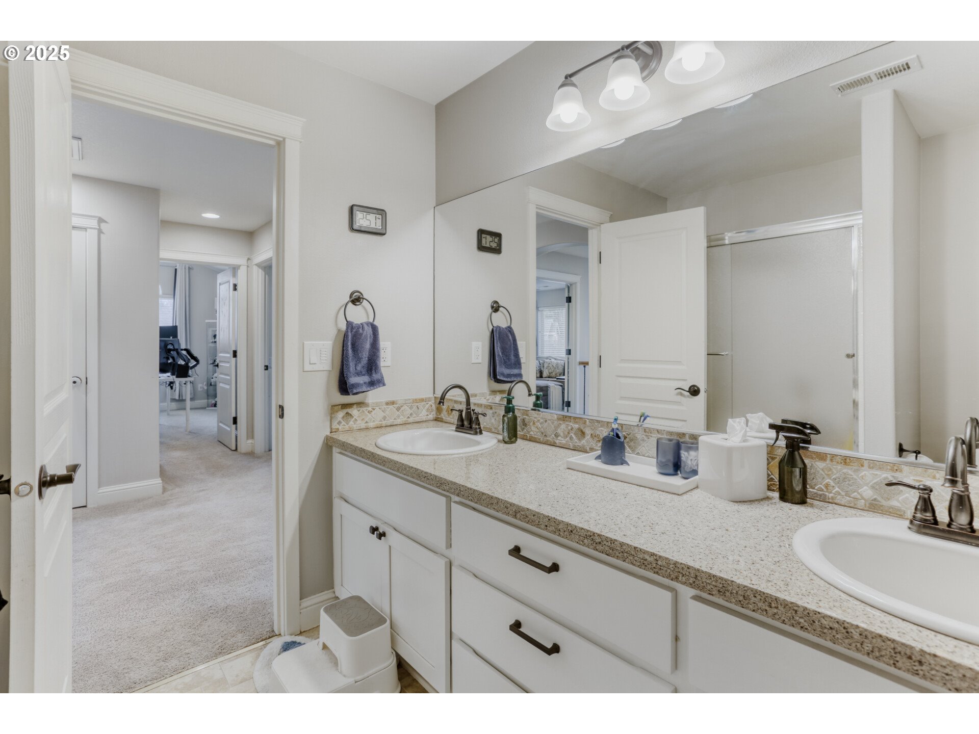 Beautifully updated home, featuring a main-level bedroom with full bath and walk-in shower. Spacious primary suite offers quartz counters, undermount double sinks, updated cabinets, separate shower, and soaking tub. Hall bath also includes quartz counters and double sinks. Gourmet kitchen with quartz countertops, full eating area, breakfast bar, and hardwoods in entry and kitchen. Utility room with built-ins. Full bedroom and bath on the main level. Newly landscaped backyard completed summer 2025 plus a large storage shed. Exterior of home painted in 2022. Move-in ready and thoughtfully updated throughout.HOA includes front landscaping