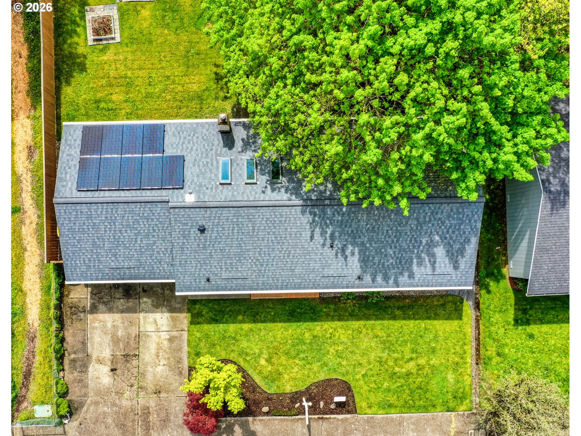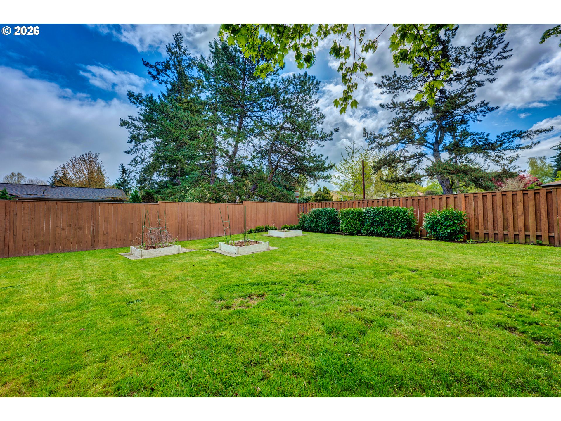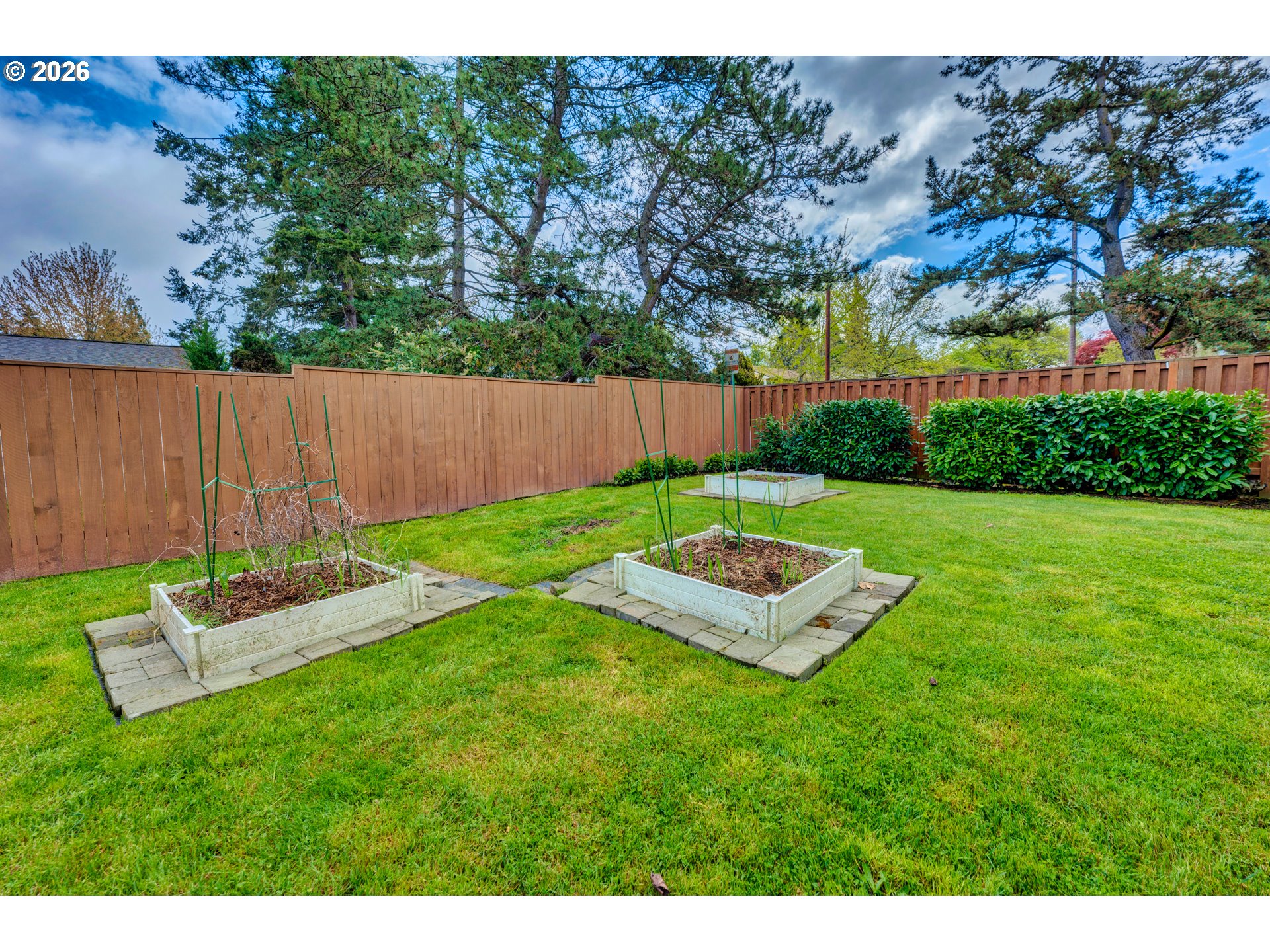 Step into this charming one-story ranch where comfort, convenience, and easy living come together. Tucked on a quiet street yet moments from shopping, restaurants, and everyday essentials, this home offers the best of both worlds. Owned solar panels help keep energy costs down, and thoughtful accessible features make the layout welcoming for all. The vaulted living room with a ceiling fan, dramatic height and three skylights provide abundant natural light. A cozy pellet stove provides additional warmth, and a large Andersen sliding door opens to an expansive backyard and patio. The updated kitchen features granite counters, subway tile backsplash, gas range with convection oven, refrigerator, stainless steel appliances, and a newer Bosch dishwasher. The vaulted dining area room off the kitchen includes a picture window overlooking the front yard. This home offers three comfortable bedrooms, including one with its own attached half bath—ideal for a private retreat. The half bath adjoins the full bath which also has a door to the hallway. The large, level, fully fenced backyard is perfect for play, pets and entertaining, with a patio for outdoor dining and three raised garden beds ready for your veggies, herbs, or flowers. Practical features include a two-car attached garage with storage, washer and dryer included, double-pane vinyl windows,mroof installed in 2019, durable fiber-cement siding, and an accessible layout with minimal steps and a ramp to the front door. Easy freeway access and just minutes to Costco, Walmart, Winco and Fred Meyer and Washington Square, Highway 217 and I-5.